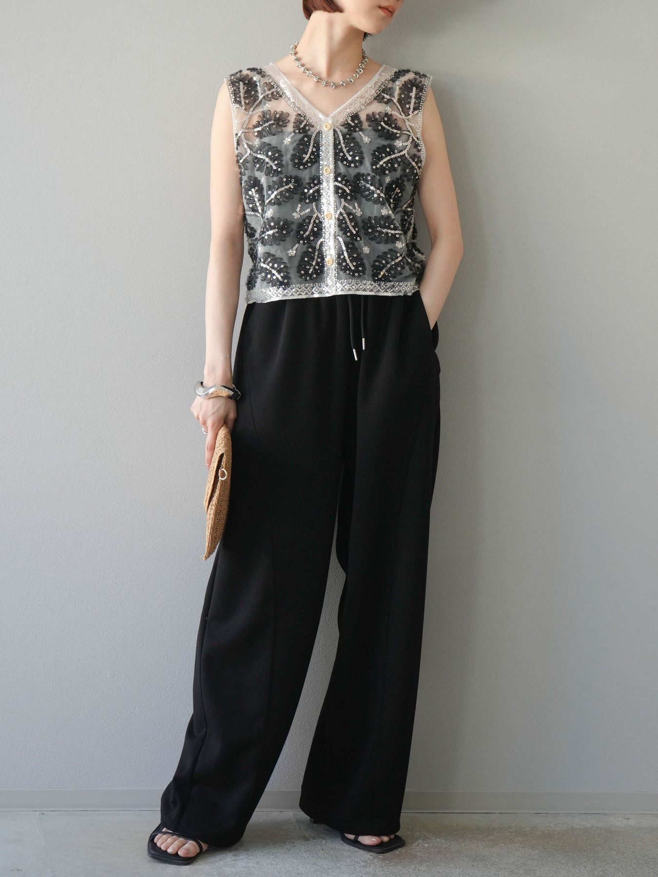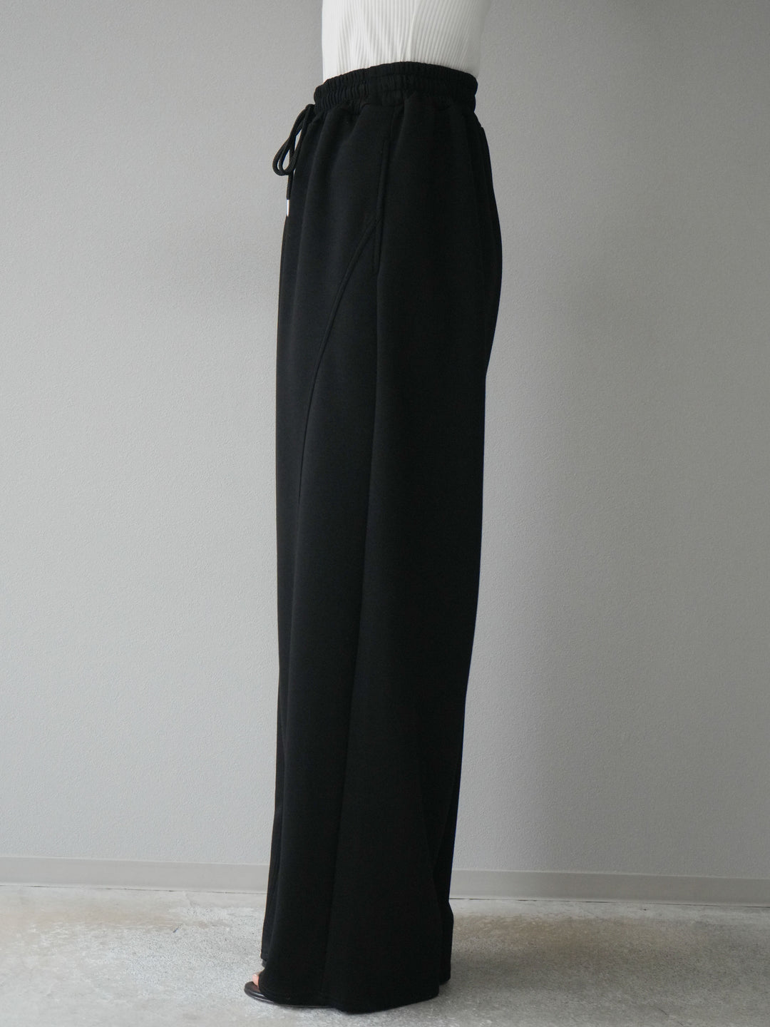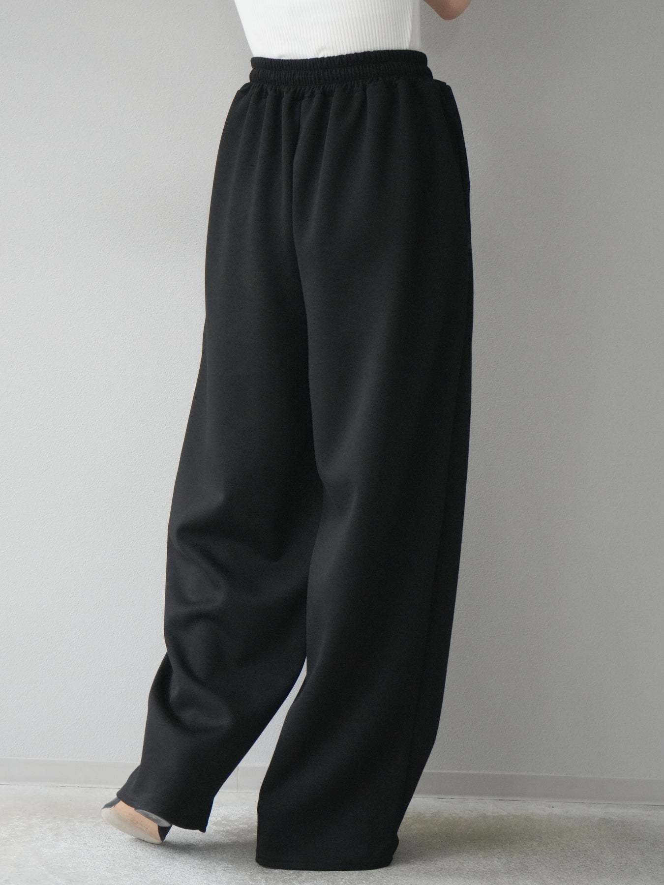 立体的なカーブラインが特徴のトレンドライクなワイドパンツ。柔らかくハリ感のあるポンチ素材で、美しいシルエットをキープしながら快適な穿き心地を実現。ウエストはゴム仕様でストレスフリー。シンプルながらひとクセ効いたデザインで、カジュアルにもきれいめにも着回せる万能アイテムです。 ※ボトムス、キャミソール(インナー)以外の商品は一律でインナーは付属していません