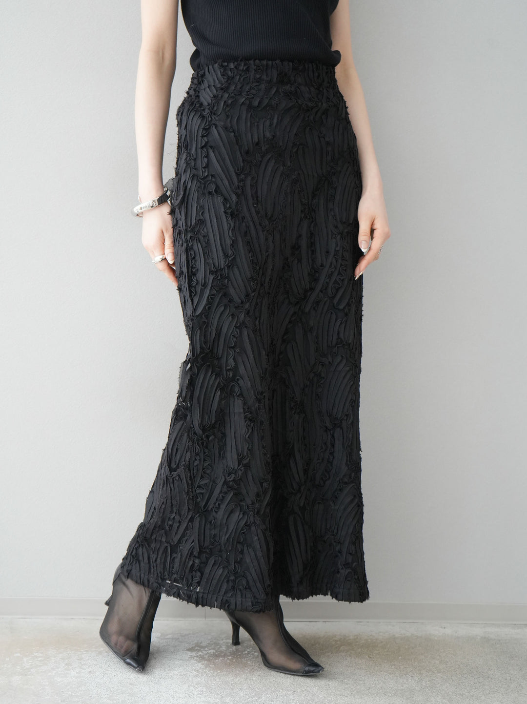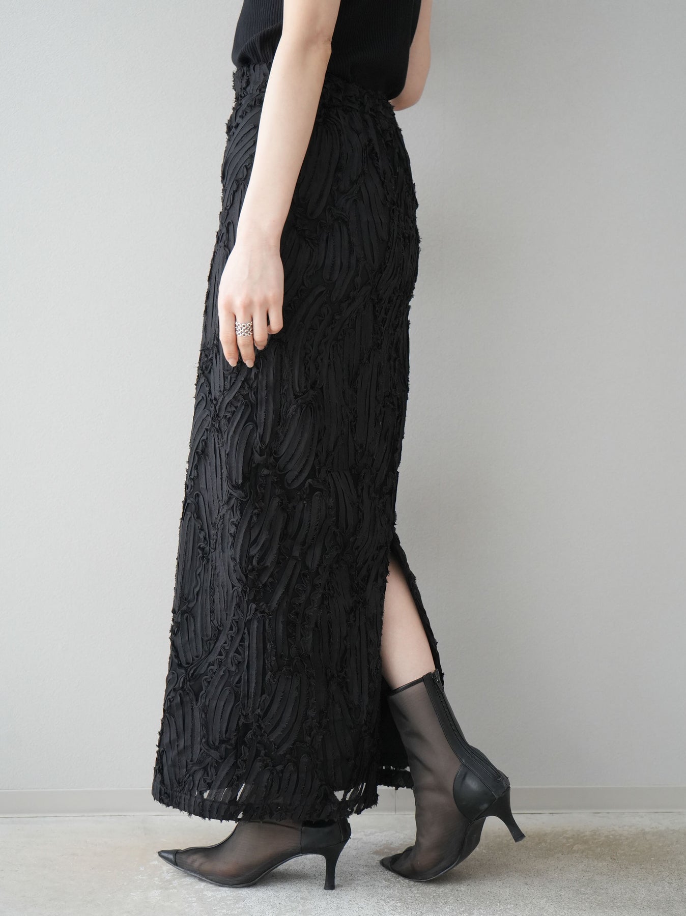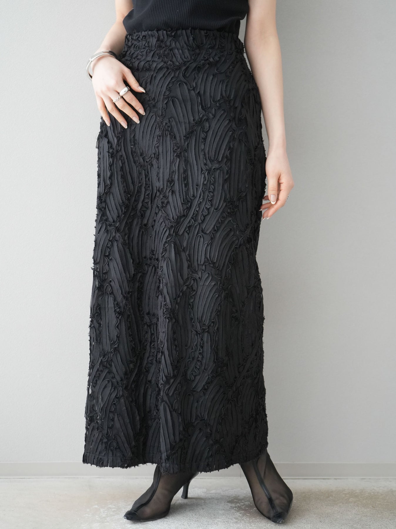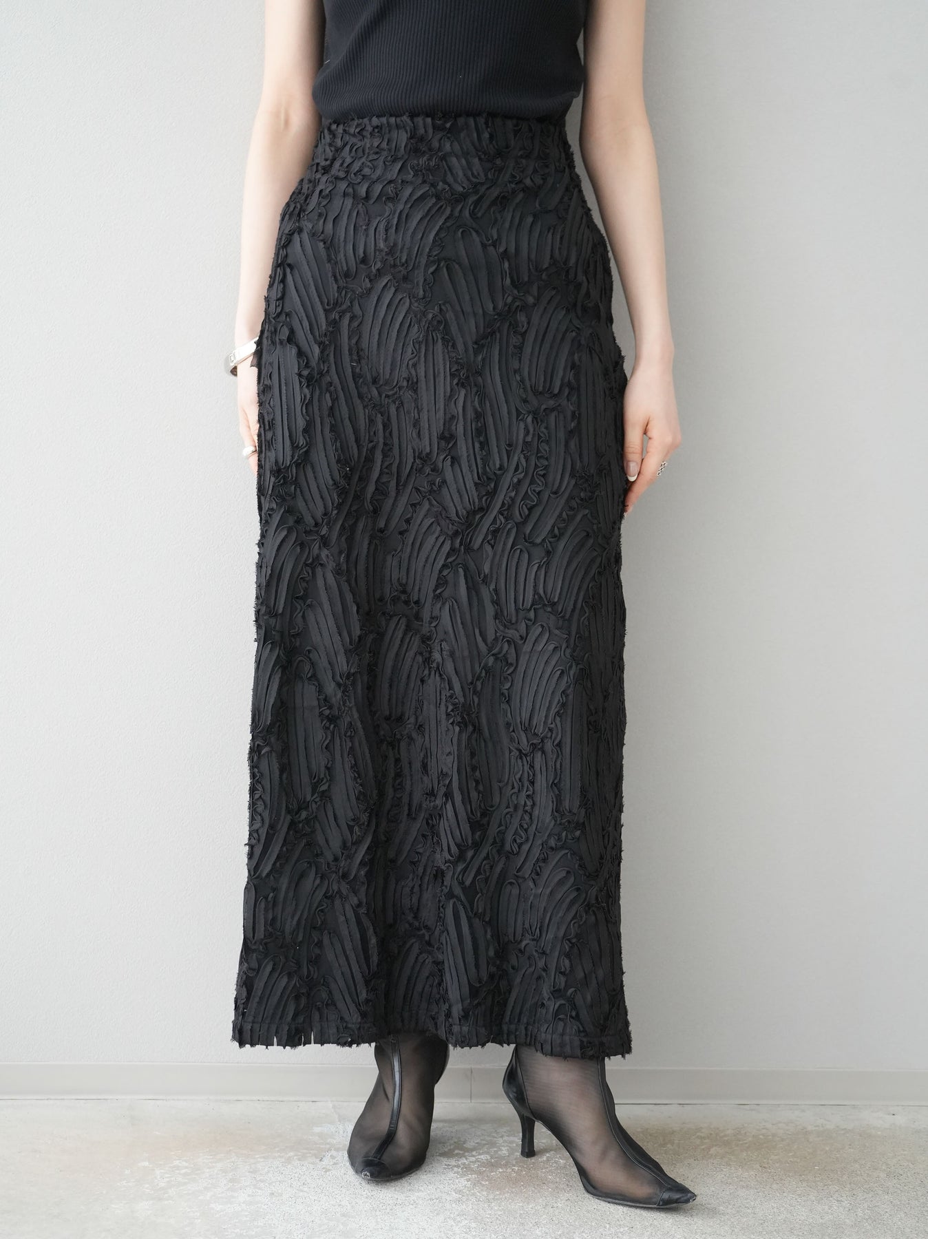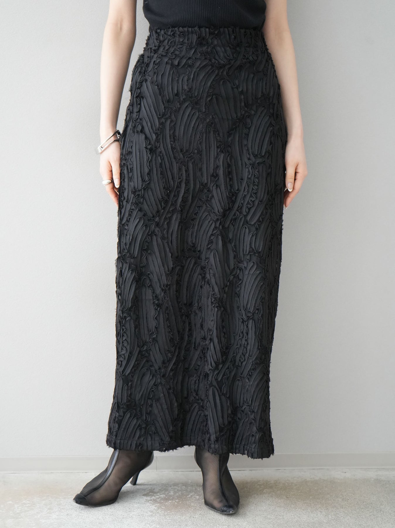 [予約]ジャガードラインレースIラインスカート/ブラック