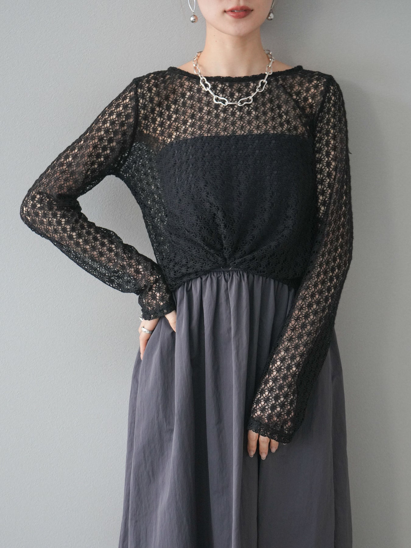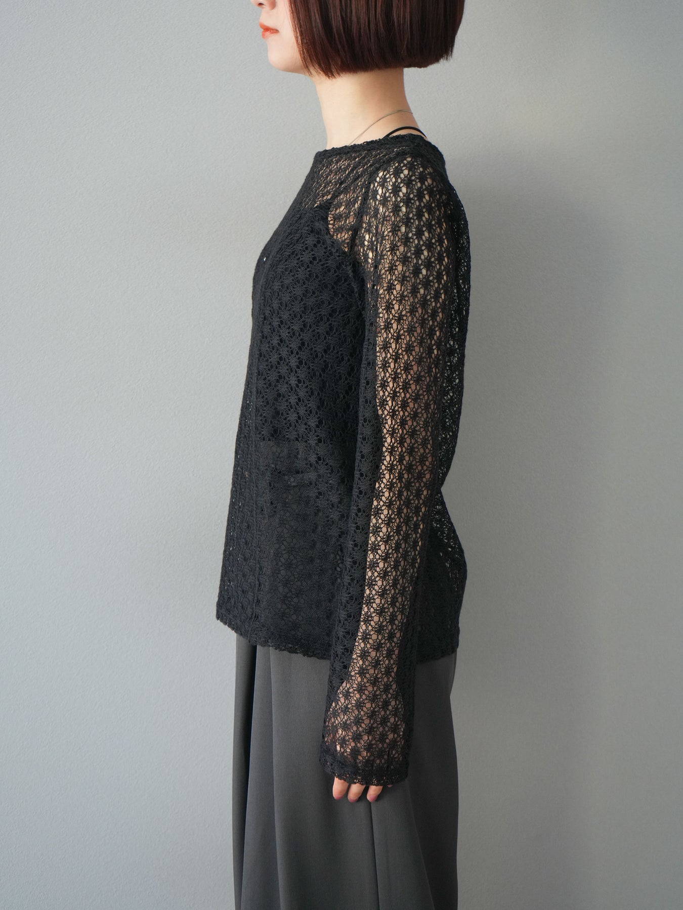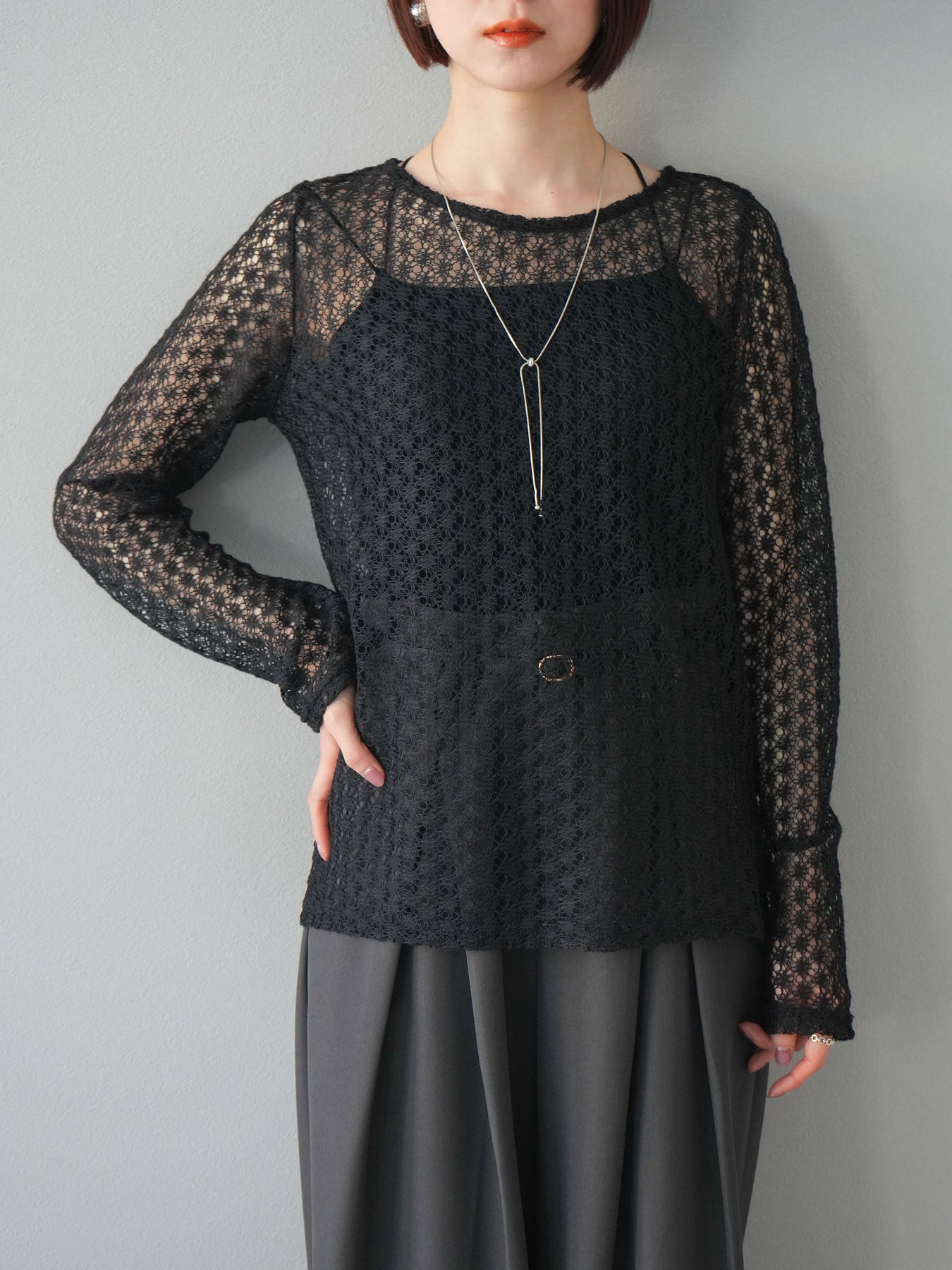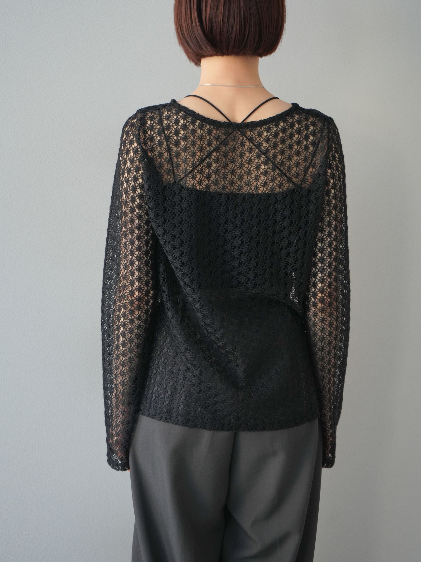 [予約]透かし編みトップス/ブラック
