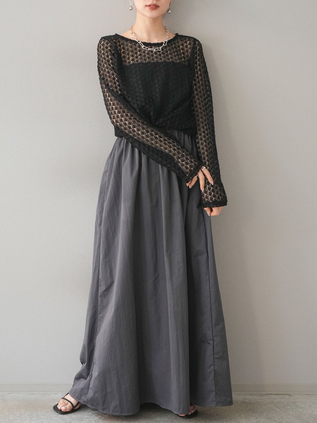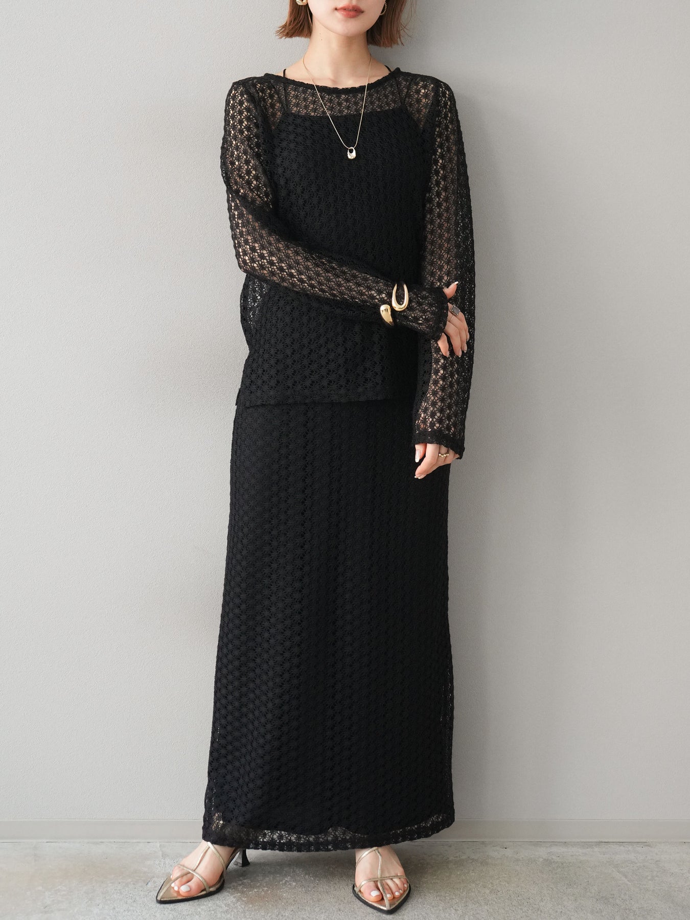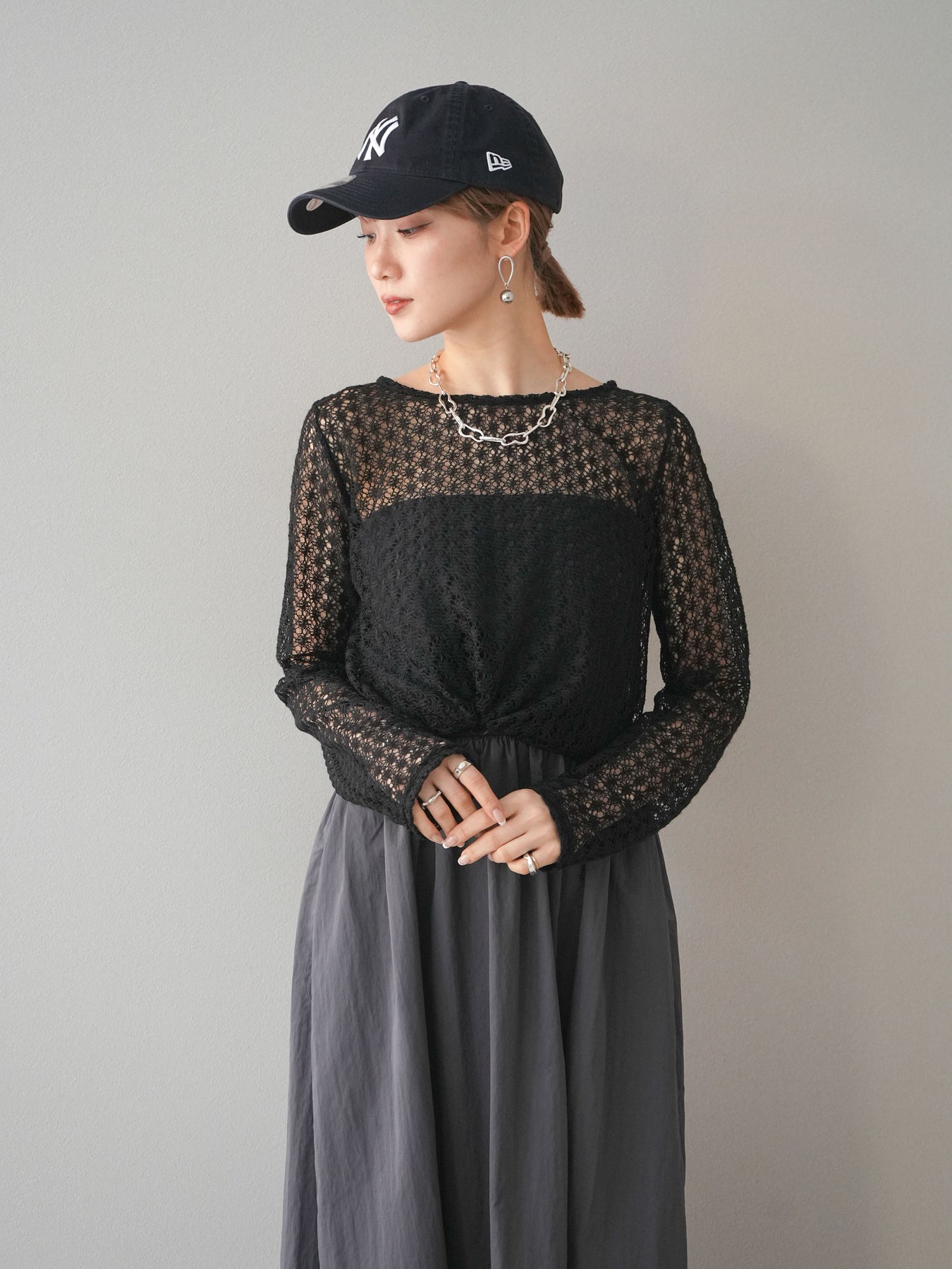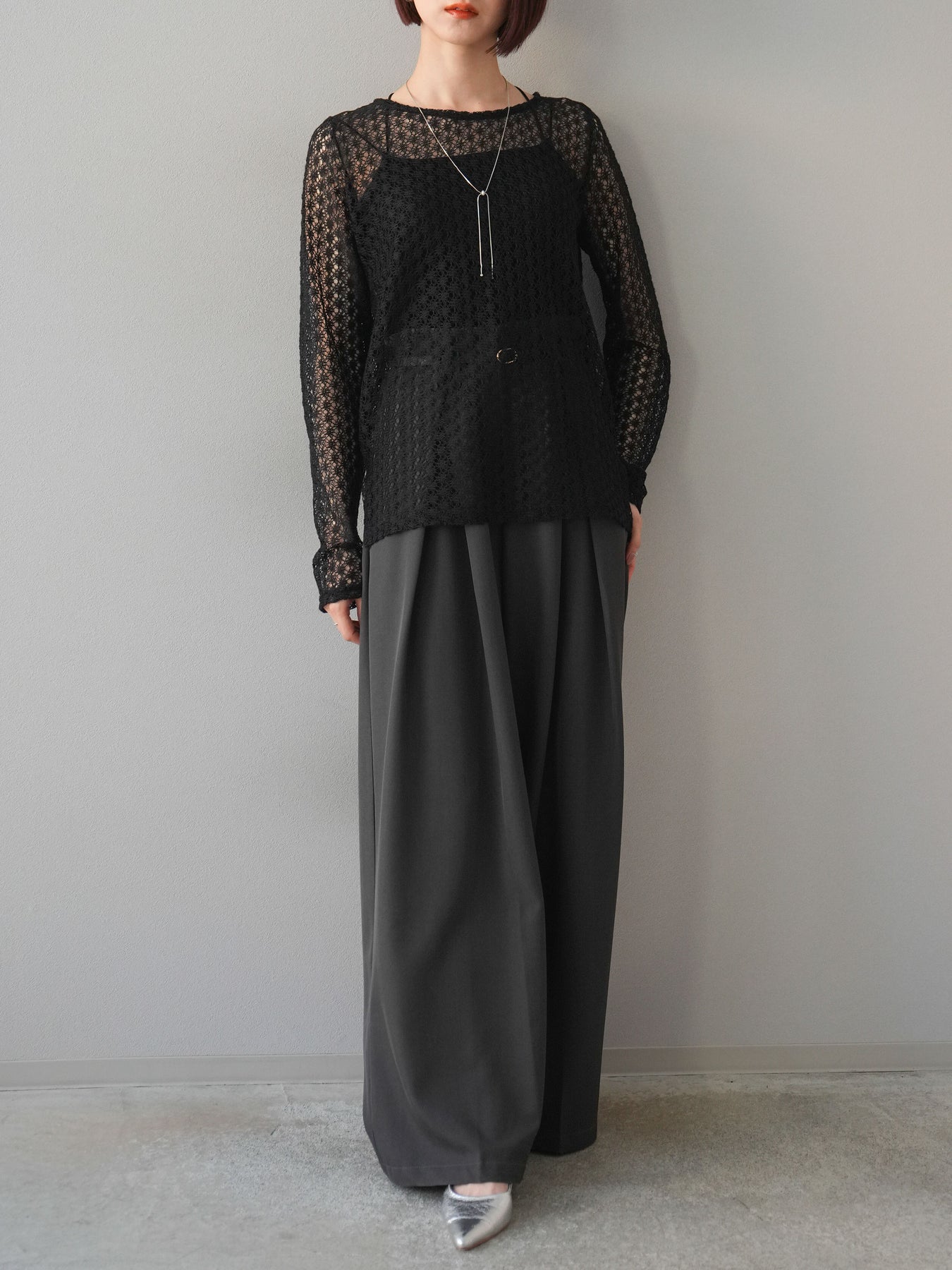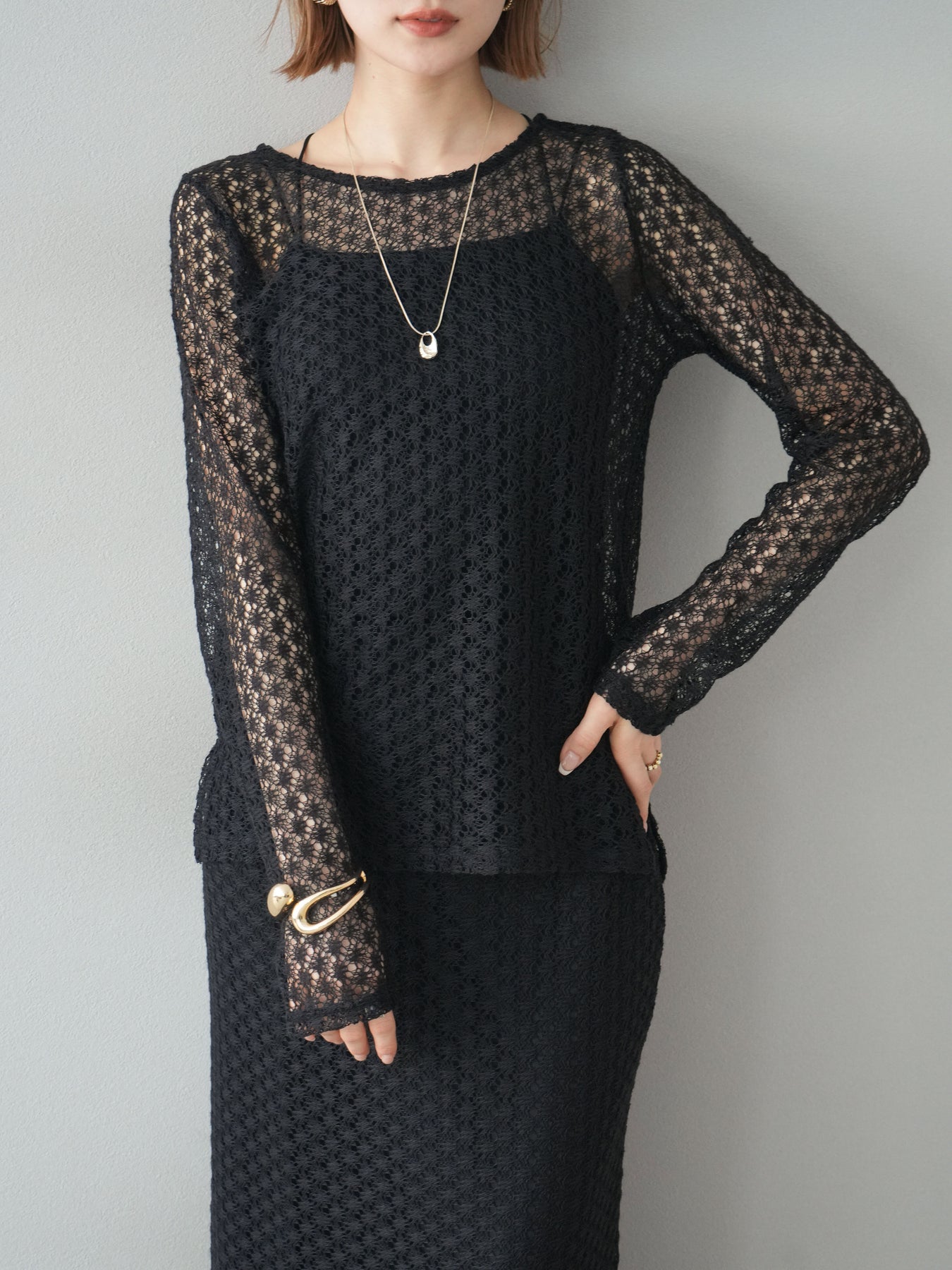 [予約]透かし編みトップス/ブラック
