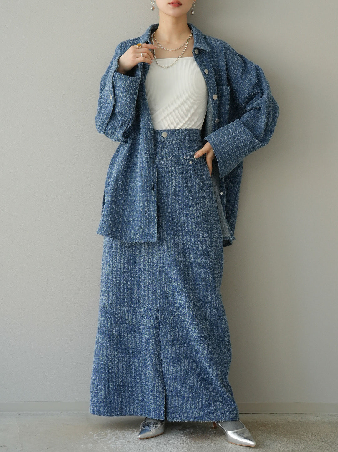 [予約]ネップデニムオーバーシャツジャケット/ブルー