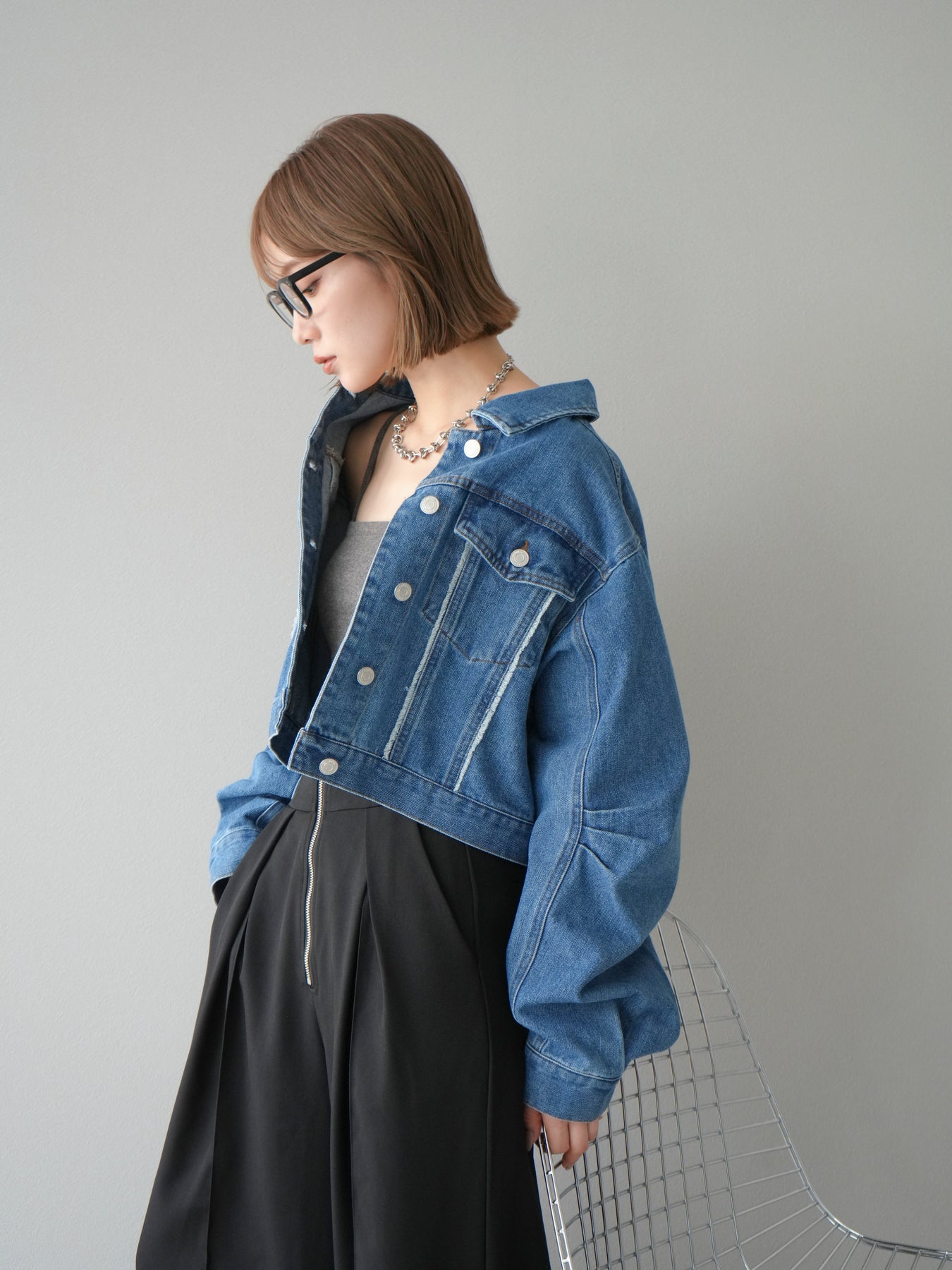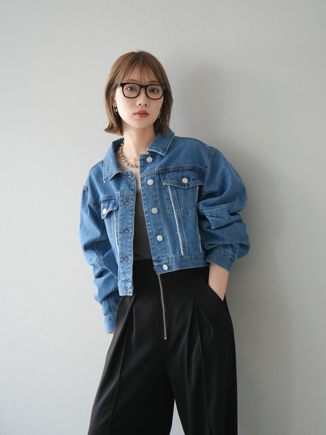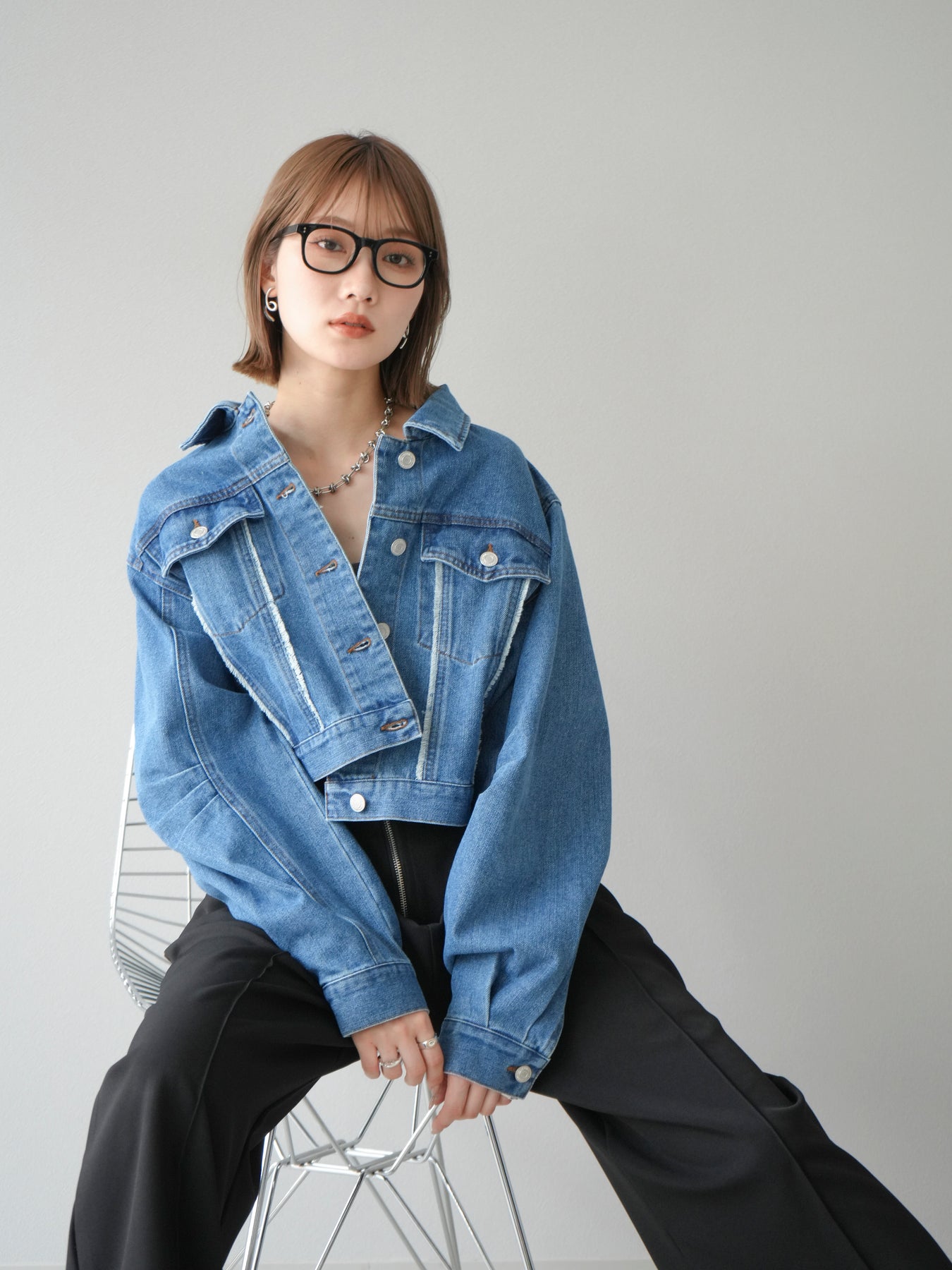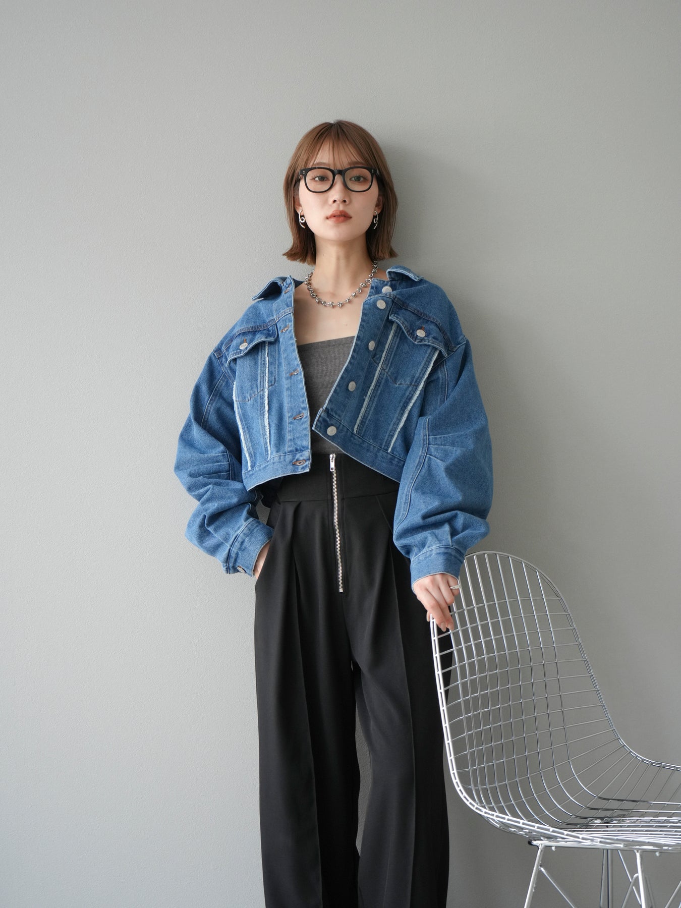 [予約]フリンジタックデザインデ二ムショートジャケット/ブルー
