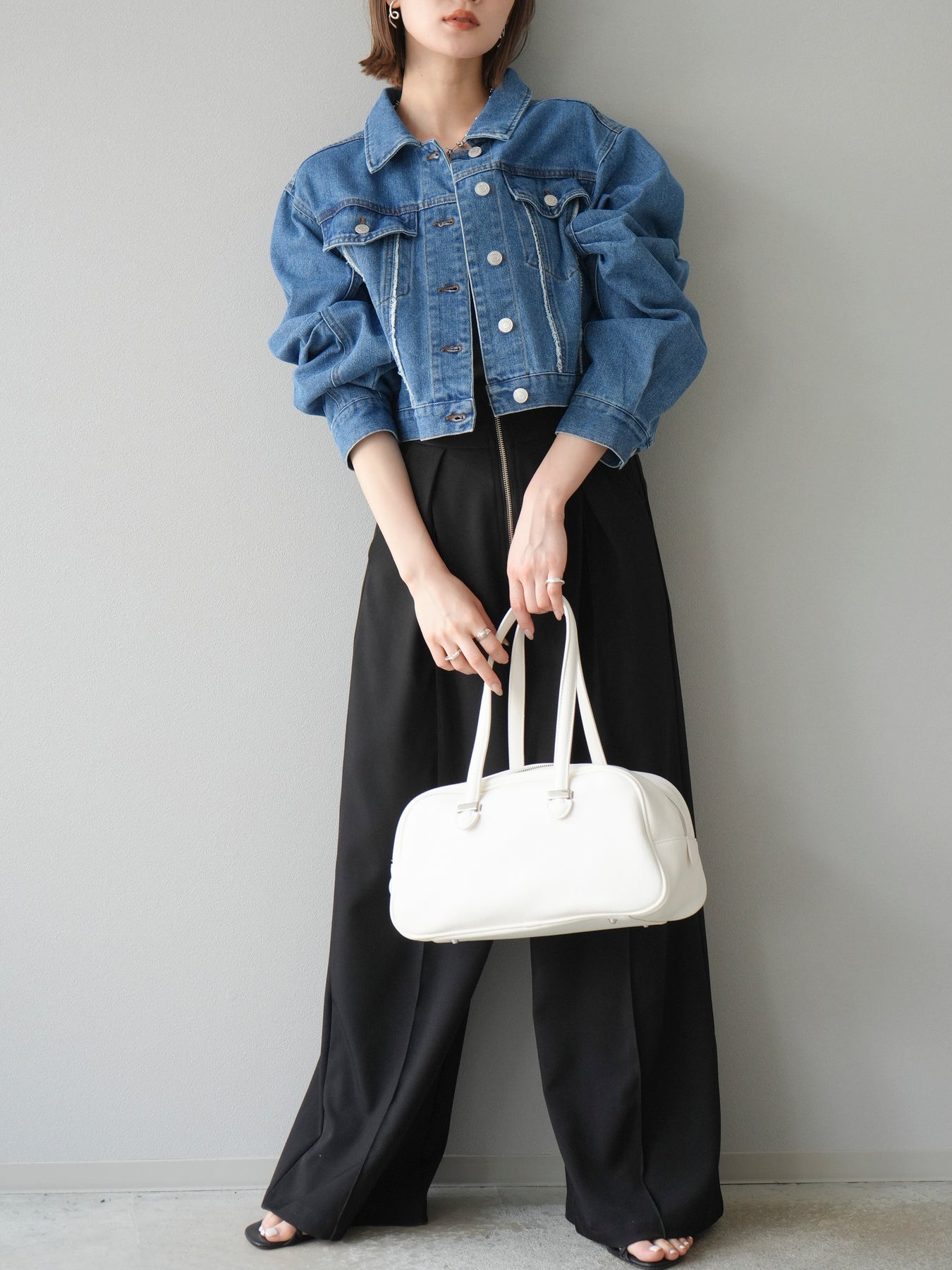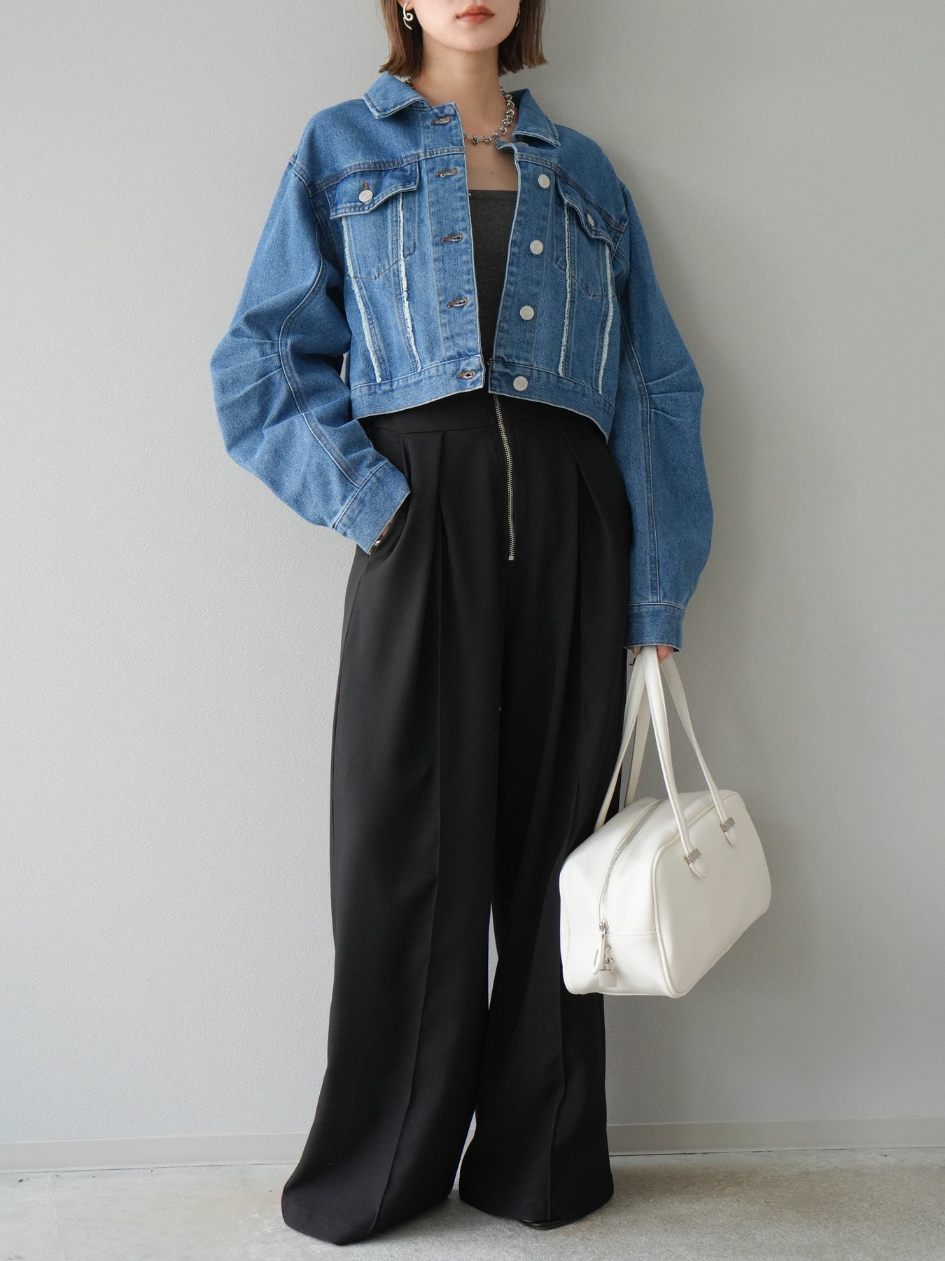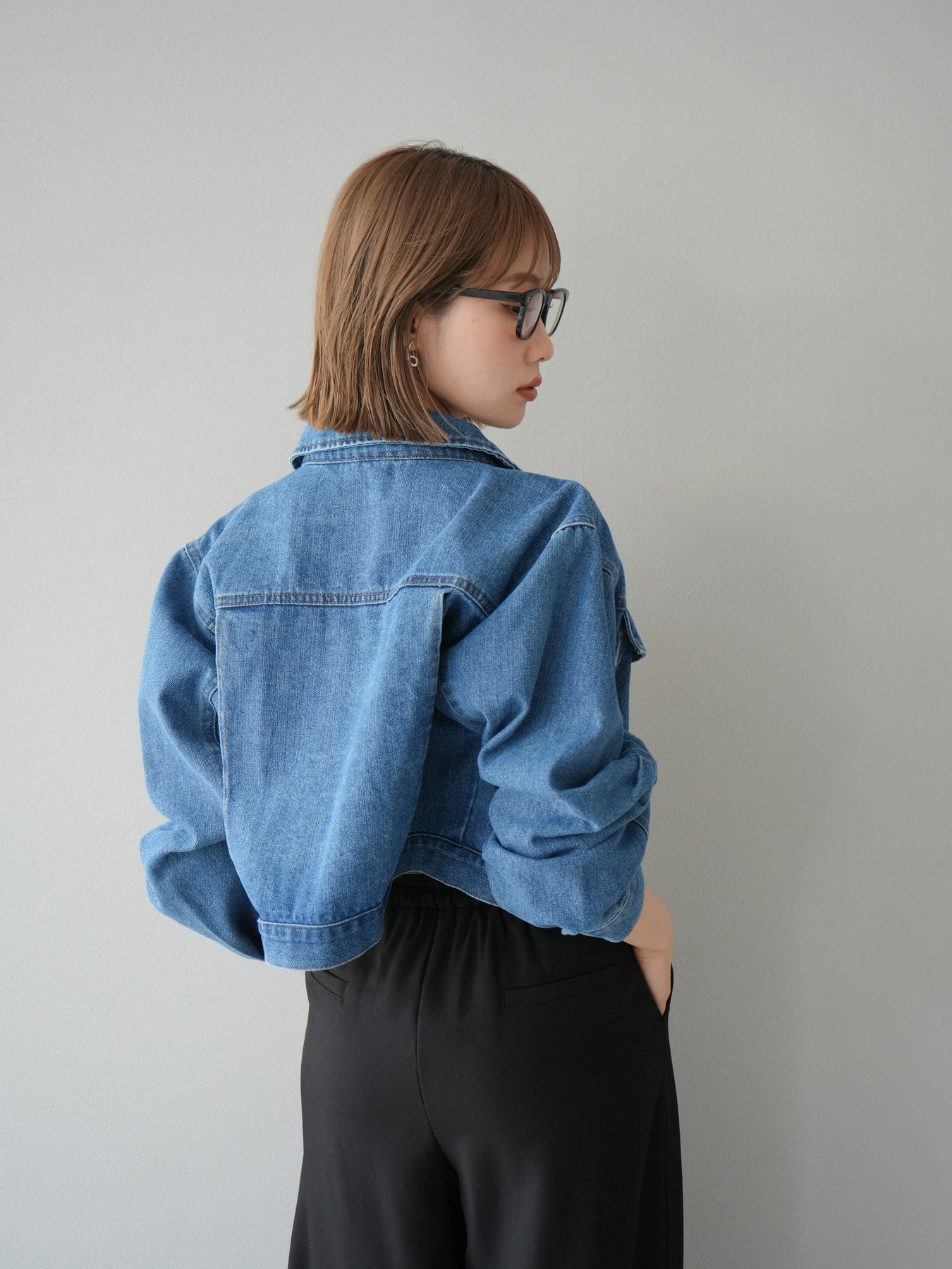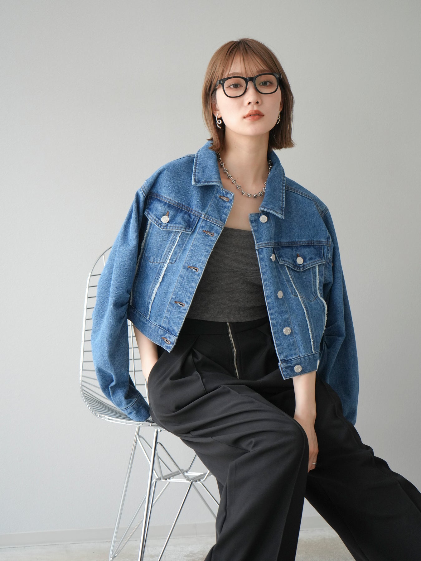 [予約]フリンジタックデザインデ二ムショートジャケット/ブルー