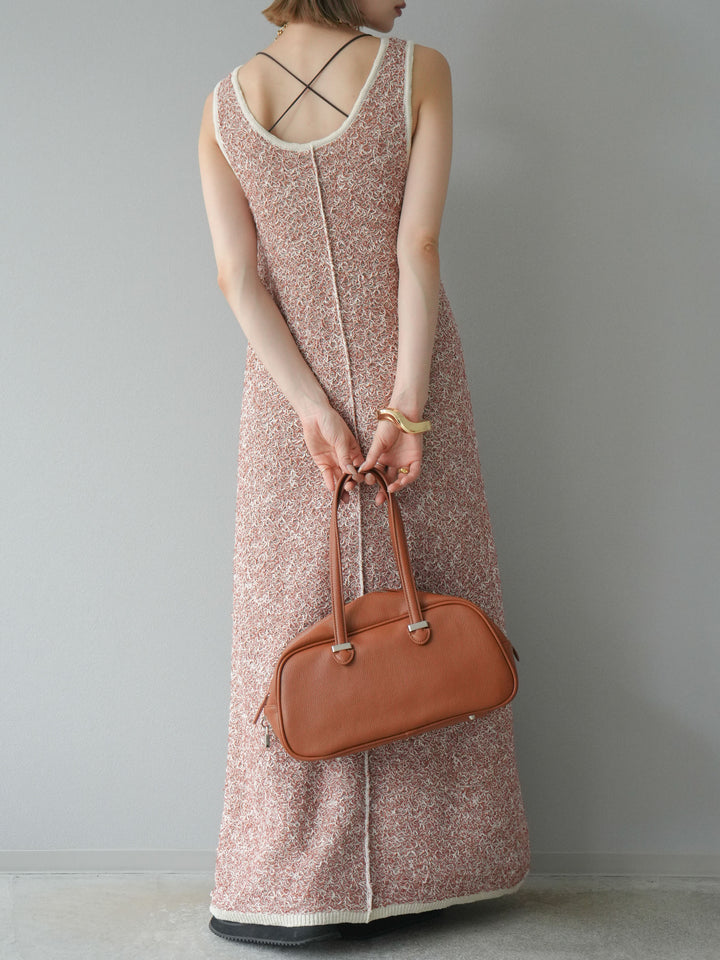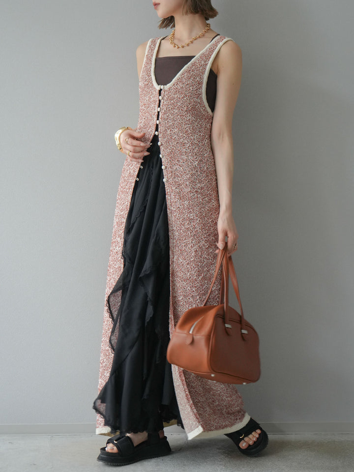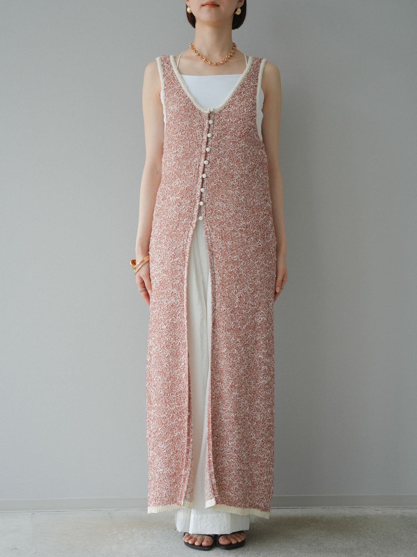 [予約]ミックスヤーンフロントスリットワンピース/オレンジ