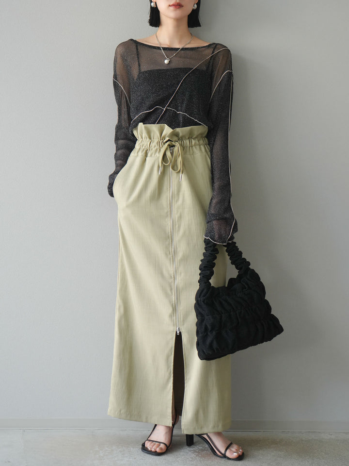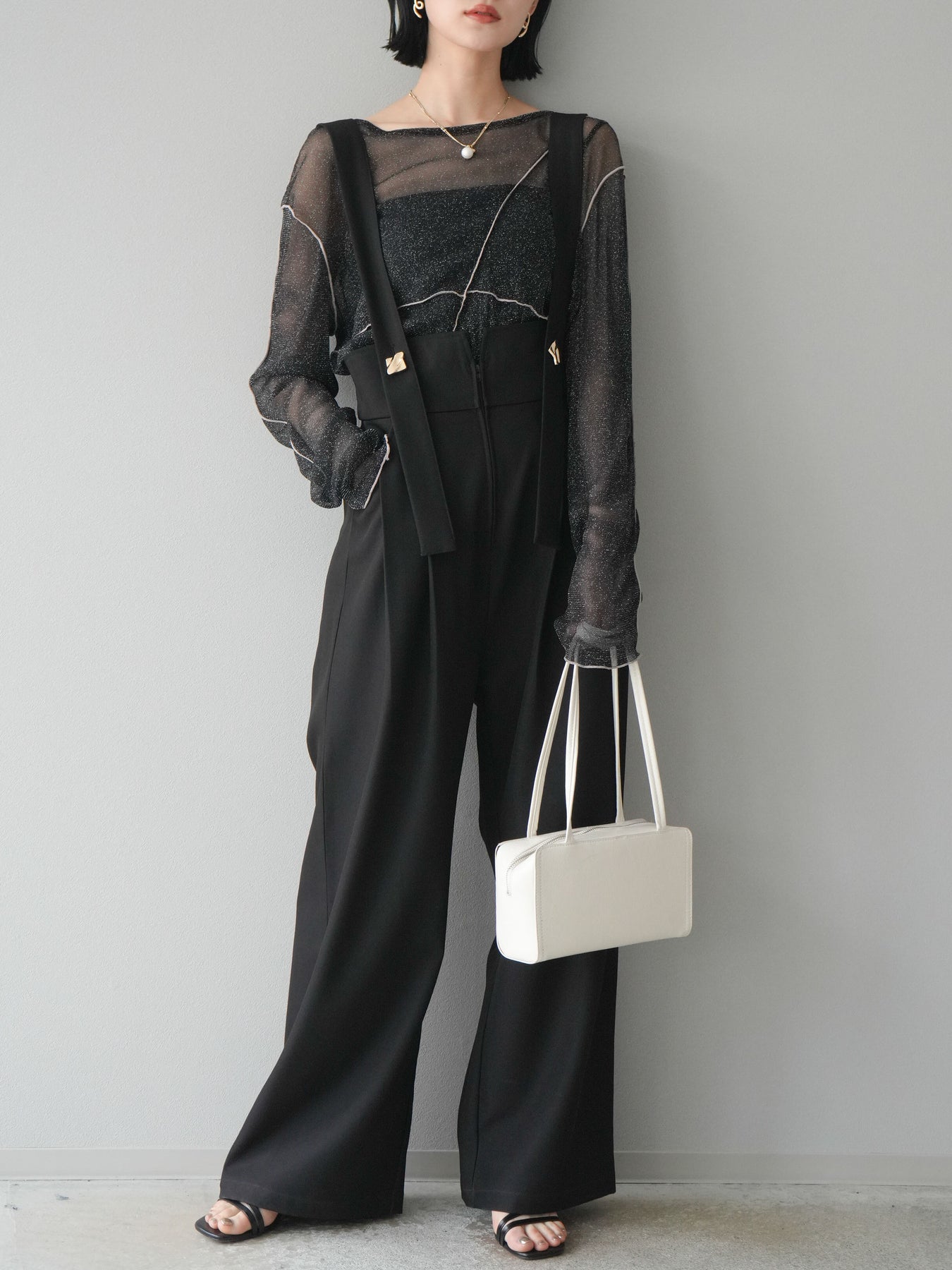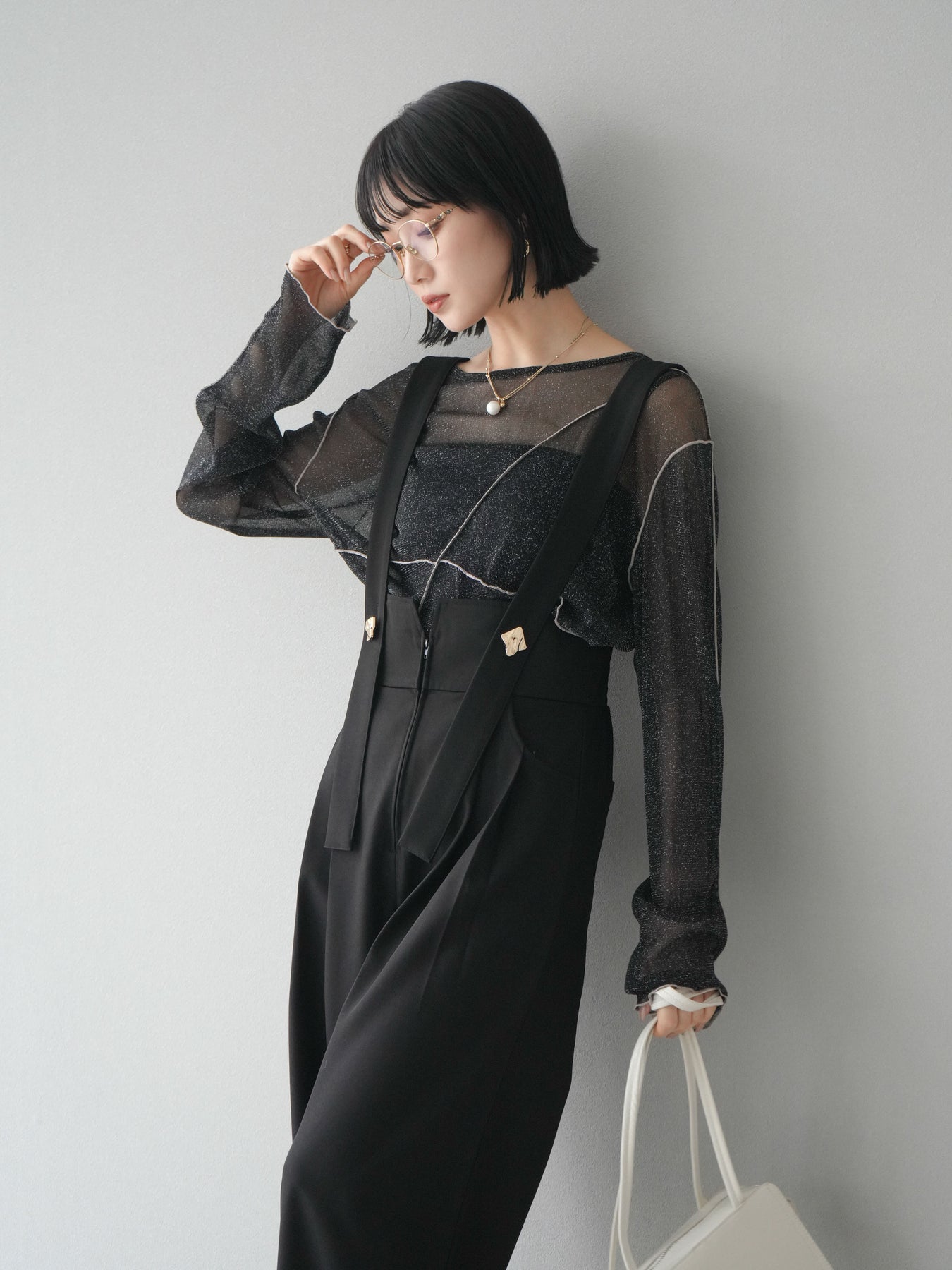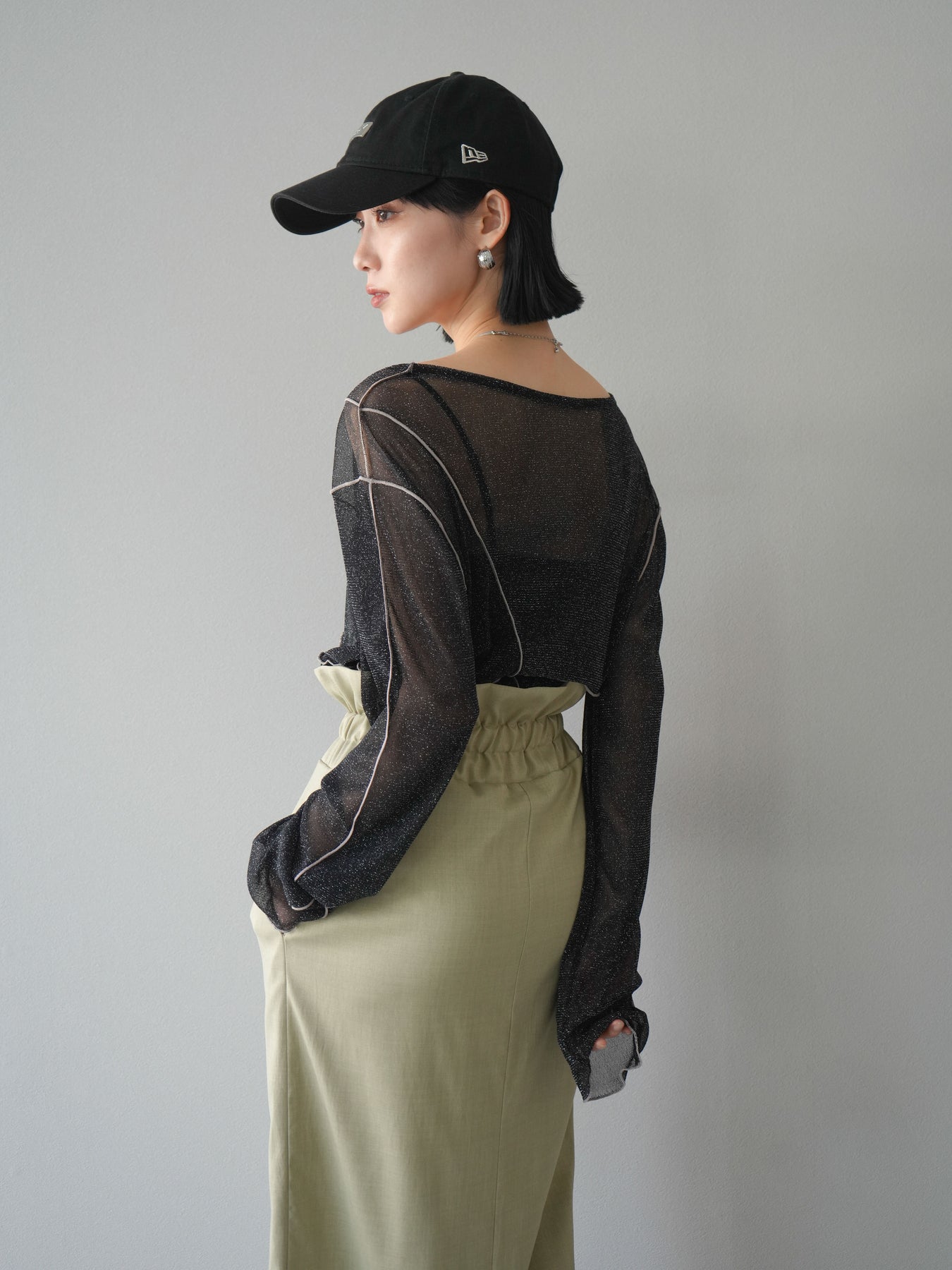 繊細なラメ感が目を惹く、トレンドライクなシアープルオーバー。バイカラーメローのラインがアクセントになり、レイヤードスタイルにも映えるデザインです。柔らかく軽い着心地で、旬の透け感コーデが楽しめる一枚。インナーとの組み合わせ次第で表情が変わり、デイリーから特別なシーンまで幅広く活躍します。 ※ボトムス、キャミソール(インナー)以外の商品は一律でインナーは付属していません