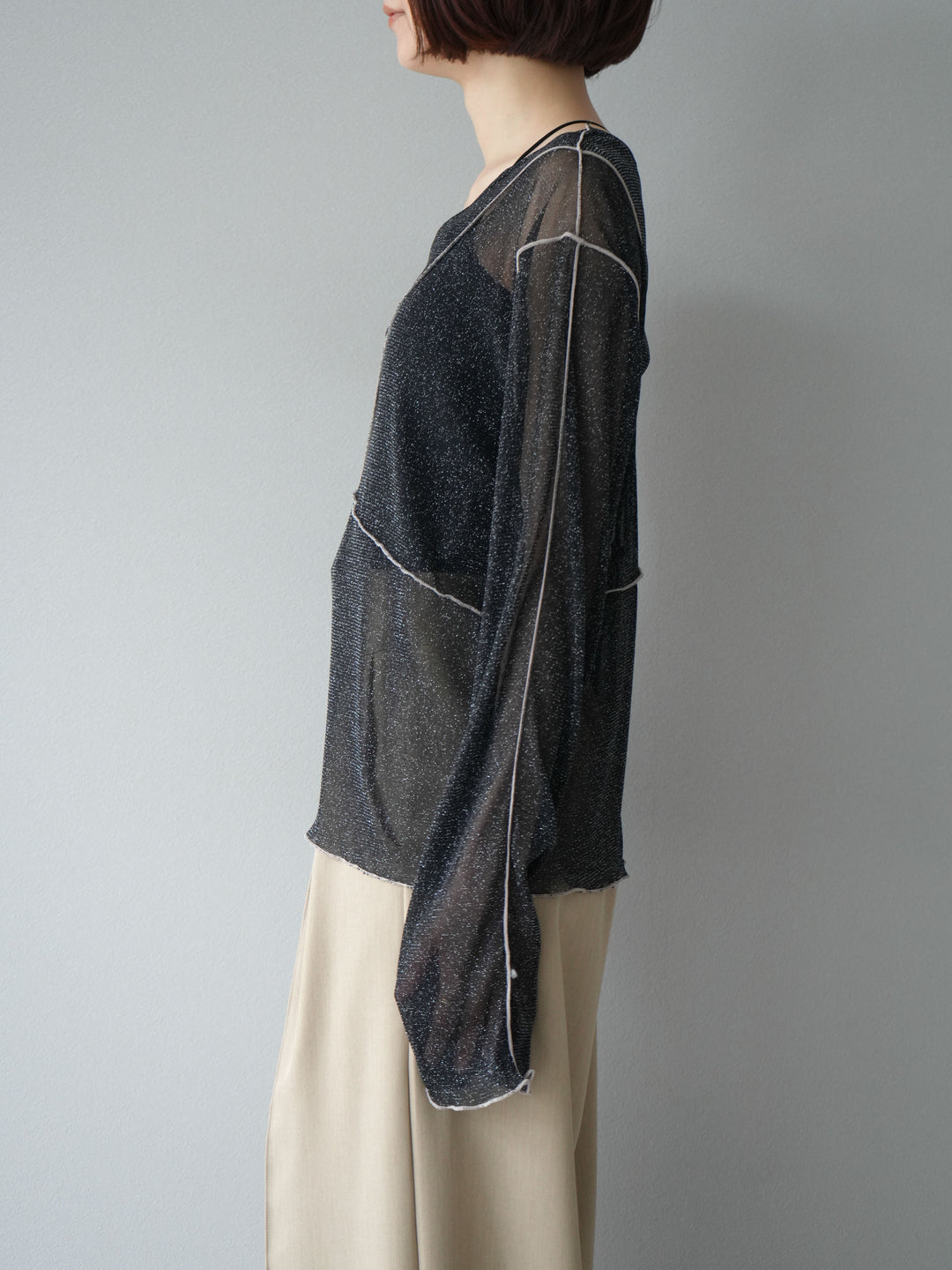 [予約]ラメシアーバイカラーメロープルオーバー/ブラック
