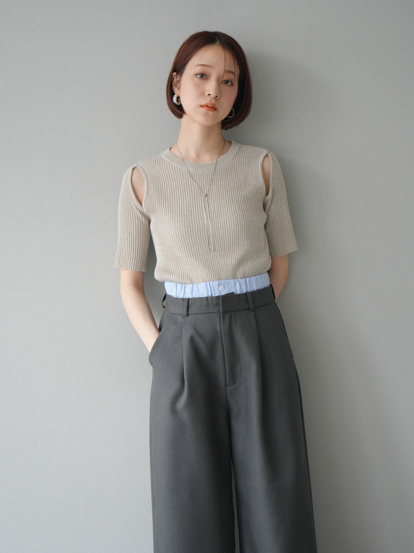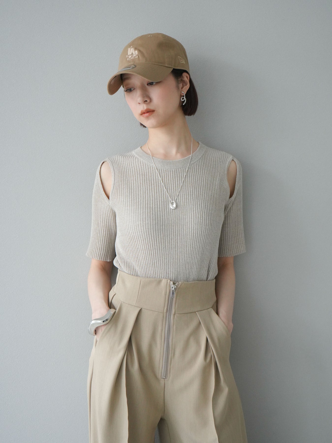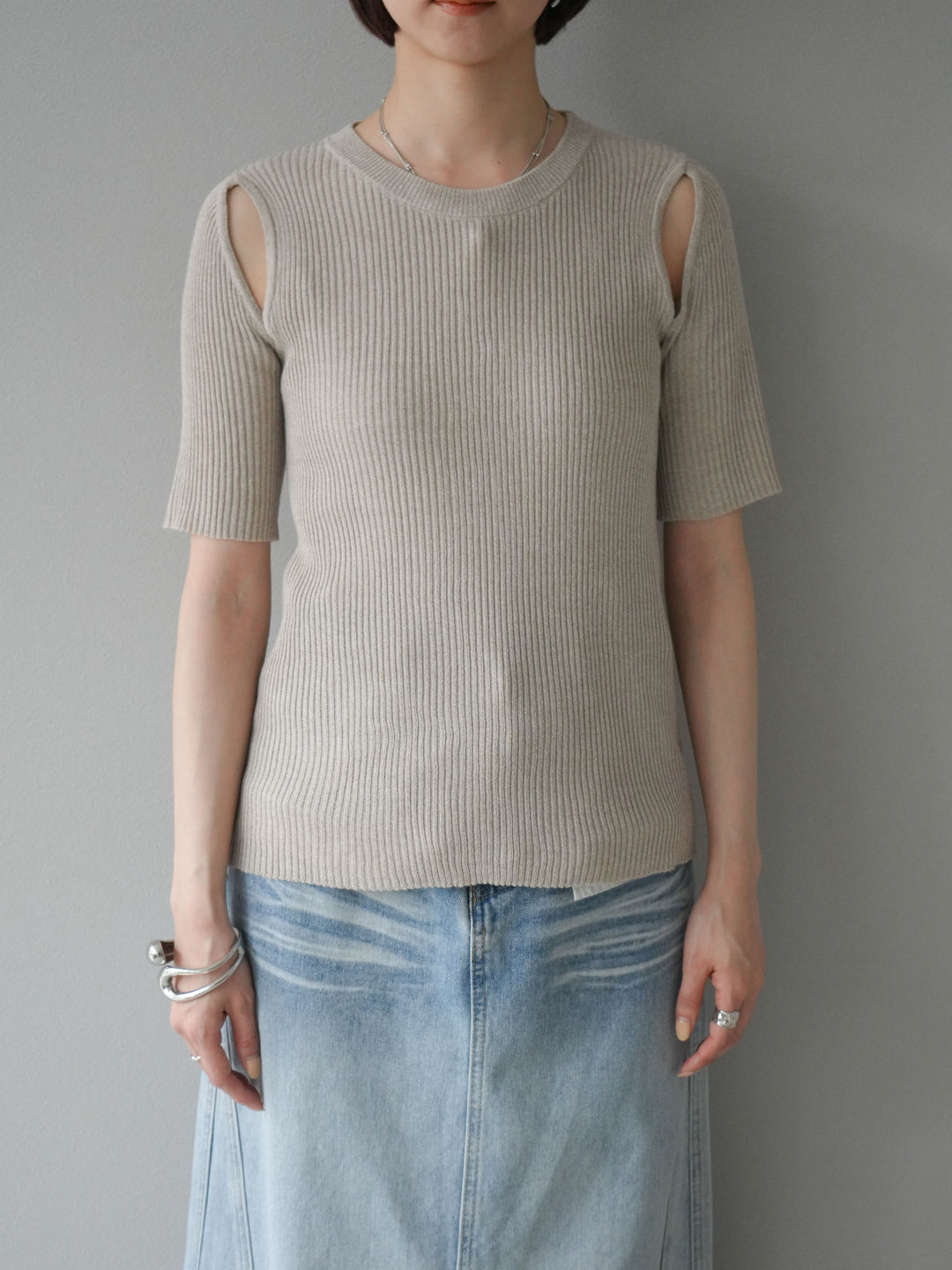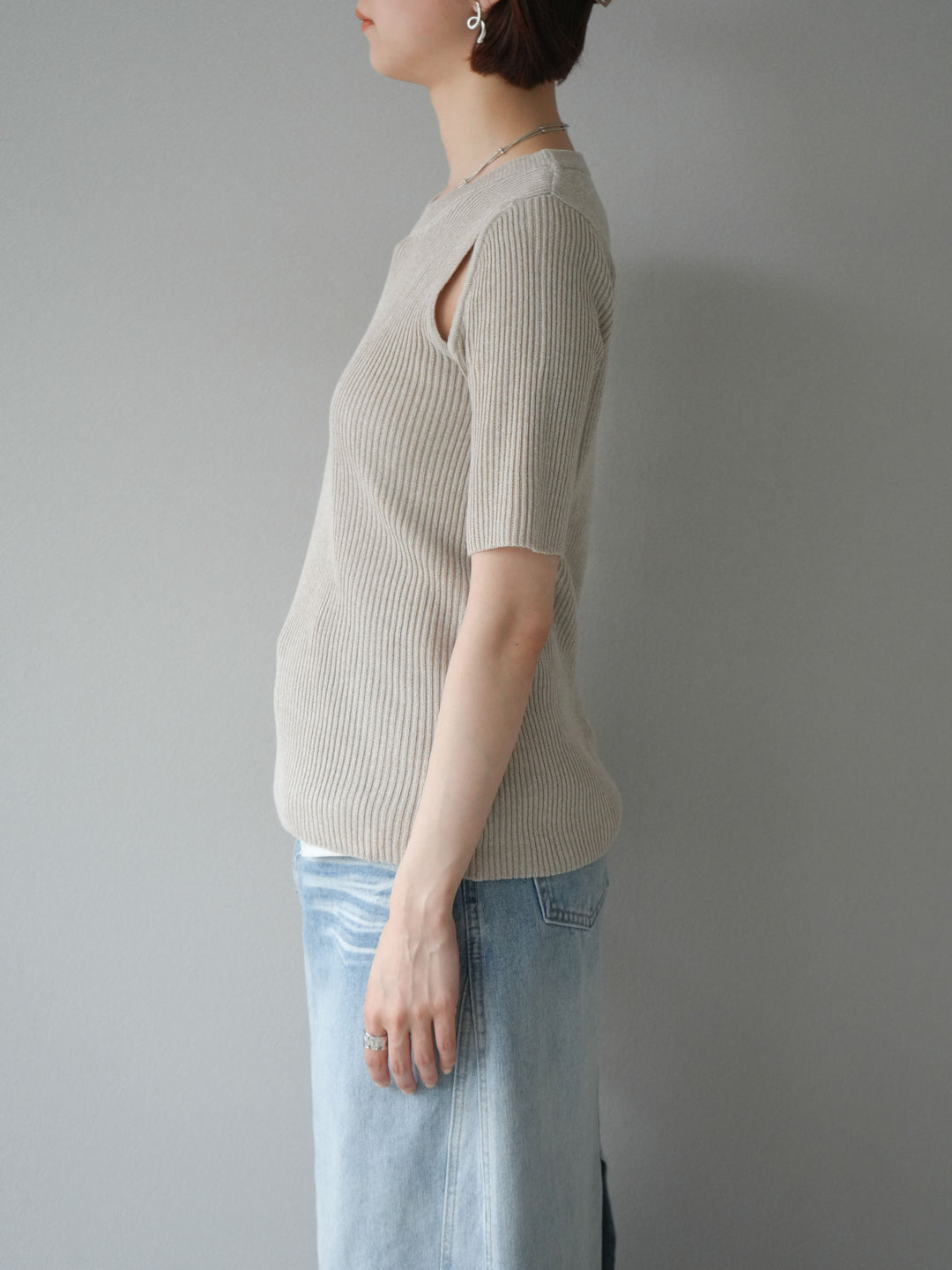 [予約]MIXニットショルダースリットプルオーバー/ベージュ
