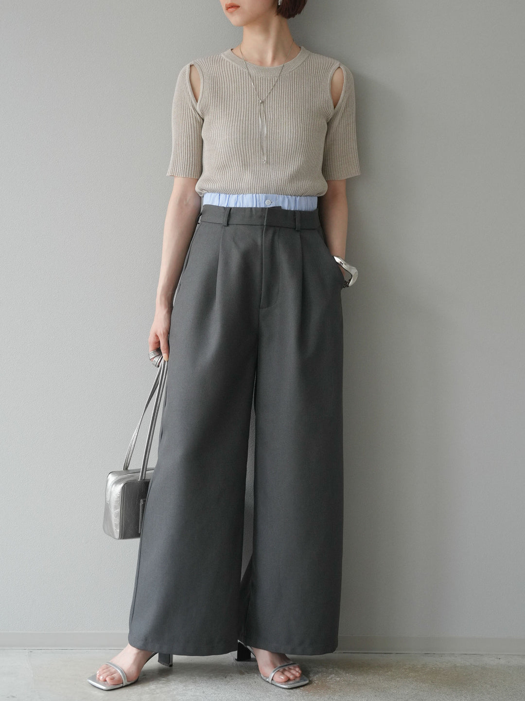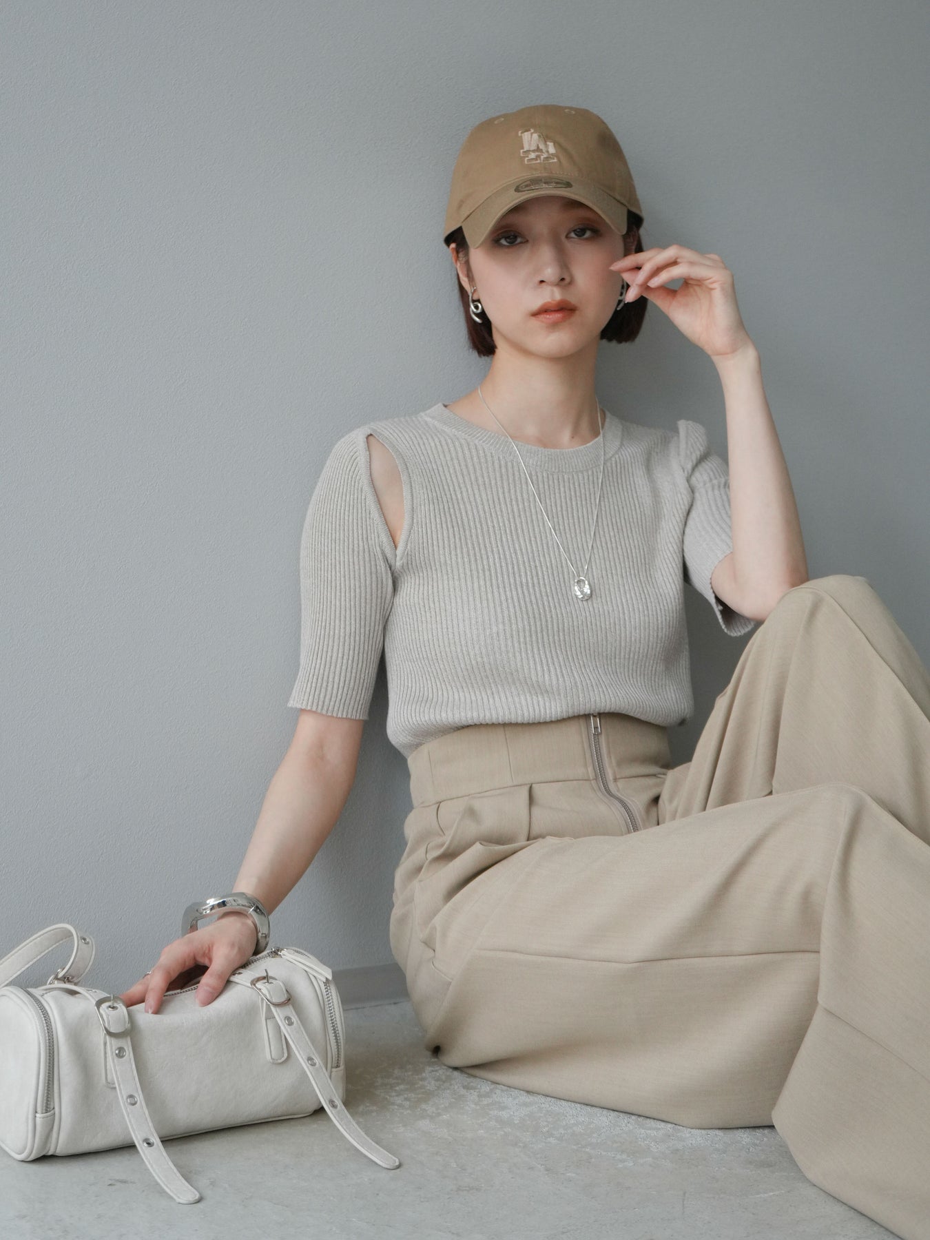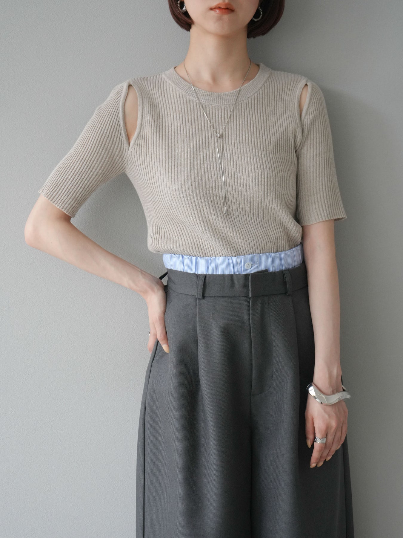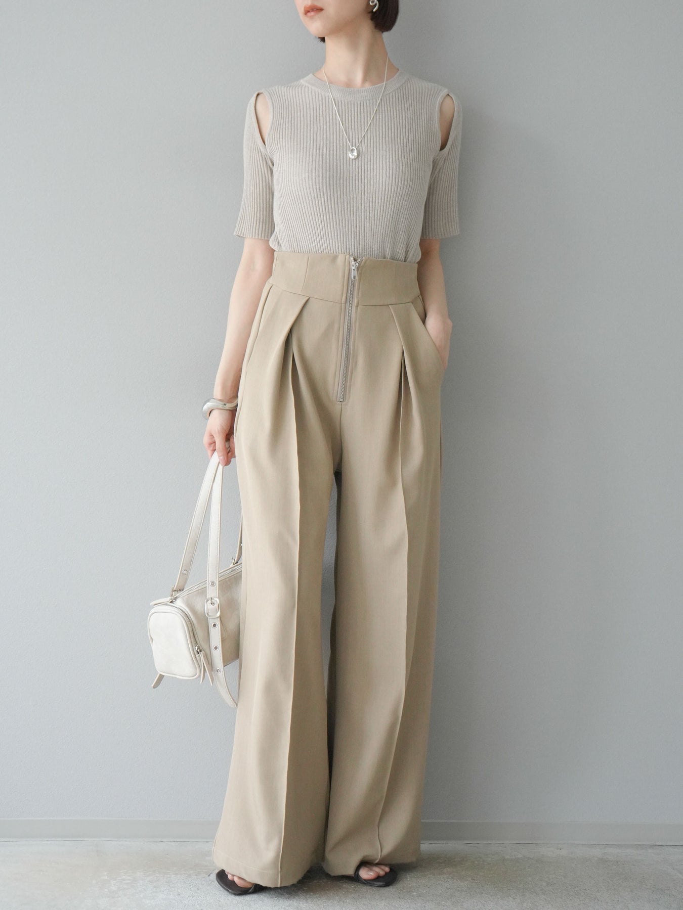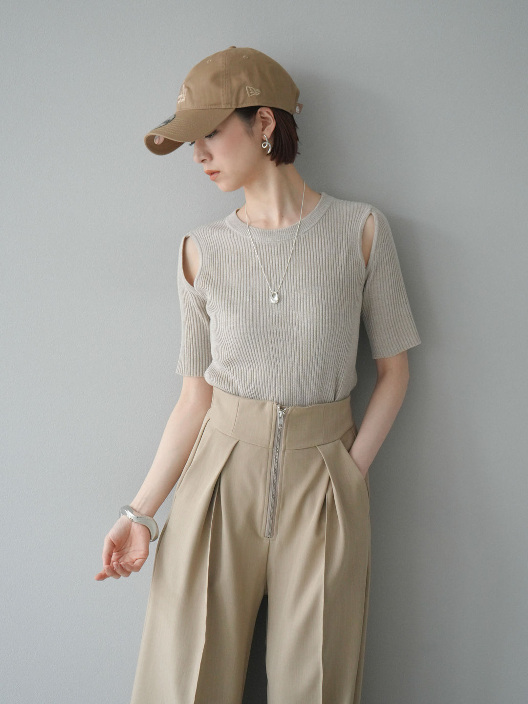 [予約]MIXニットショルダースリットプルオーバー/ベージュ