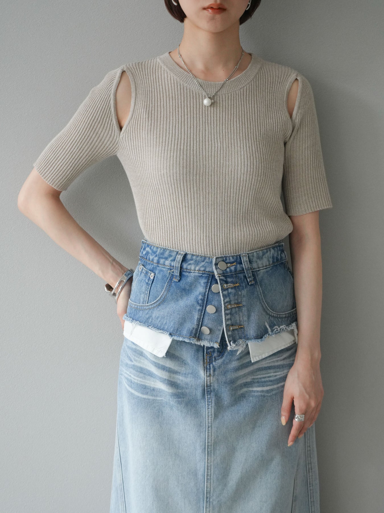 [予約]MIXニットショルダースリットプルオーバーに関連する商品を探す↓