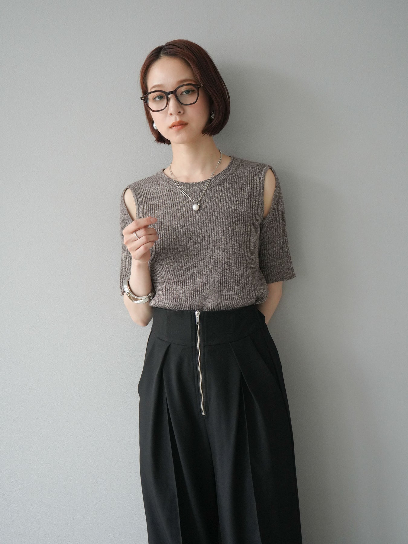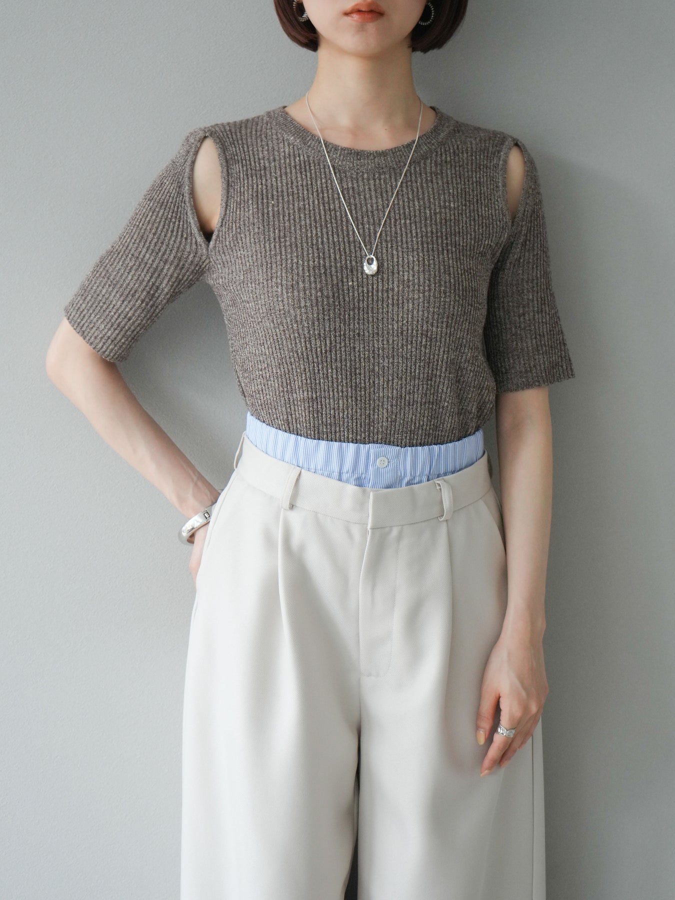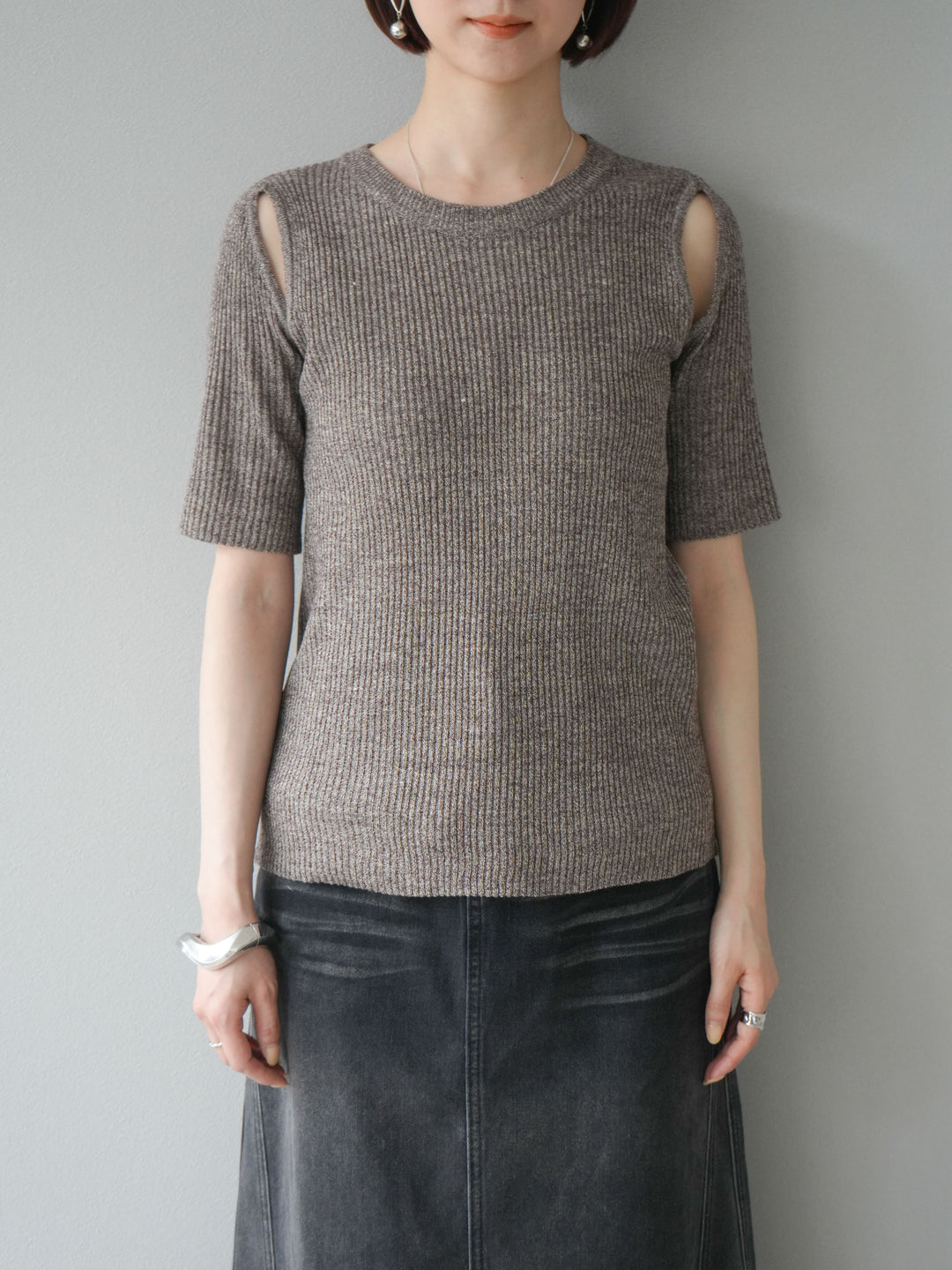 [予約]MIXニットショルダースリットプルオーバー/ブラウン