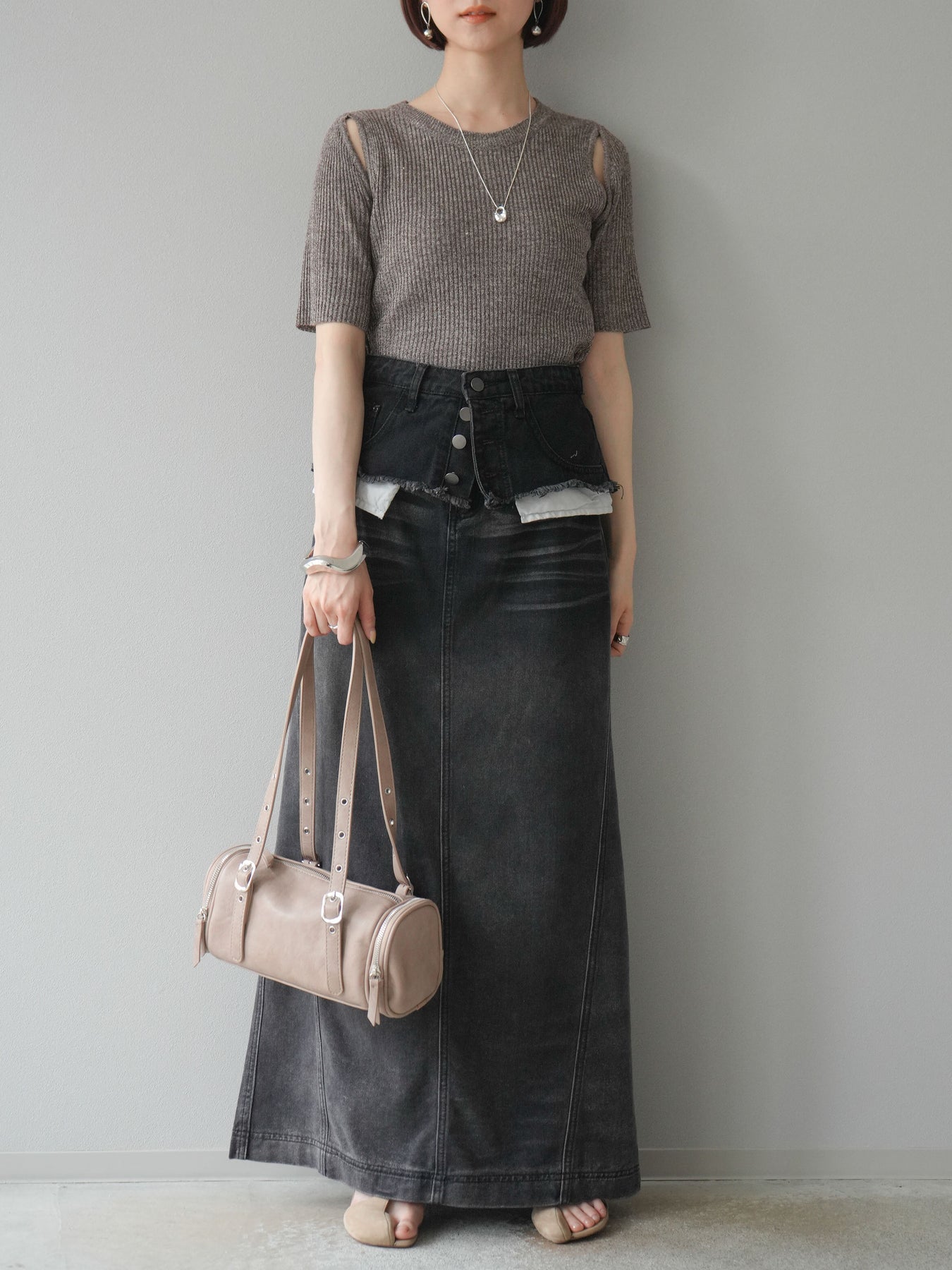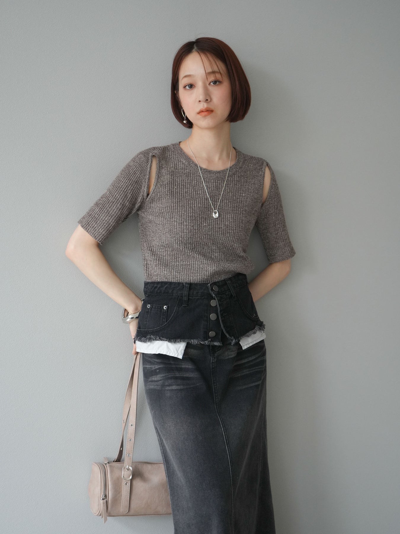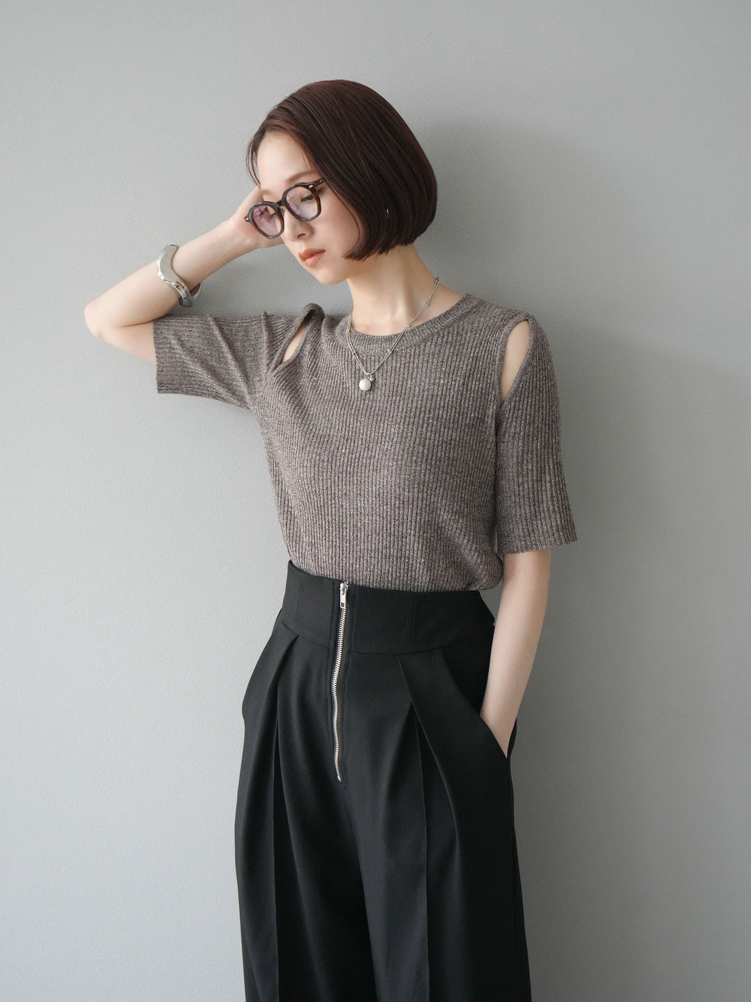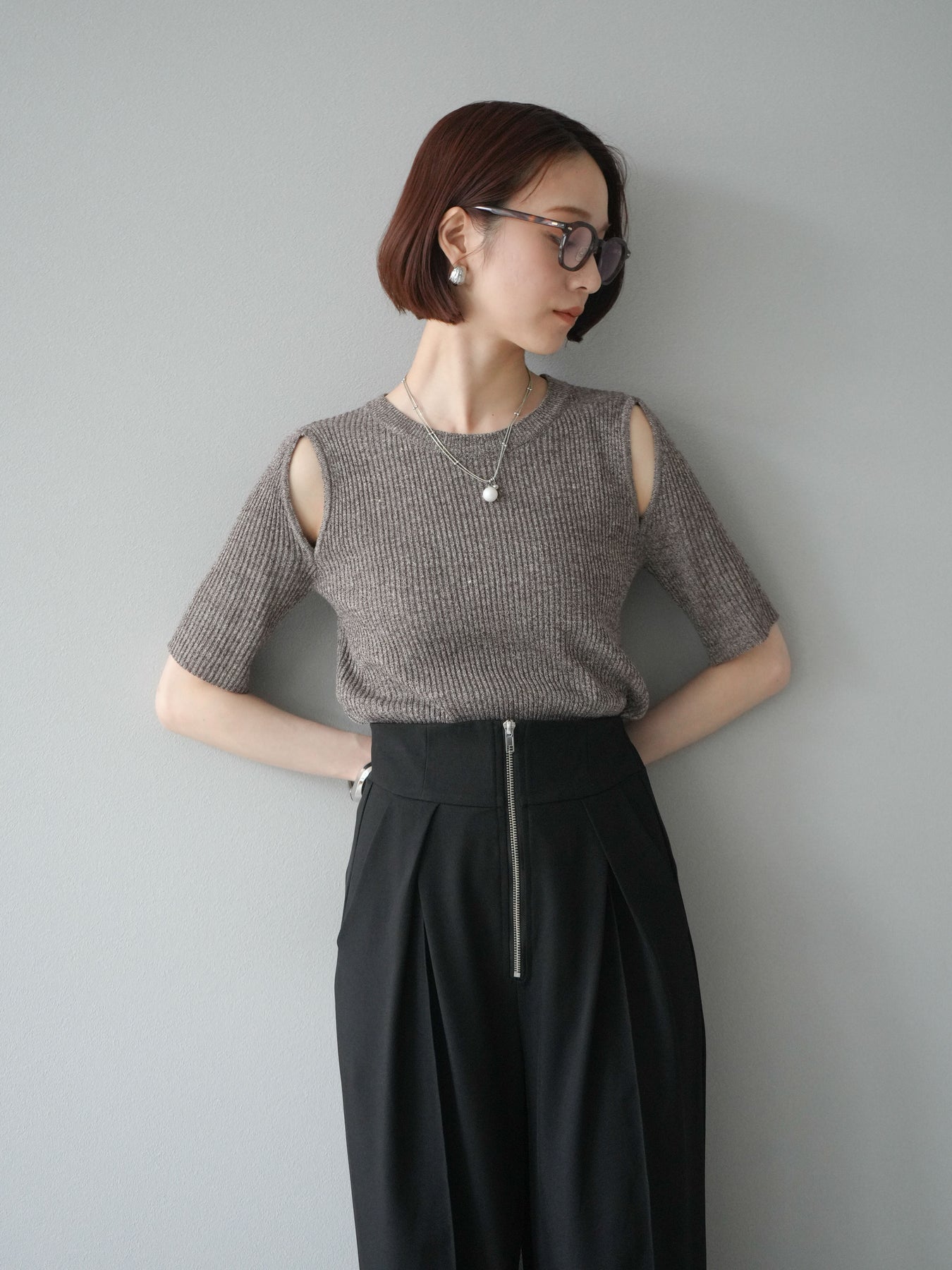 [予約]MIXニットショルダースリットプルオーバー/ブラウン