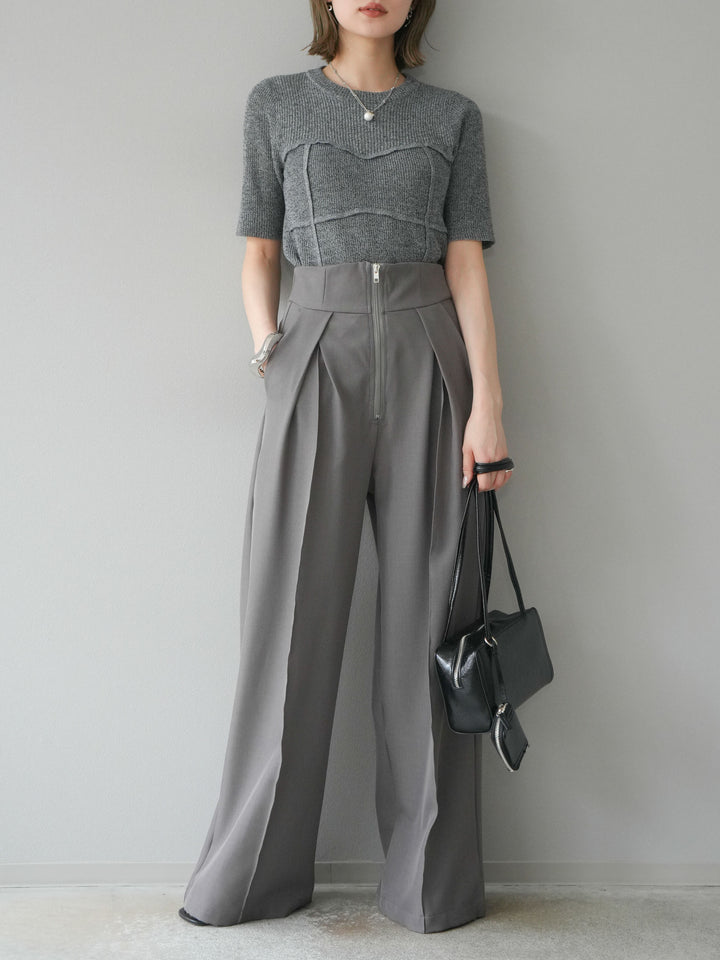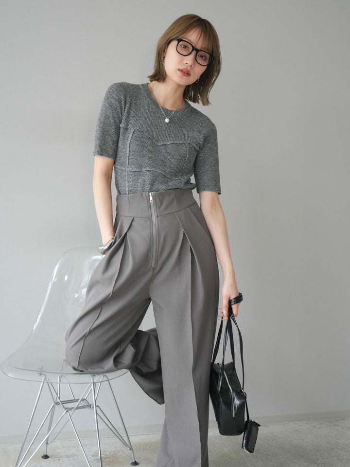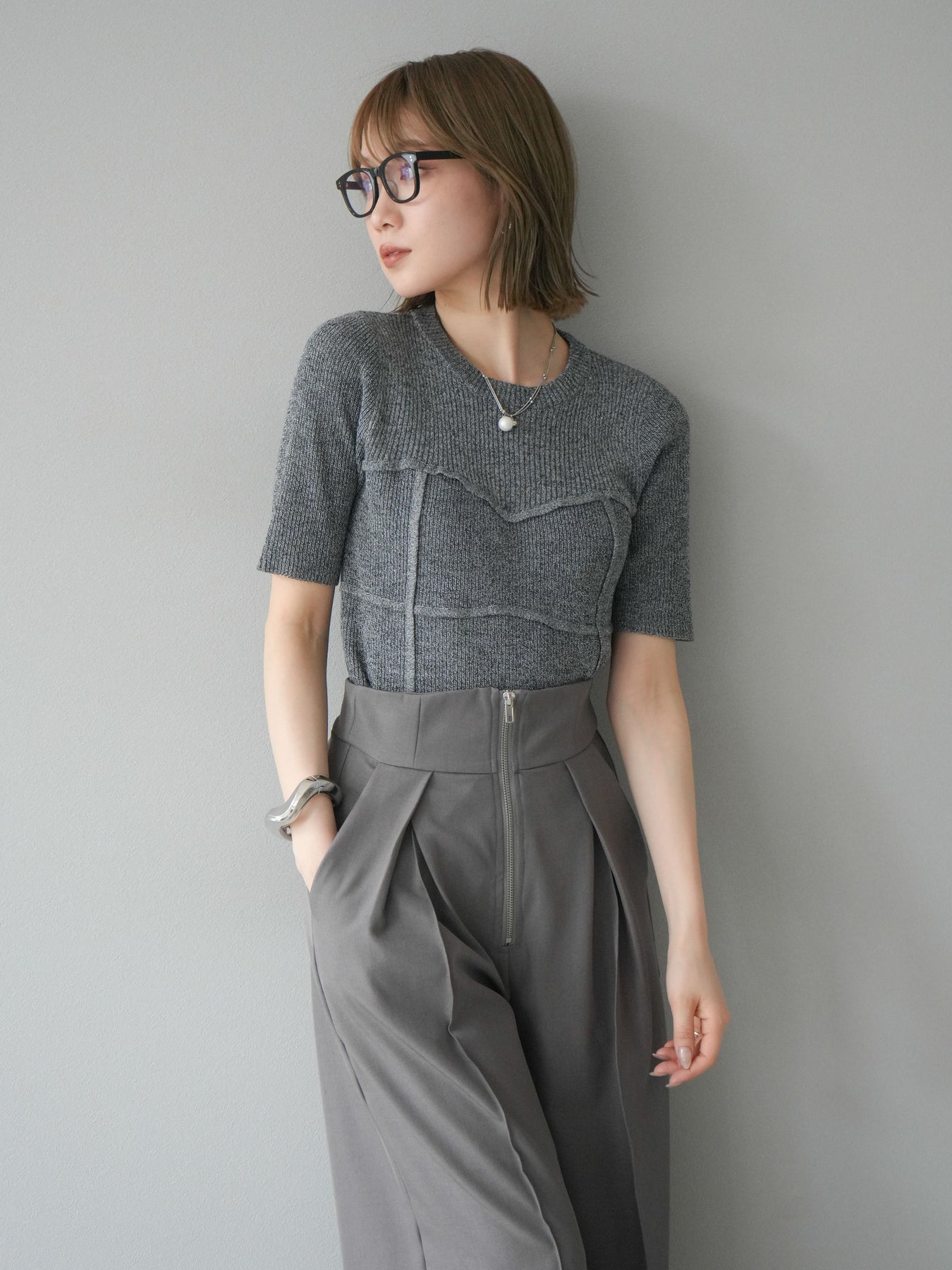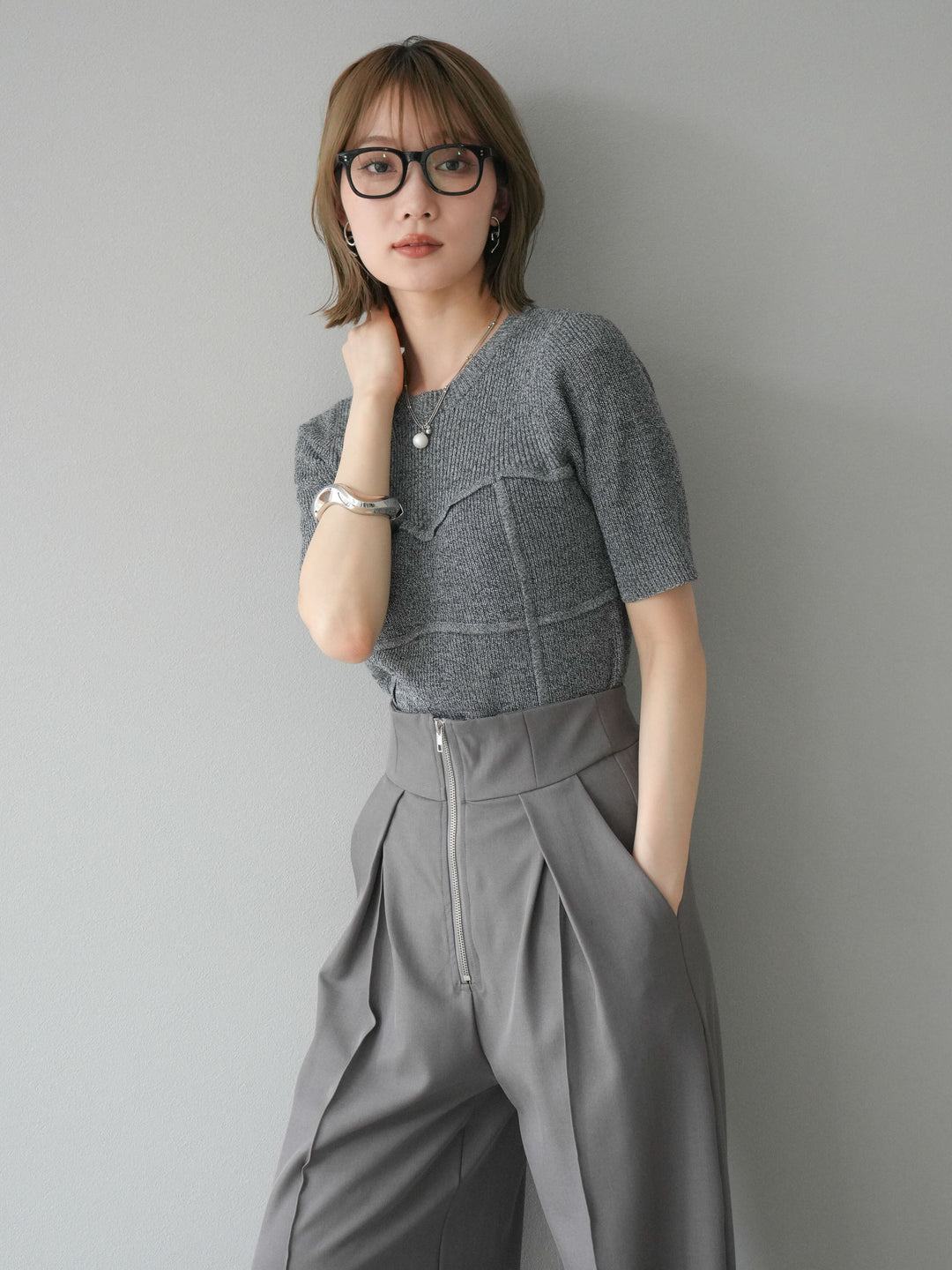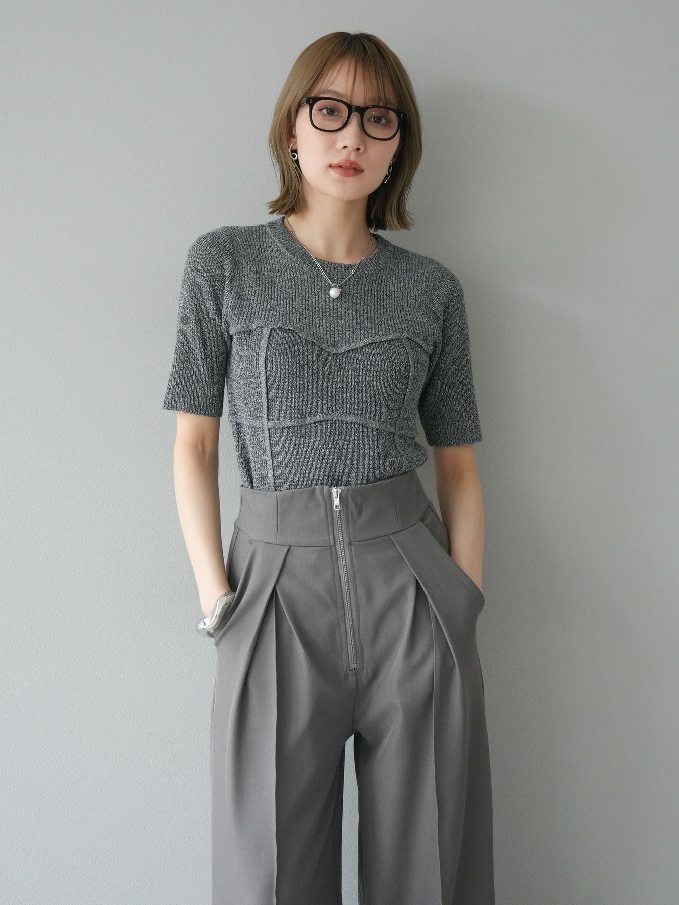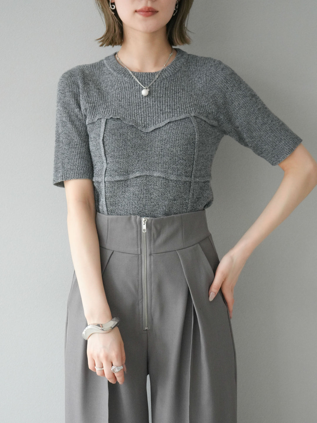 ビスチェをレイヤードしたような切り替えデザインが目を惹くニットプルオーバー。異なる編地のMIX感が今年らしく、着るだけで立体感のある着こなしに。コンパクトなシルエットながら伸縮性があり、快適な着心地も魅力。デニムやワイドパンツなど、さまざまなボトムスと好相性の1枚です。 ※ボトムス、キャミソール(インナー)以外の商品は一律でインナーは付属していません