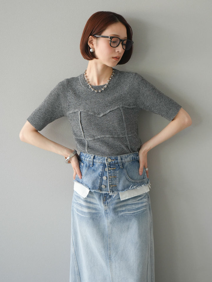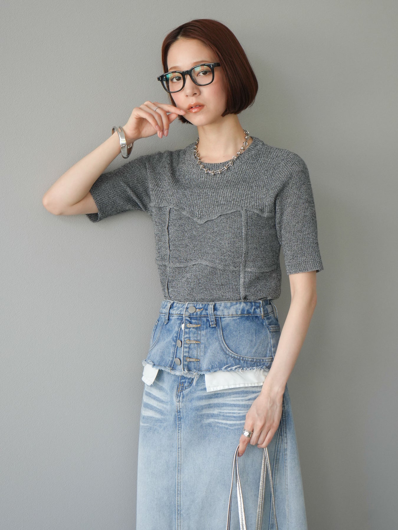 [予約]MIXニットビスチェデザインプルオーバー/ブラック