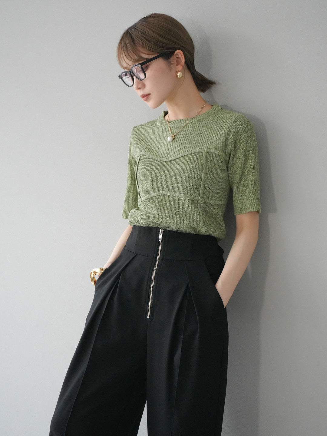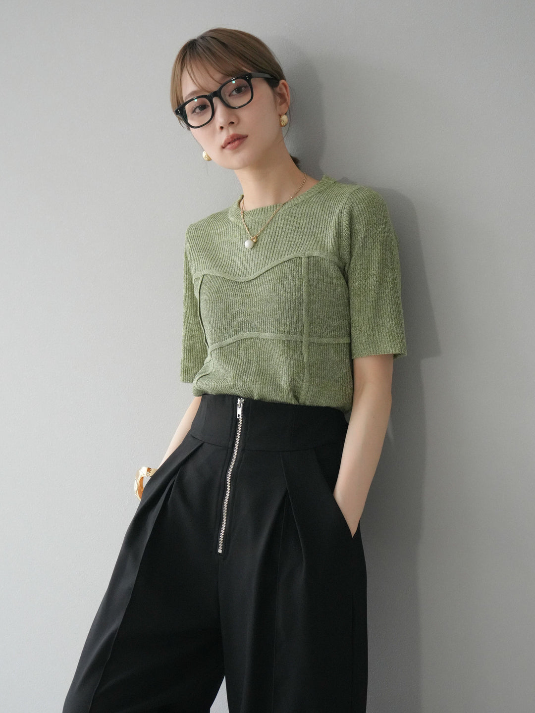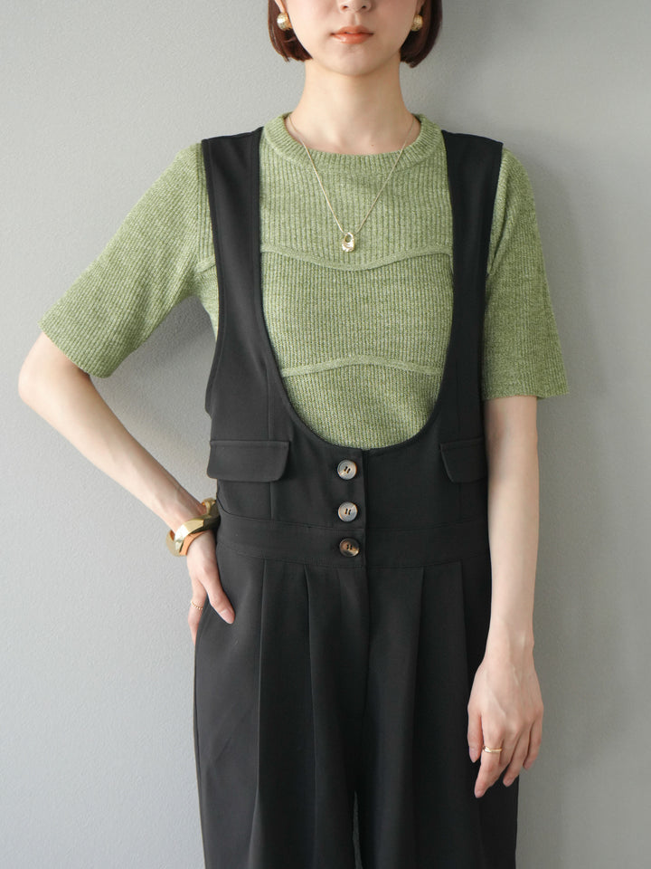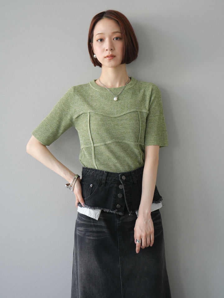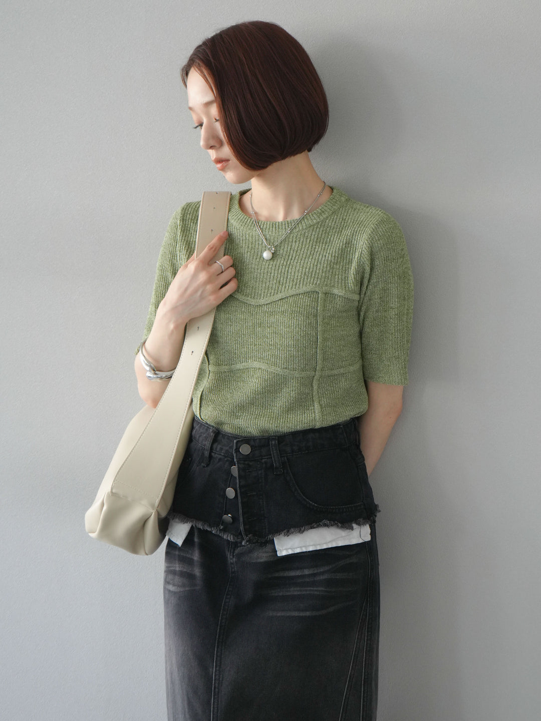 [予約]MIXニットビスチェデザインプルオーバー/グリーン