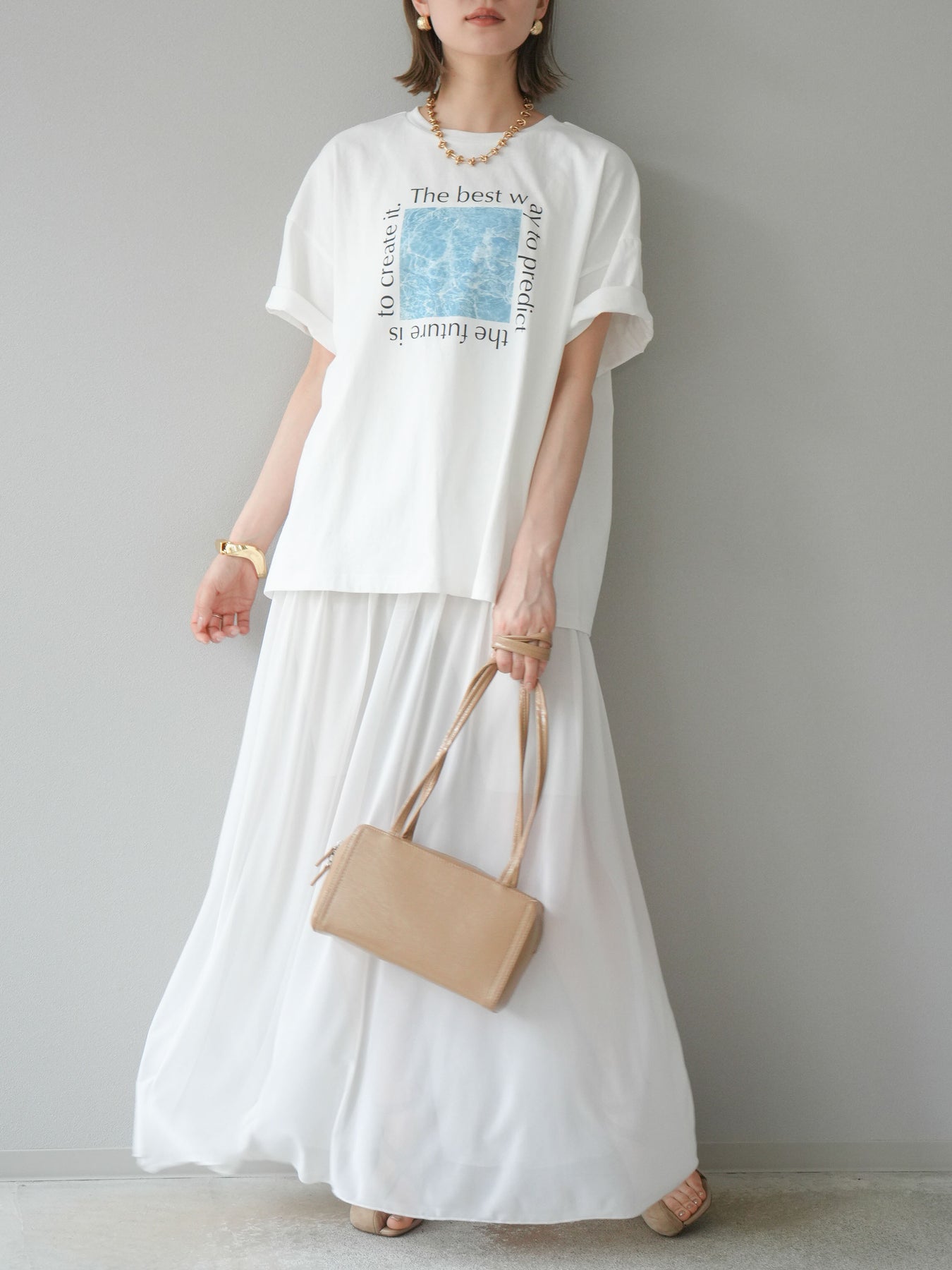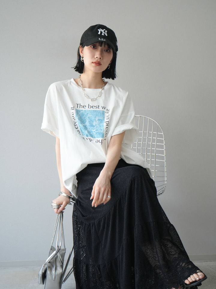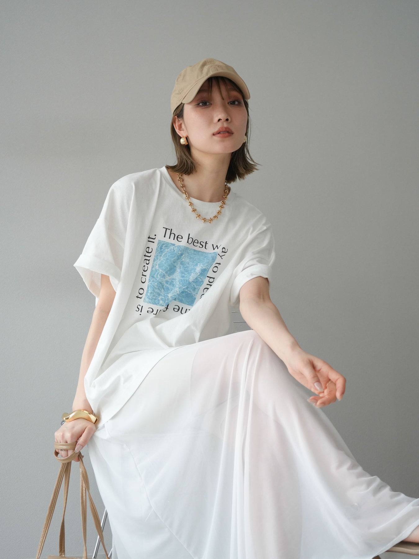 フロントに風景フォトと英字ロゴを組み合わせた、トレンド感たっぷりのプリントTシャツ。程よくルーズなシルエットで、抜け感のあるカジュアルスタイルを叶えます。柔らかなコットン素材で着心地も抜群。デニムやスカートと合わせて、1枚でサマになるアイテムです。 ※ボトムス、キャミソール(インナー)以外の商品は一律でインナーは付属していません