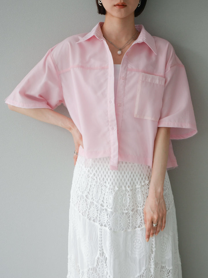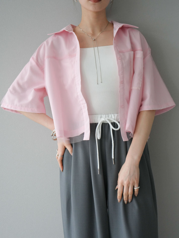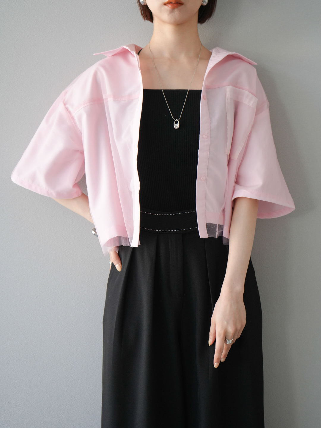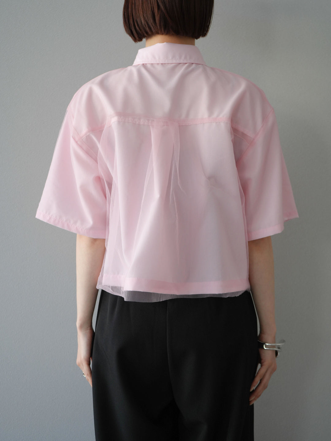 [予約]フロントシームチュールレイヤードハーフシャツ/ピンク