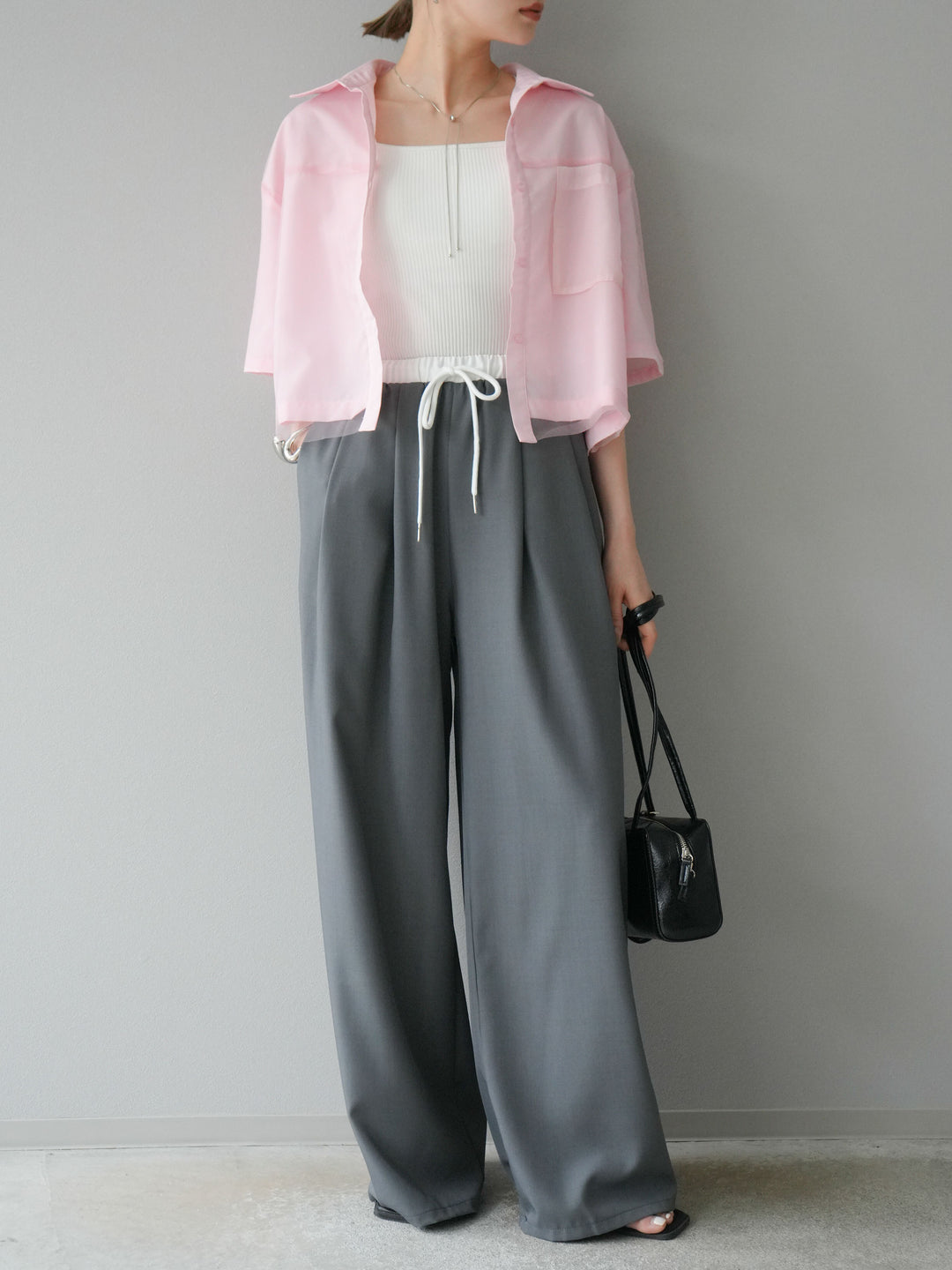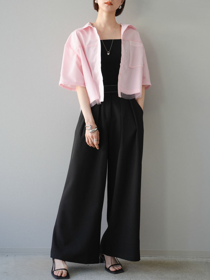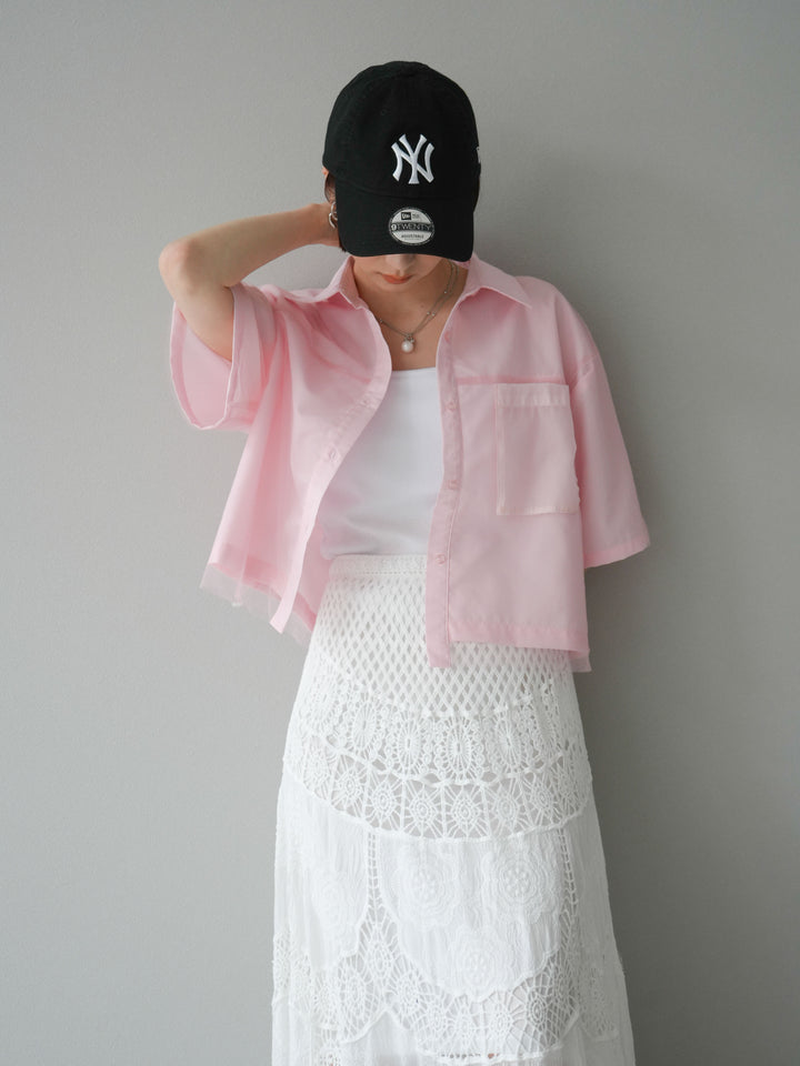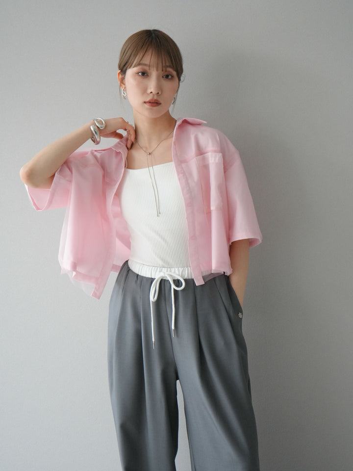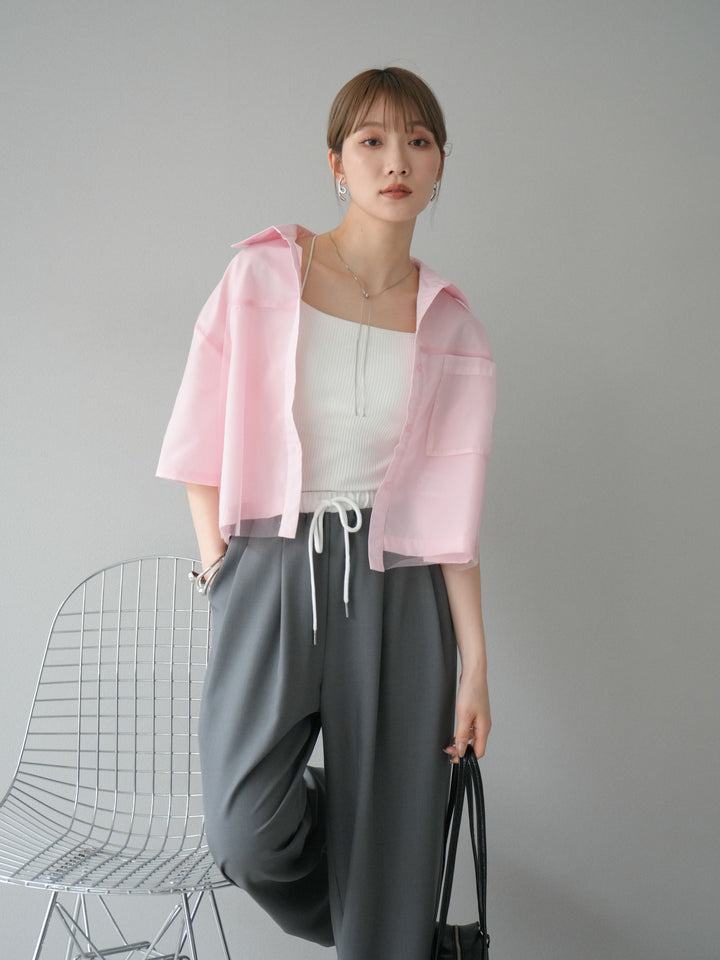 [予約]フロントシームチュールレイヤードハーフシャツ/ピンク