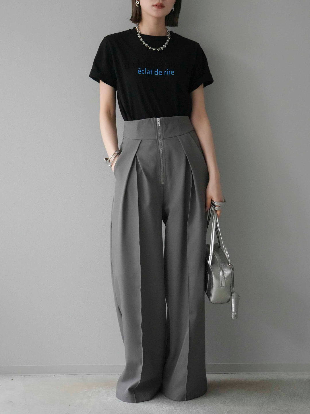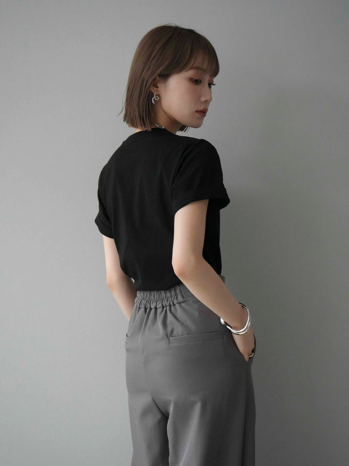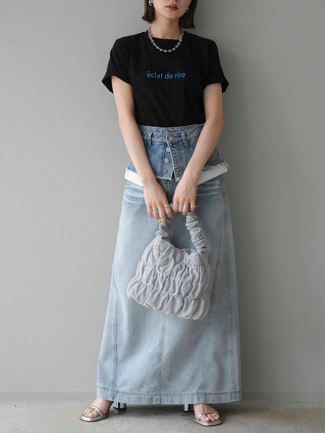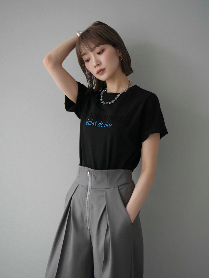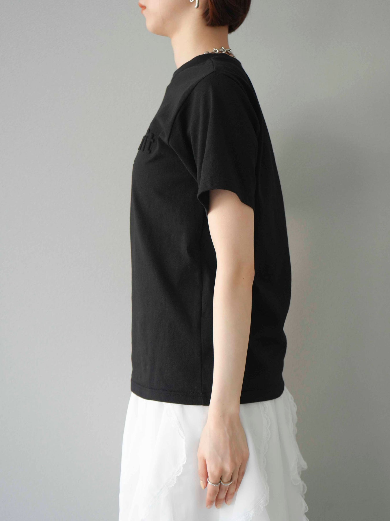 立体感のあるエンボスロゴが目を引く、トレンドライクなTシャツ。ほどよくゆとりのあるシルエットで、リラックス感がありながらも洗練された印象に。フロントのフランス語ロゴは、カジュアルながらも品のあるアクセント。デニムからスカートまで幅広く合わせやすく、デイリーコーデに活躍する一枚です。 ※ボトムス、キャミソール(インナー)以外の商品は一律でインナーは付属していません