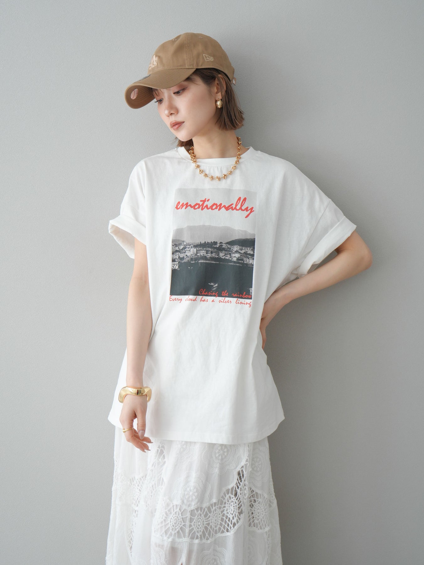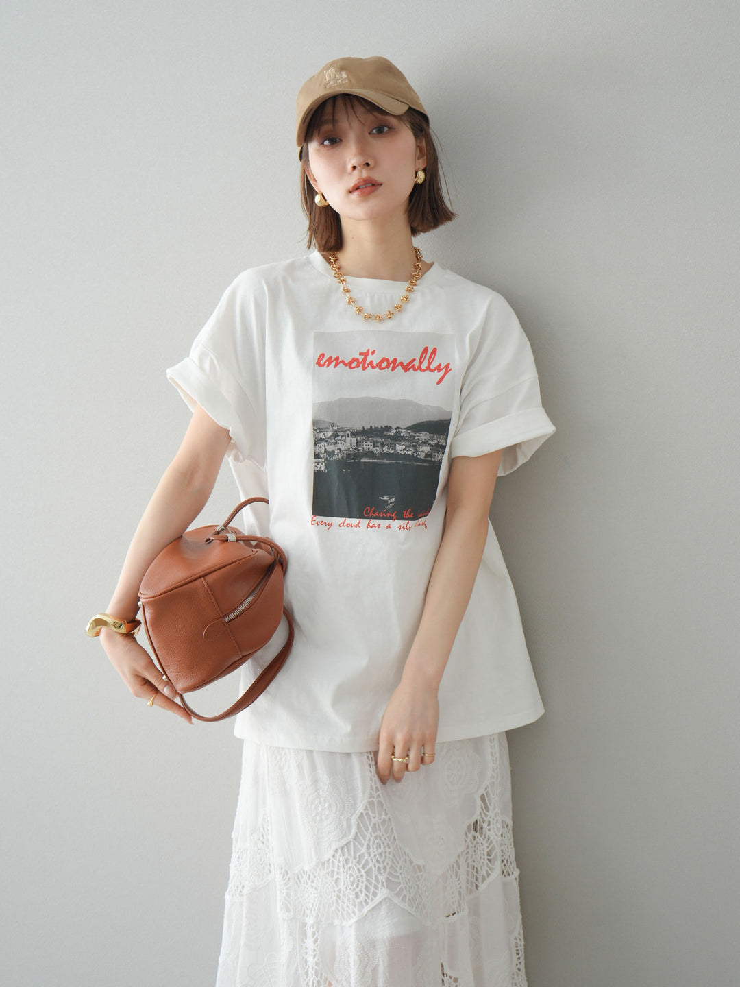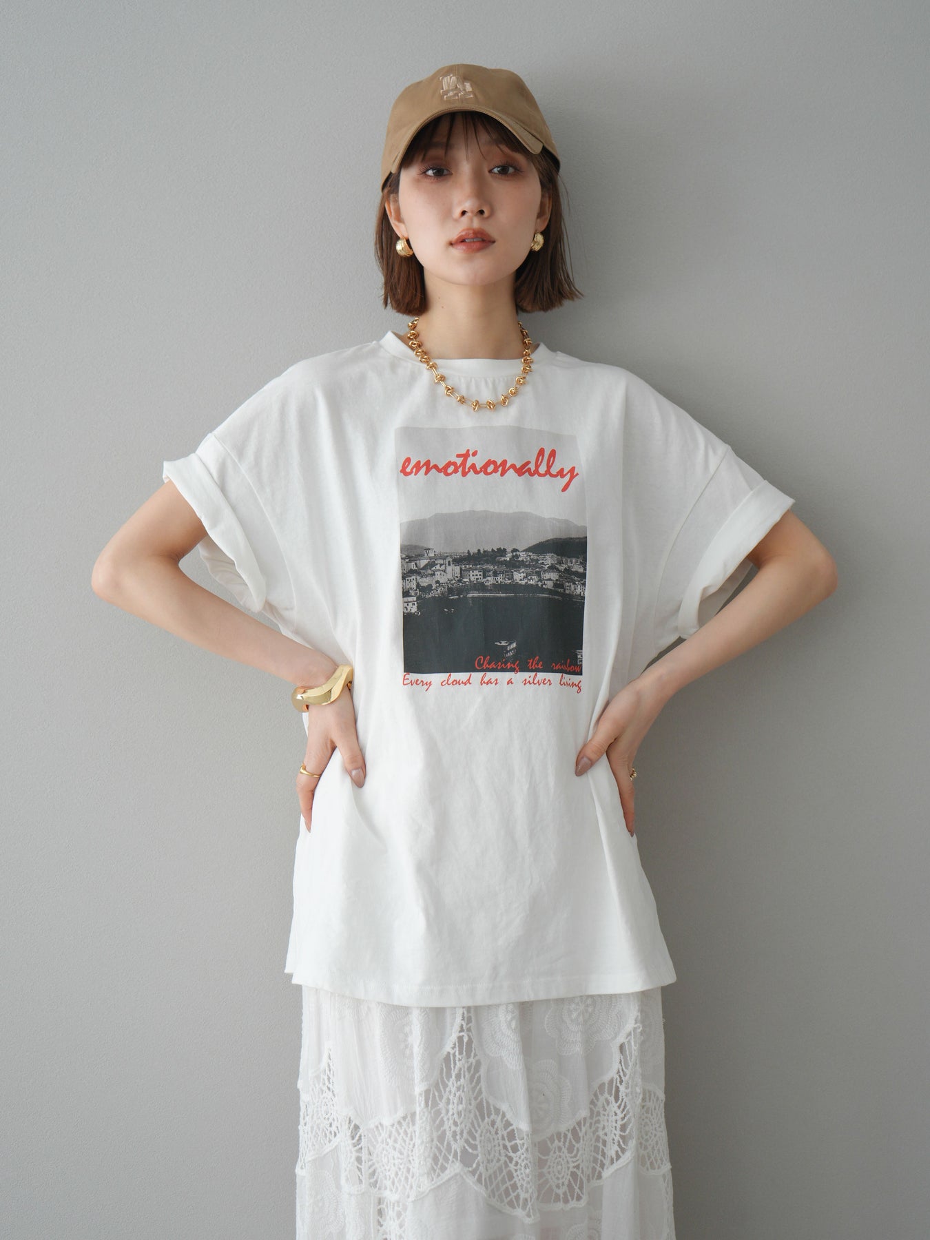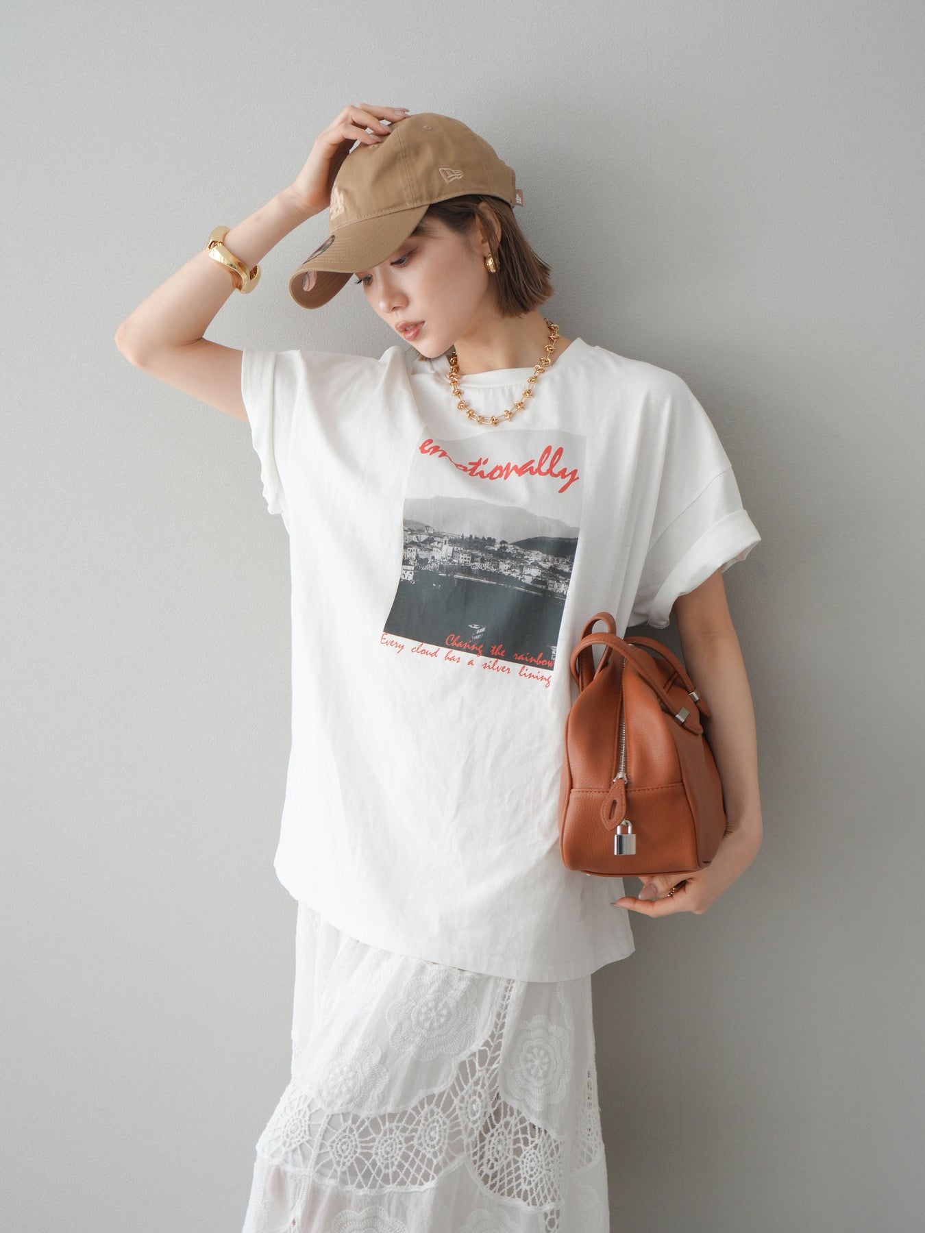 インパクトのあるフォトプリントが目を惹く、トレンドライクなビッグTシャツ。ゆったりとしたシルエットで、抜け感のあるスタイリングが叶います。程よい丈感はタックインもアウトもバランス良く決まり、幅広いボトムと相性抜群。1枚でこなれた雰囲気を演出できるアイテムです。 ※ボトムス、キャミソール(インナー)以外の商品は一律でインナーは付属していません。