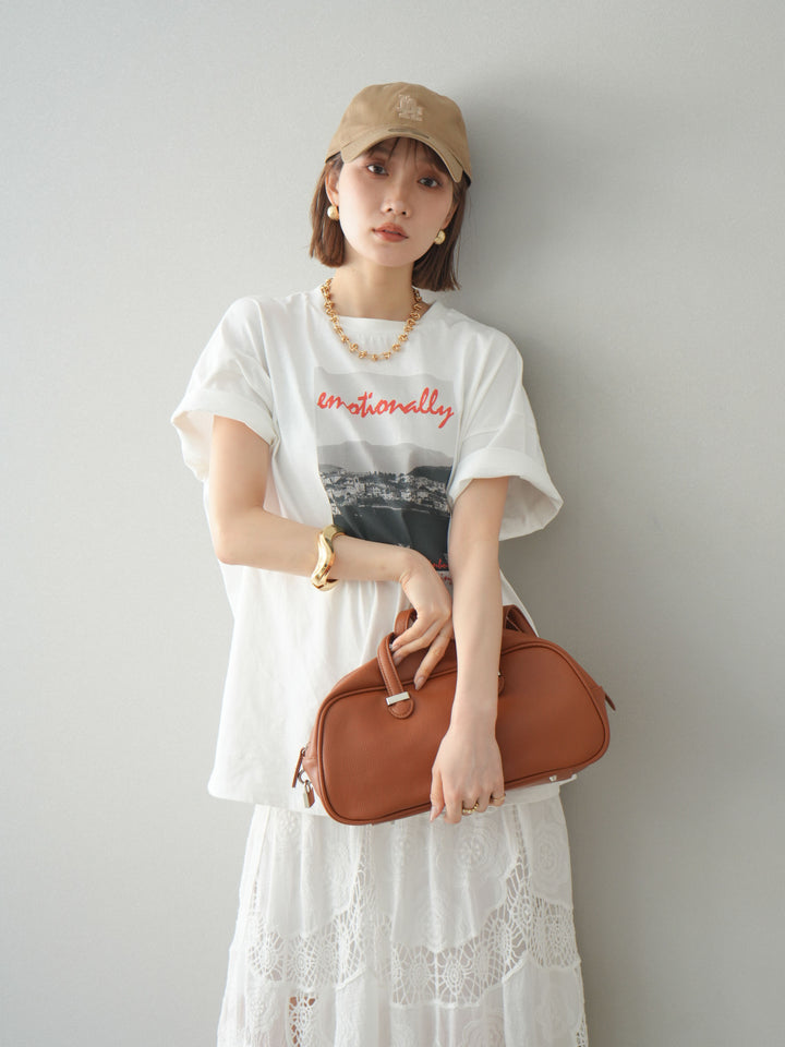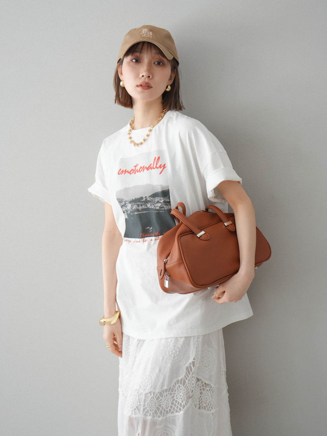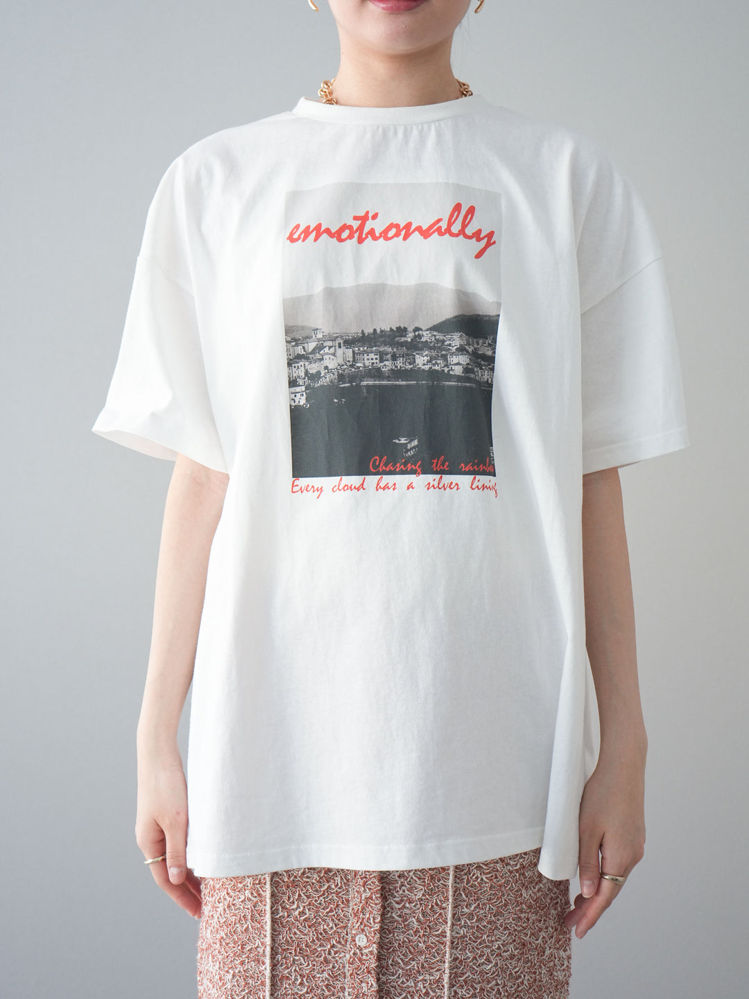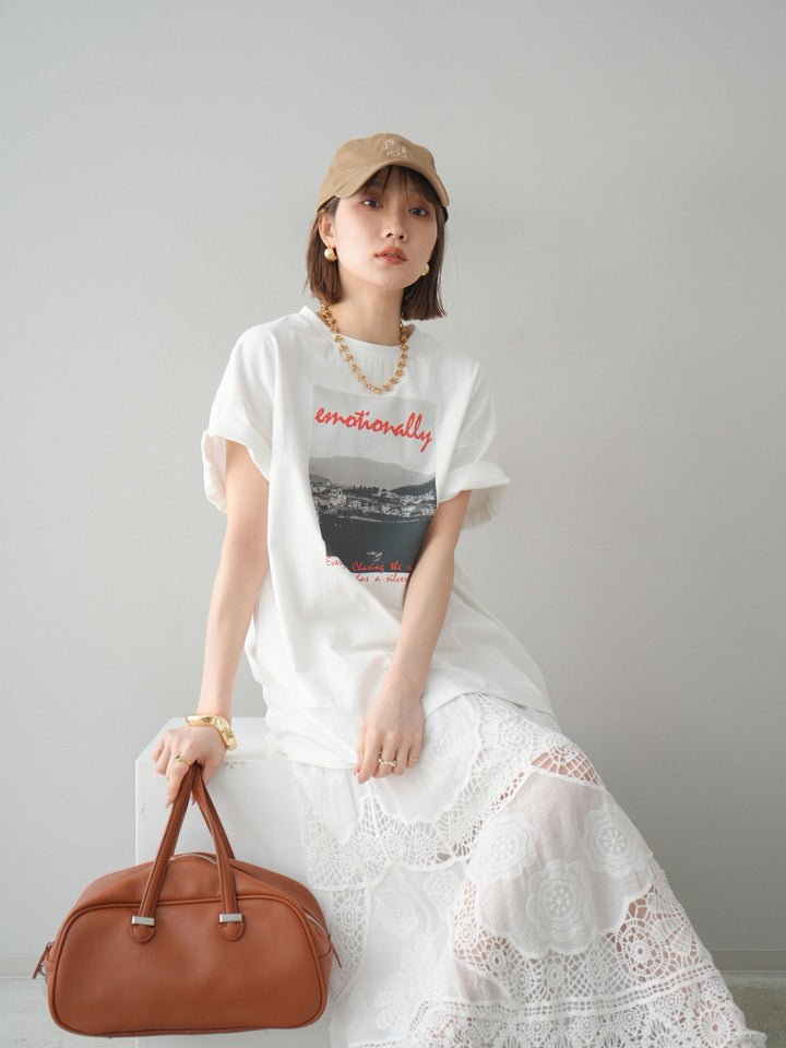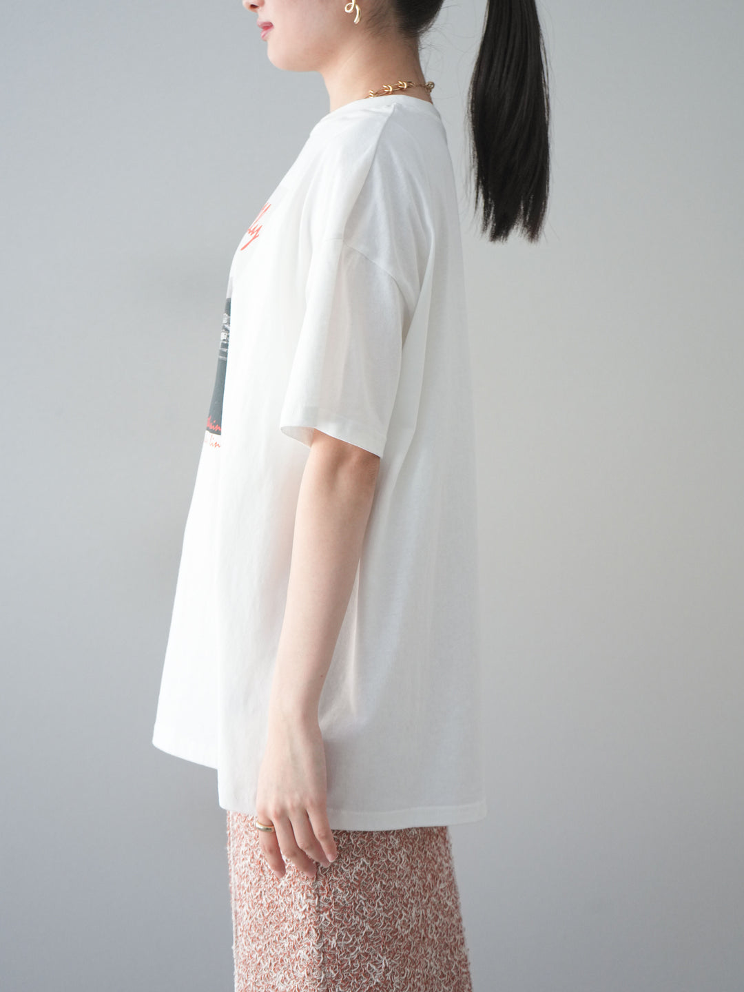 インパクトのあるフォトプリントが目を惹く、トレンドライクなビッグTシャツ。ゆったりとしたシルエットで、抜け感のあるスタイリングが叶います。程よい丈感はタックインもアウトもバランス良く決まり、幅広いボトムと相性抜群。1枚でこなれた雰囲気を演出できるアイテムです。 ※ボトムス、キャミソール(インナー)以外の商品は一律でインナーは付属していません。