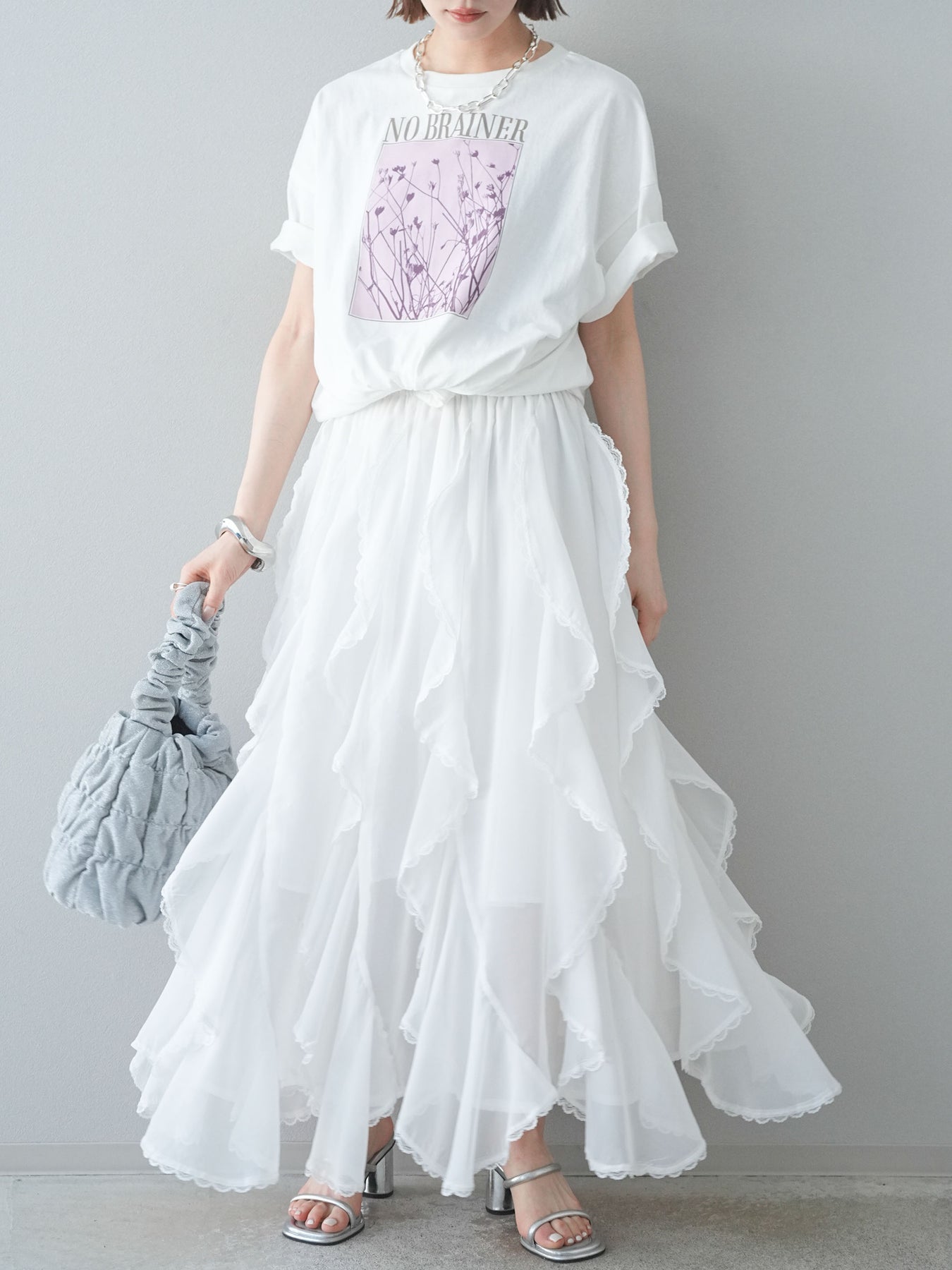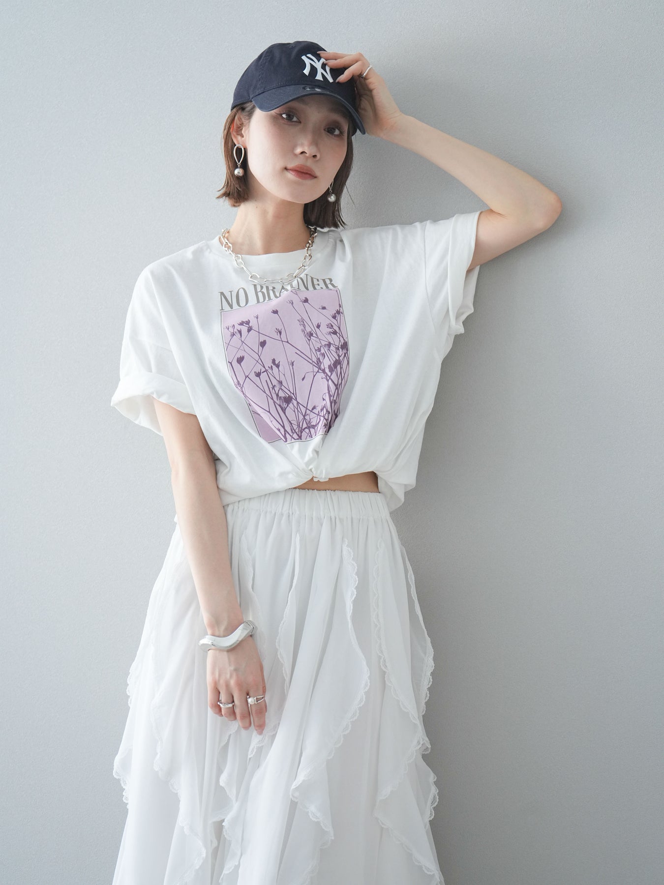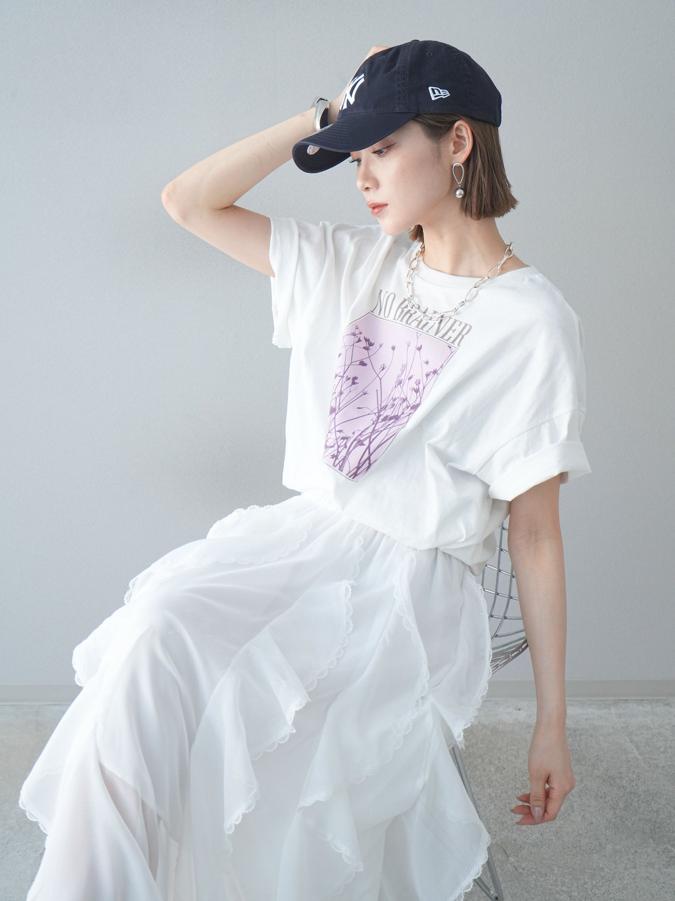 大胆なカラーグラフィックが目を惹くビッグTシャツ。ゆったりとしたシルエットで、ラフに着こなせる1枚。カジュアルながらも印象的なデザインで、トレンド感あるスタイリングが完成。ボトムスを選ばず、パンツにもスカートにも好相性です。夏のデイリーコーデにぴったりなアイテム。 ※ボトムス、キャミソール(インナー)以外の商品は一律でインナーは付属していません。