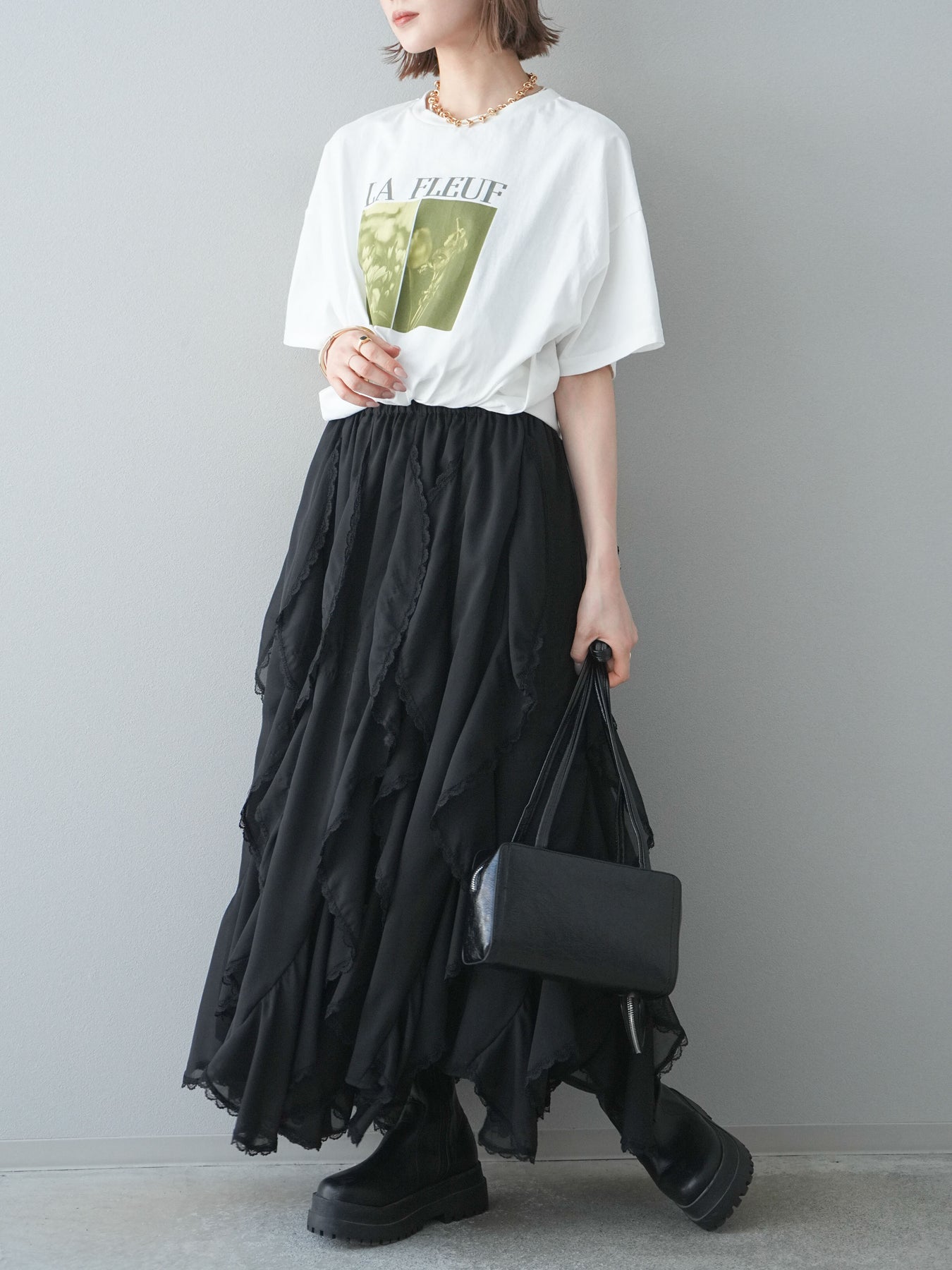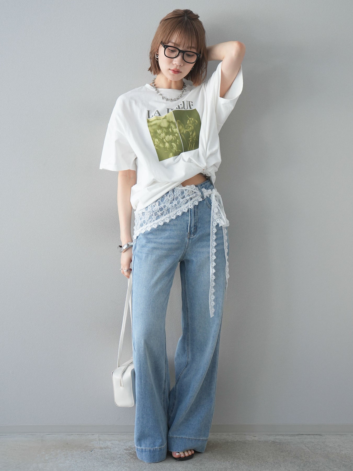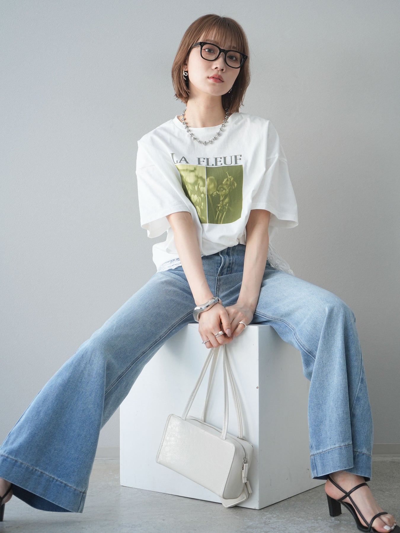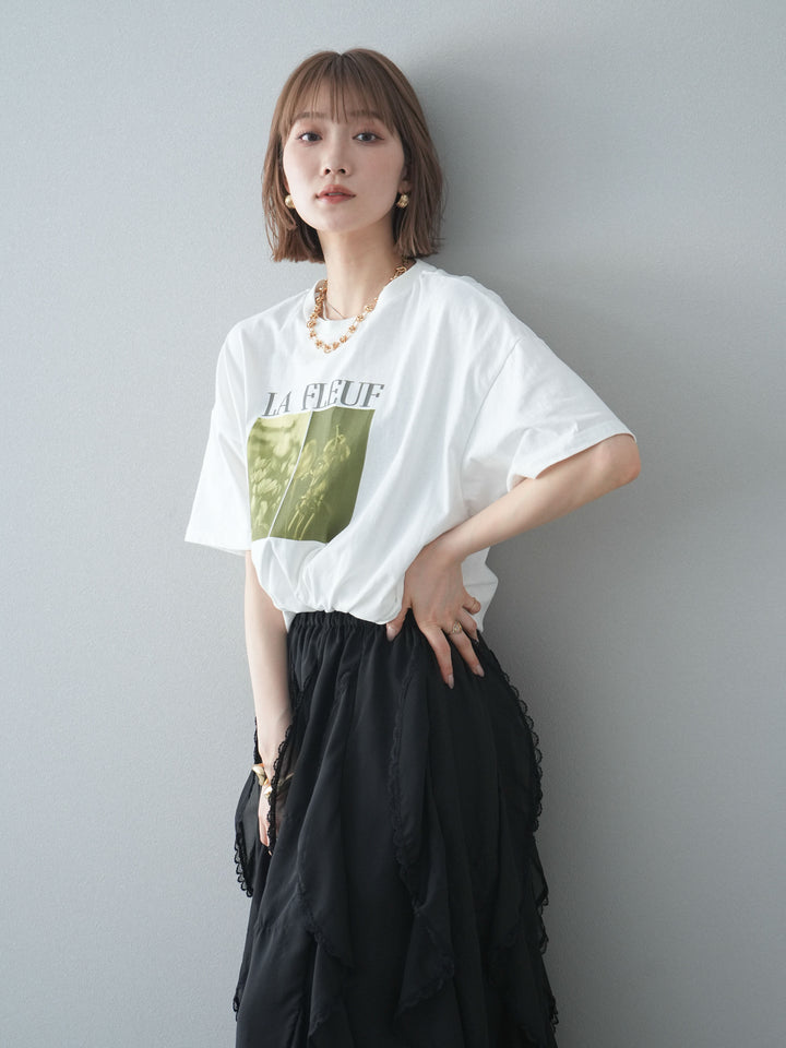 大胆なカラーグラフィックが目を惹くビッグTシャツ。ゆったりとしたシルエットで、ラフに着こなせる1枚。カジュアルながらも印象的なデザインで、トレンド感あるスタイリングが完成。ボトムスを選ばず、パンツにもスカートにも好相性です。夏のデイリーコーデにぴったりなアイテム。 ※ボトムス、キャミソール(インナー)以外の商品は一律でインナーは付属していません。