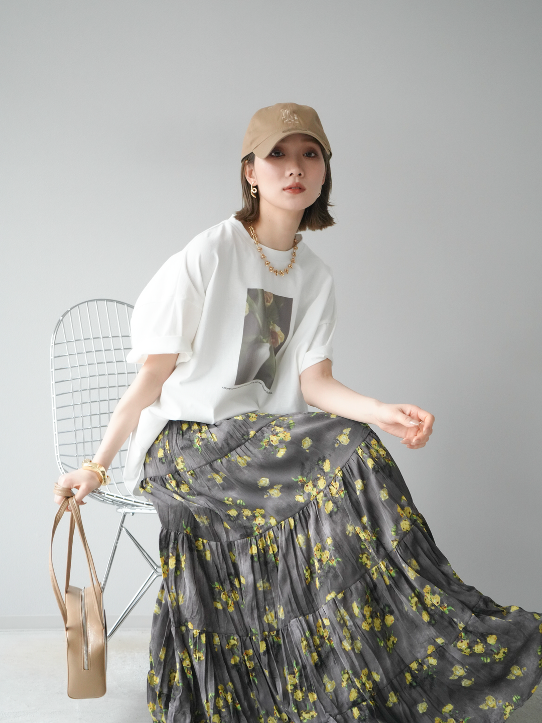 [予約]フラワーフォトビッグTシャツ/オフ3