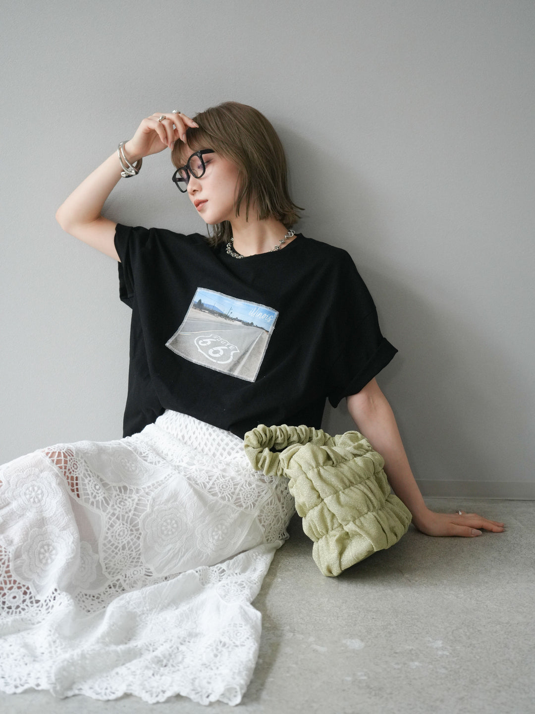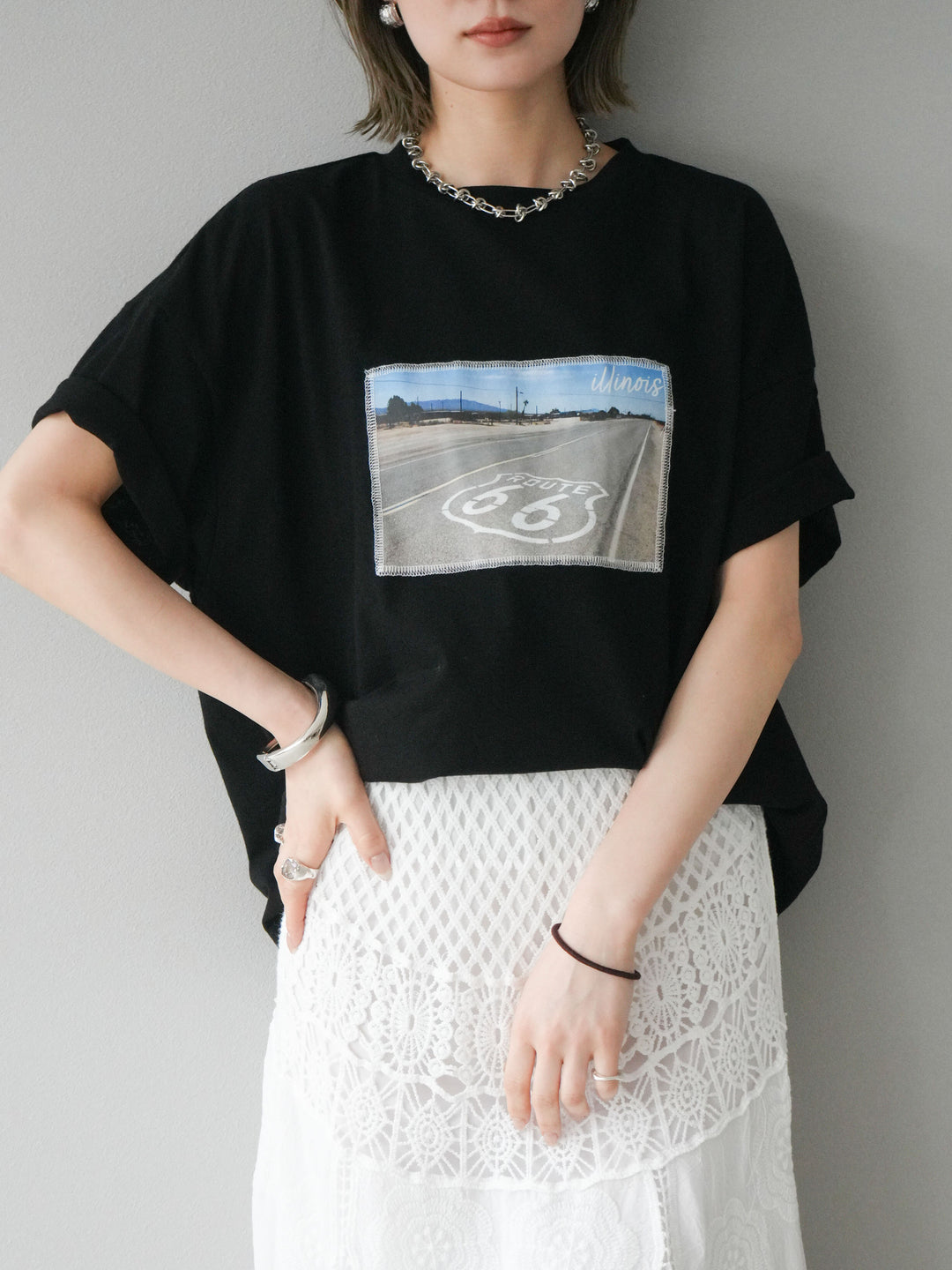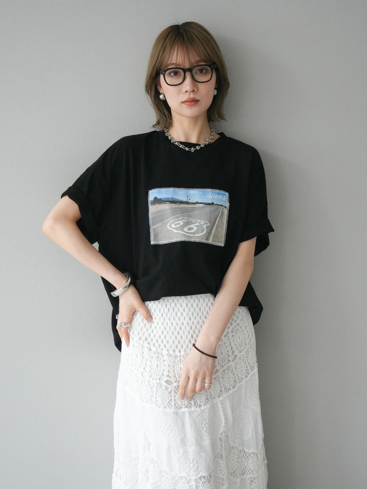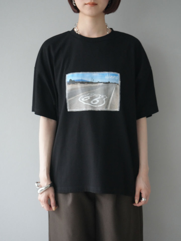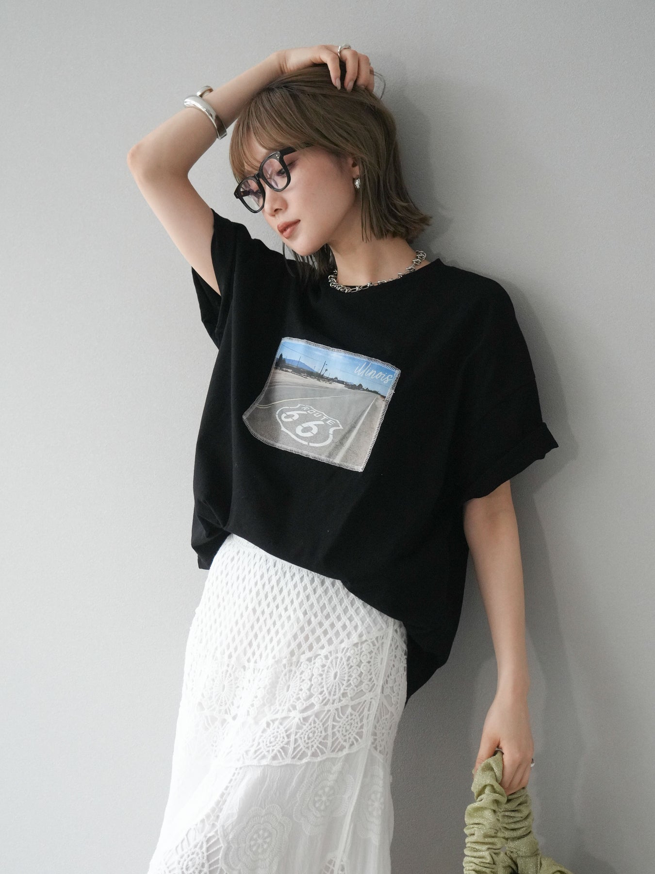 [予約]パッチワークプリントオーバーTシャツ/ブラック