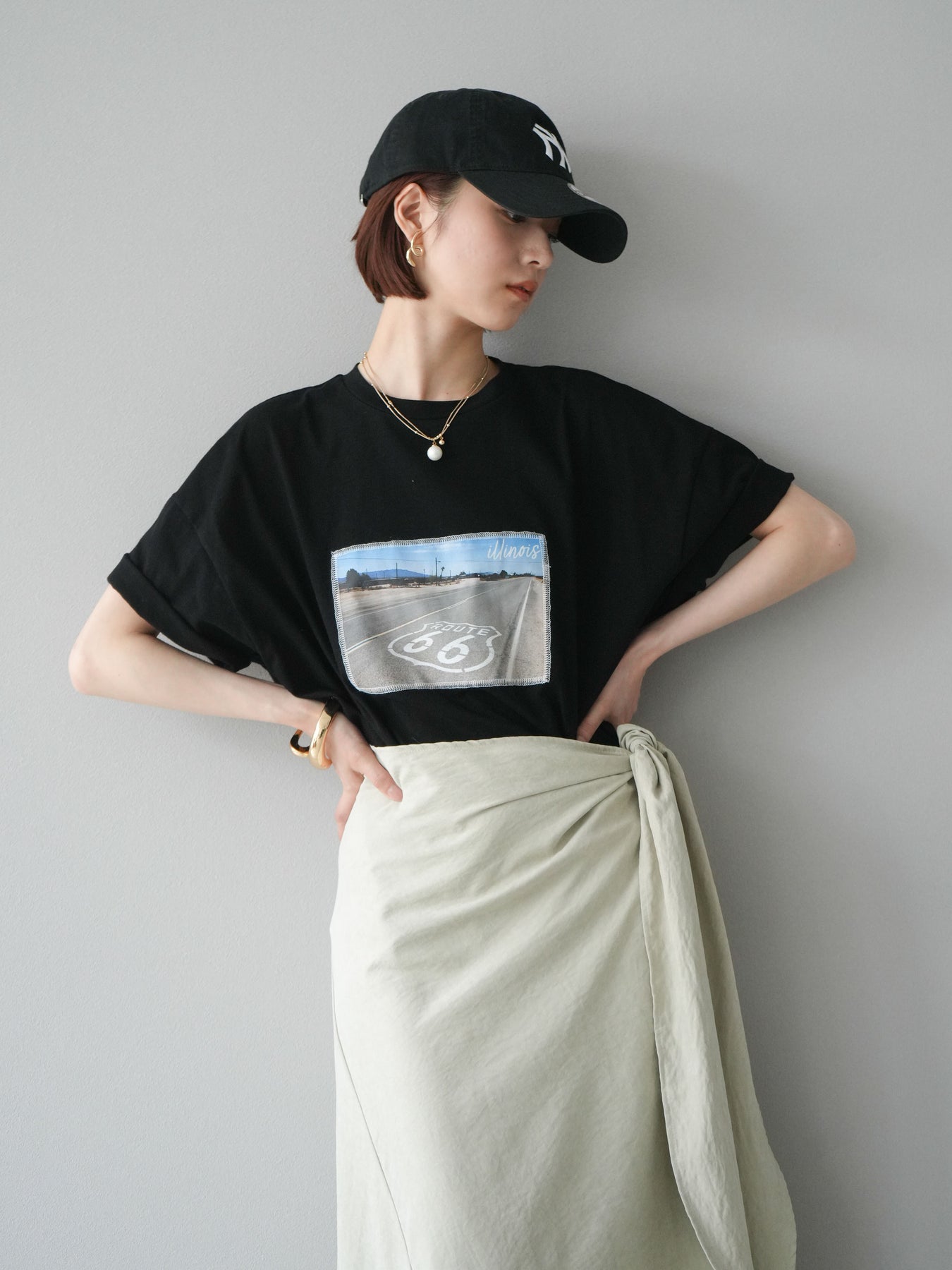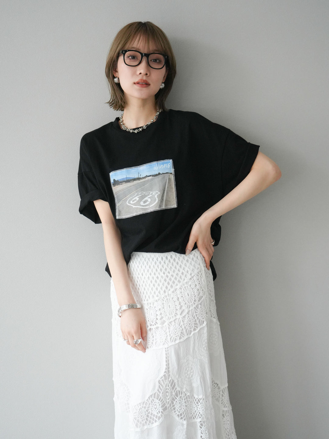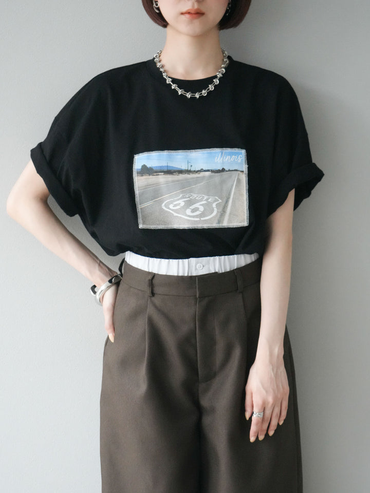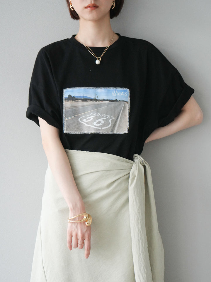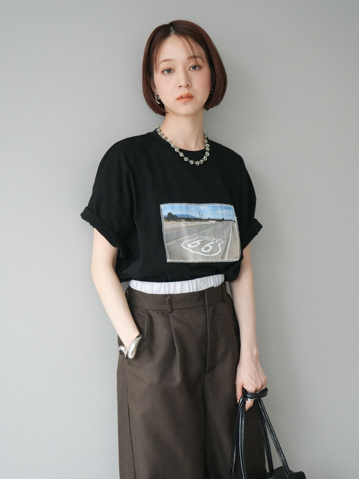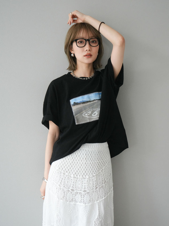 [予約]パッチワークプリントオーバーTシャツ/ブラック