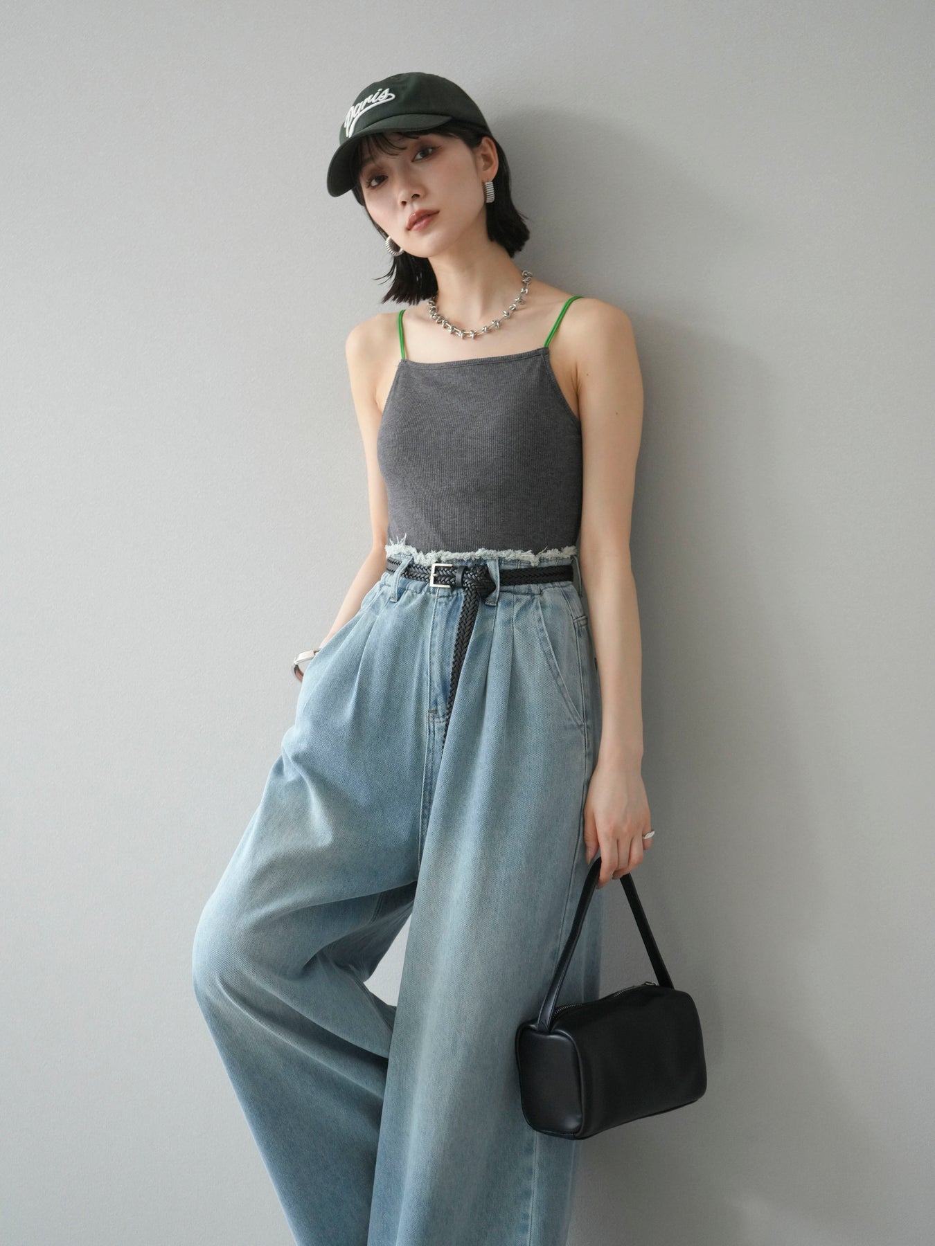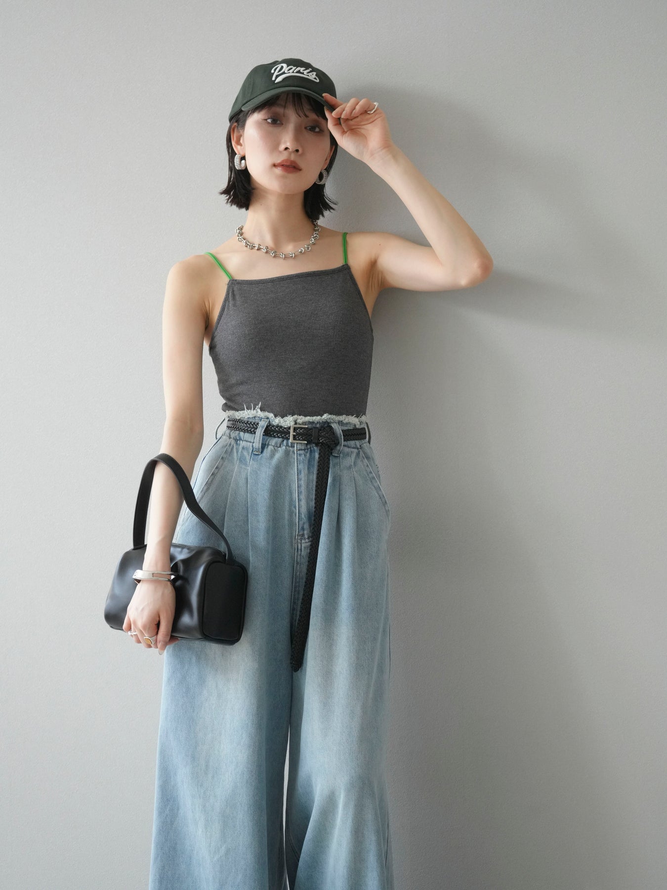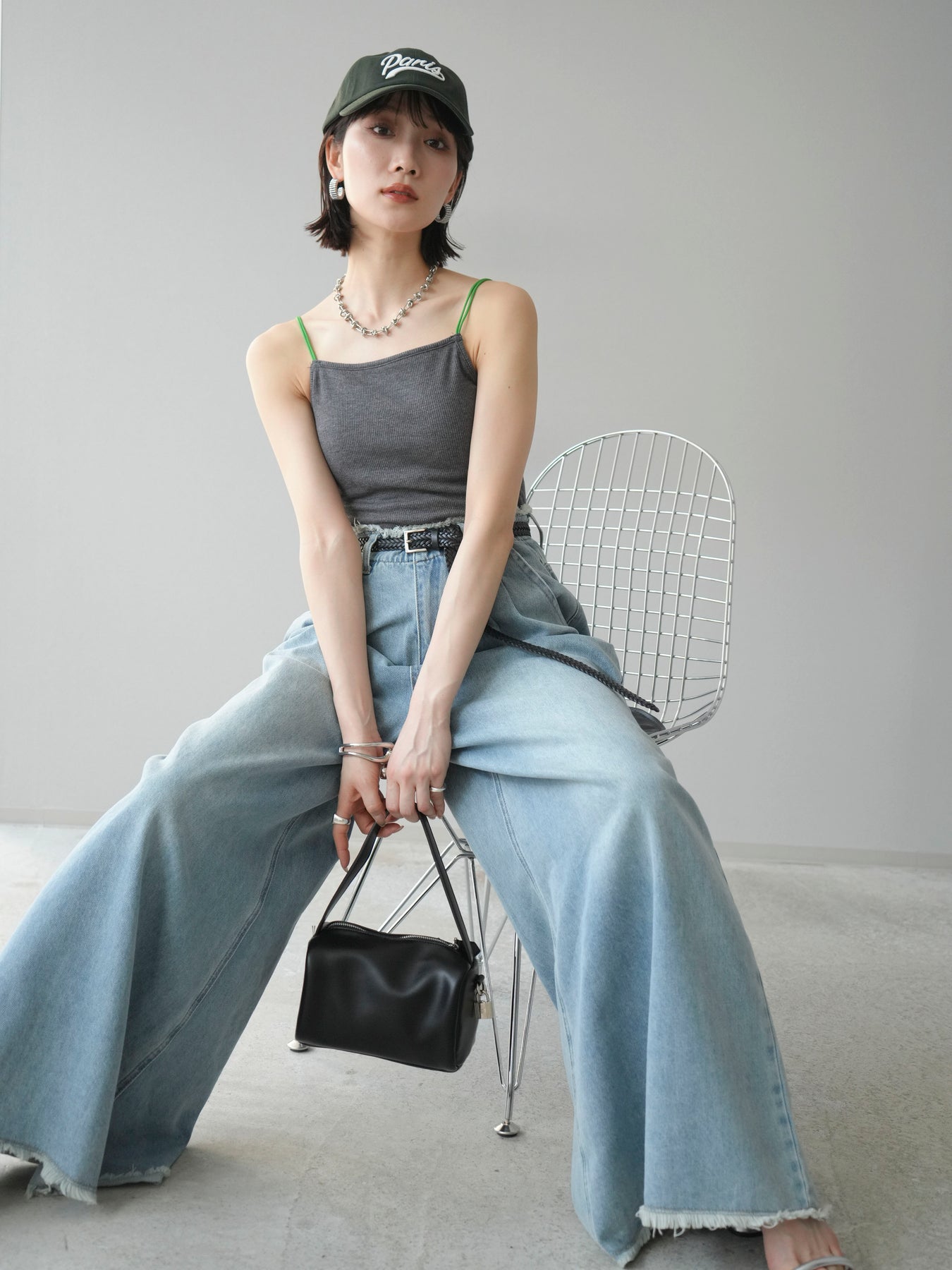 カップ付きで一枚でも安心して着られる、機能性とデザイン性を兼ね備えたキャミソール。細めのバイカラーストラップがアクセントになり、ヘルシーな肌見せを演出。伸縮性のあるリブ素材で快適な着心地を実現。インナーとしてもメイントップスとしても活躍する万能アイテムです。 ※ボトムス、キャミソール(インナー)以外の商品は一律でインナーは付属していません