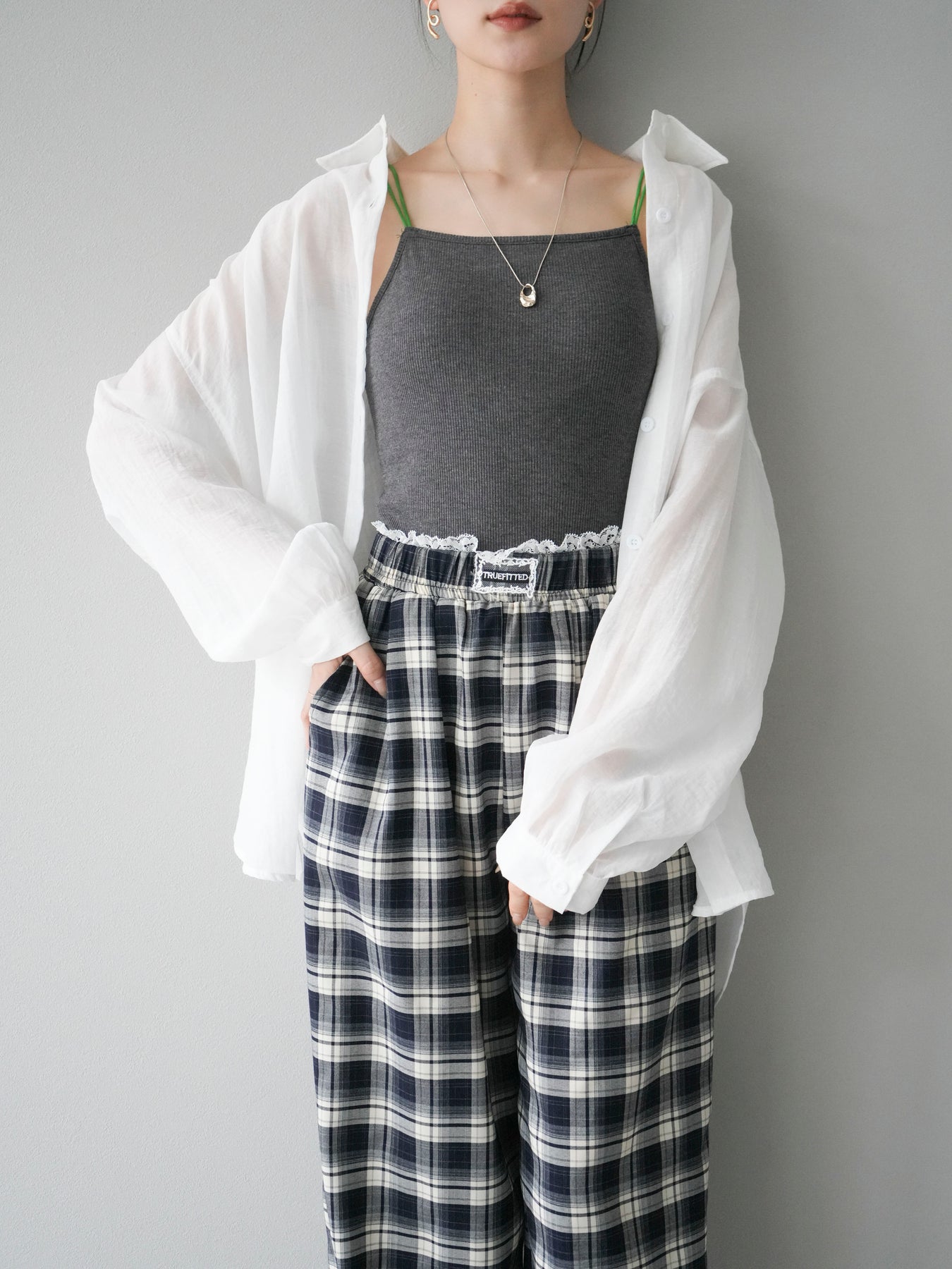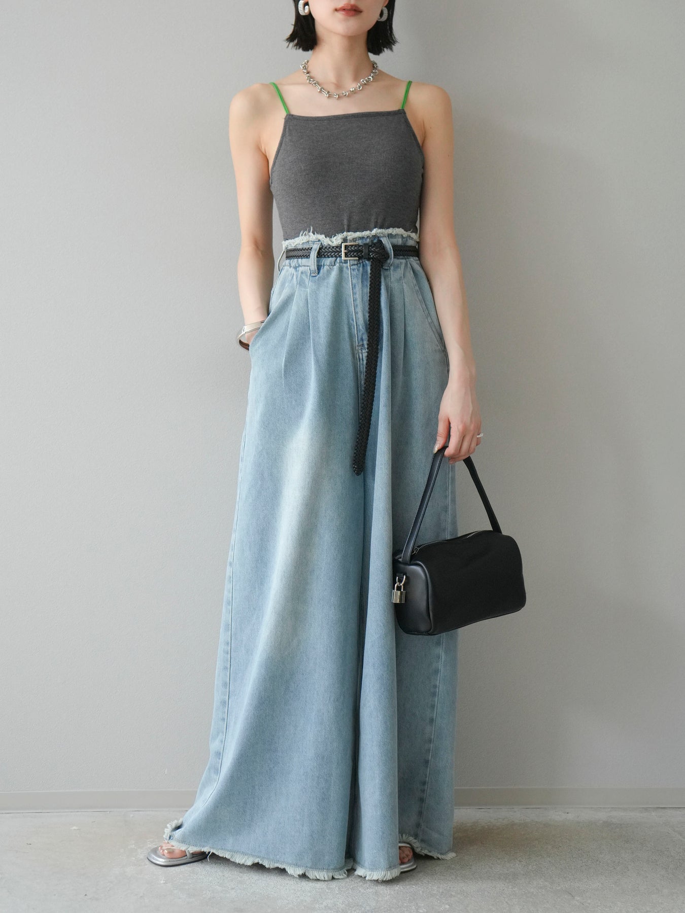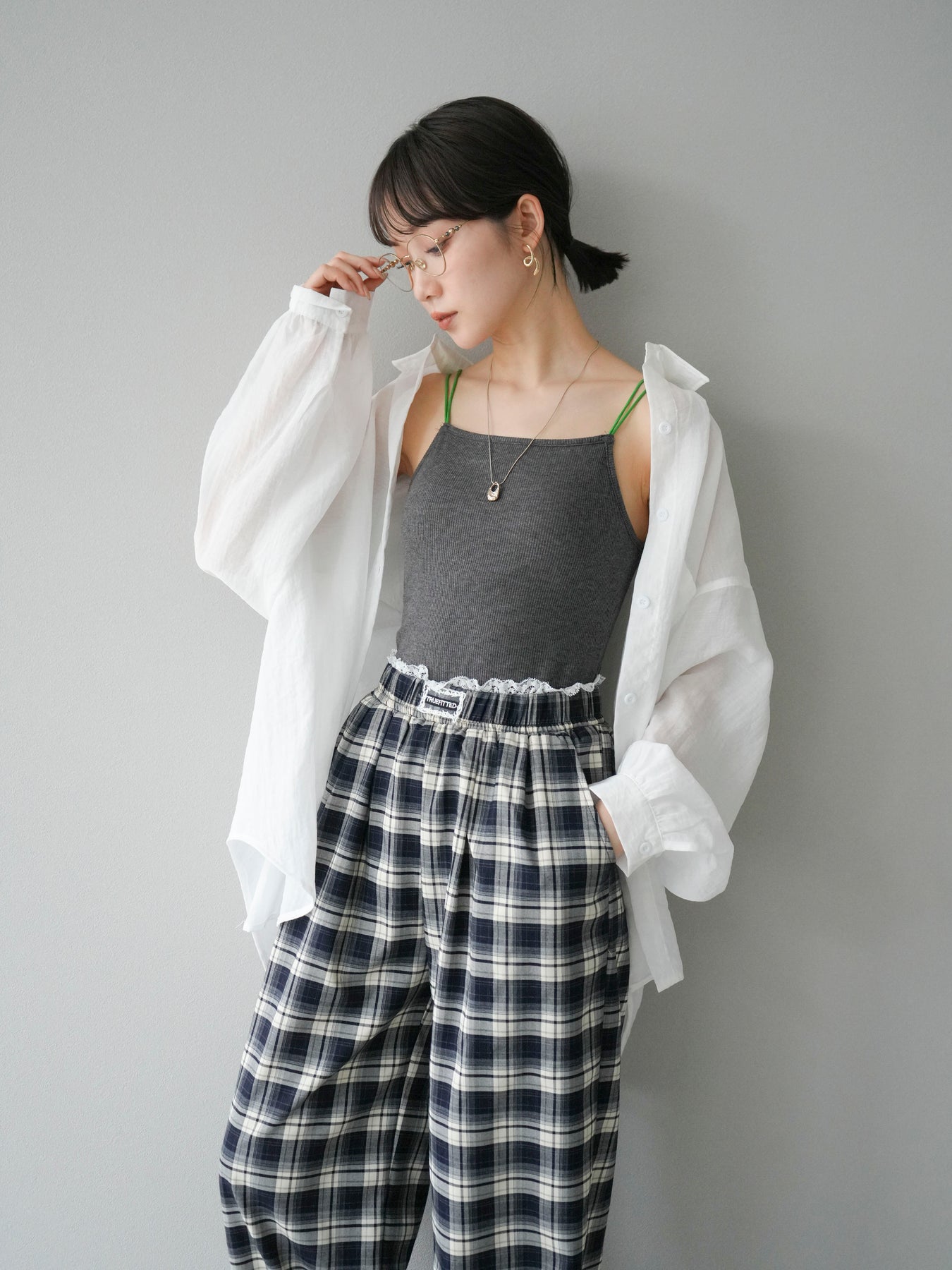 カップ付きで一枚でも安心して着られる、機能性とデザイン性を兼ね備えたキャミソール。細めのバイカラーストラップがアクセントになり、ヘルシーな肌見せを演出。伸縮性のあるリブ素材で快適な着心地を実現。インナーとしてもメイントップスとしても活躍する万能アイテムです。 ※ボトムス、キャミソール(インナー)以外の商品は一律でインナーは付属していません