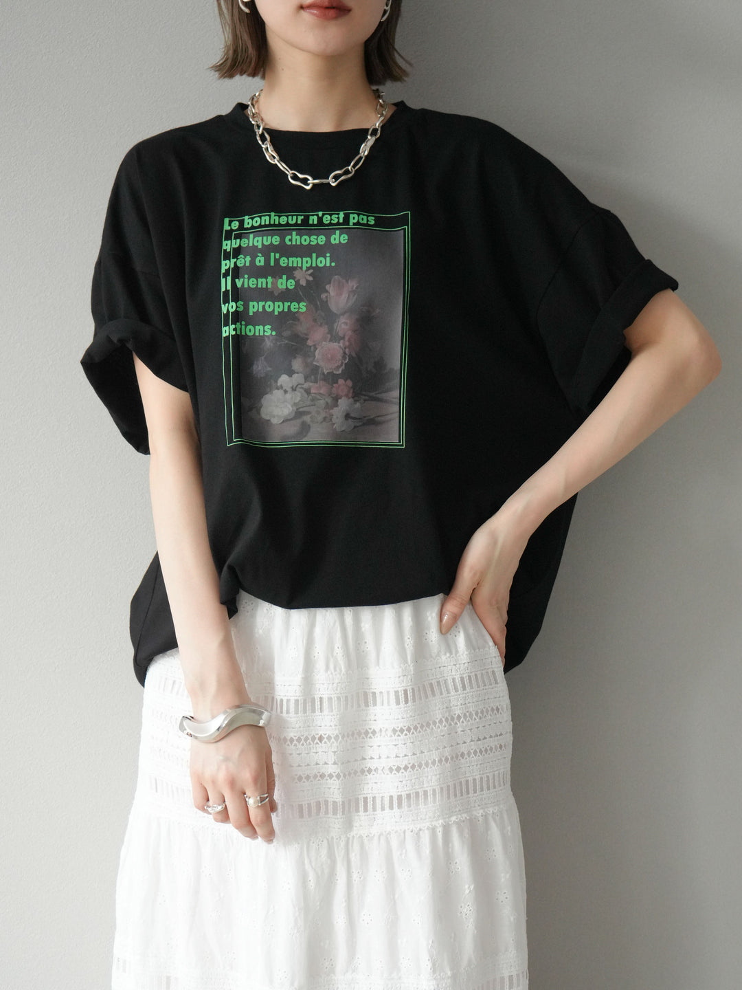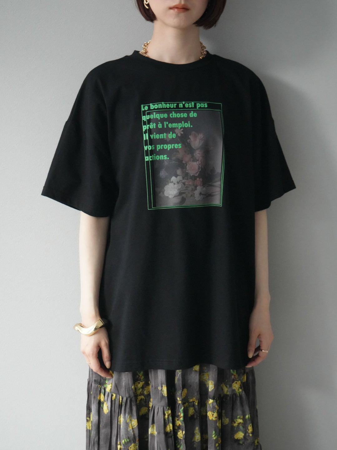 [予約]フラワーアート×ロゴプリントビッグTシャツ/ブラック