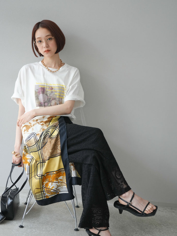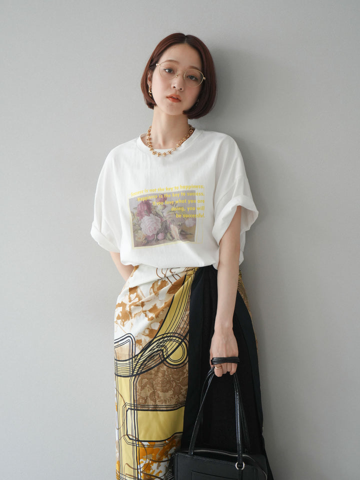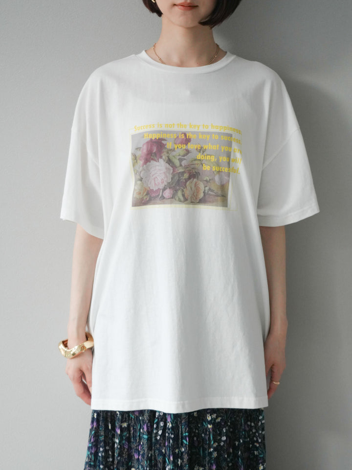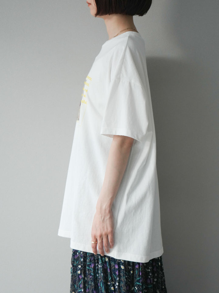 [予約]フラワーアート×ロゴプリントビッグTシャツ/オフ1
