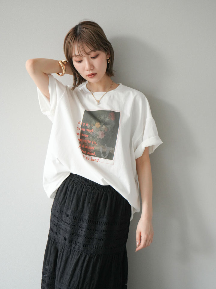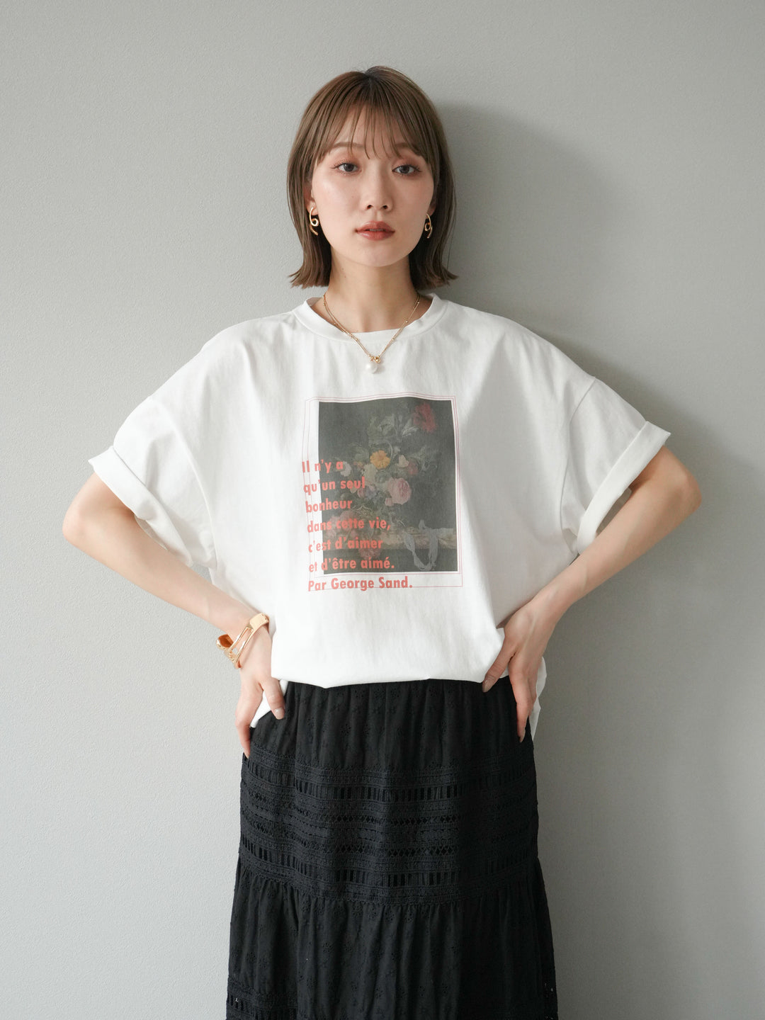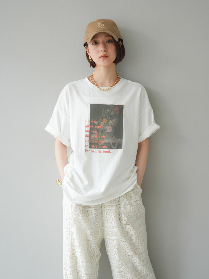 [予約]フラワーアート×ロゴプリントビッグTシャツ/オフ2