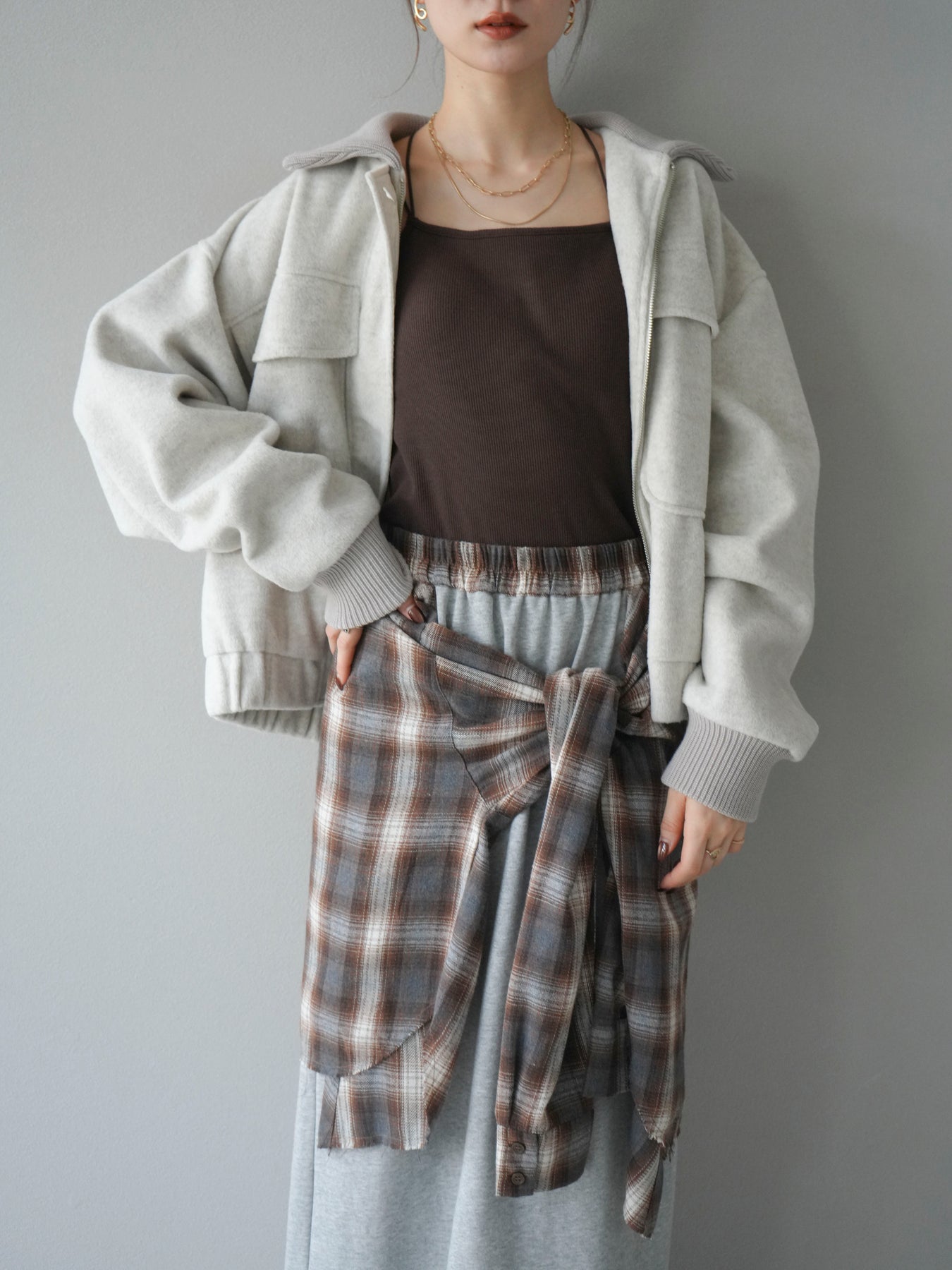 [予約]ウールタッチ襟リブステンカラーショートコート/oatmeal
