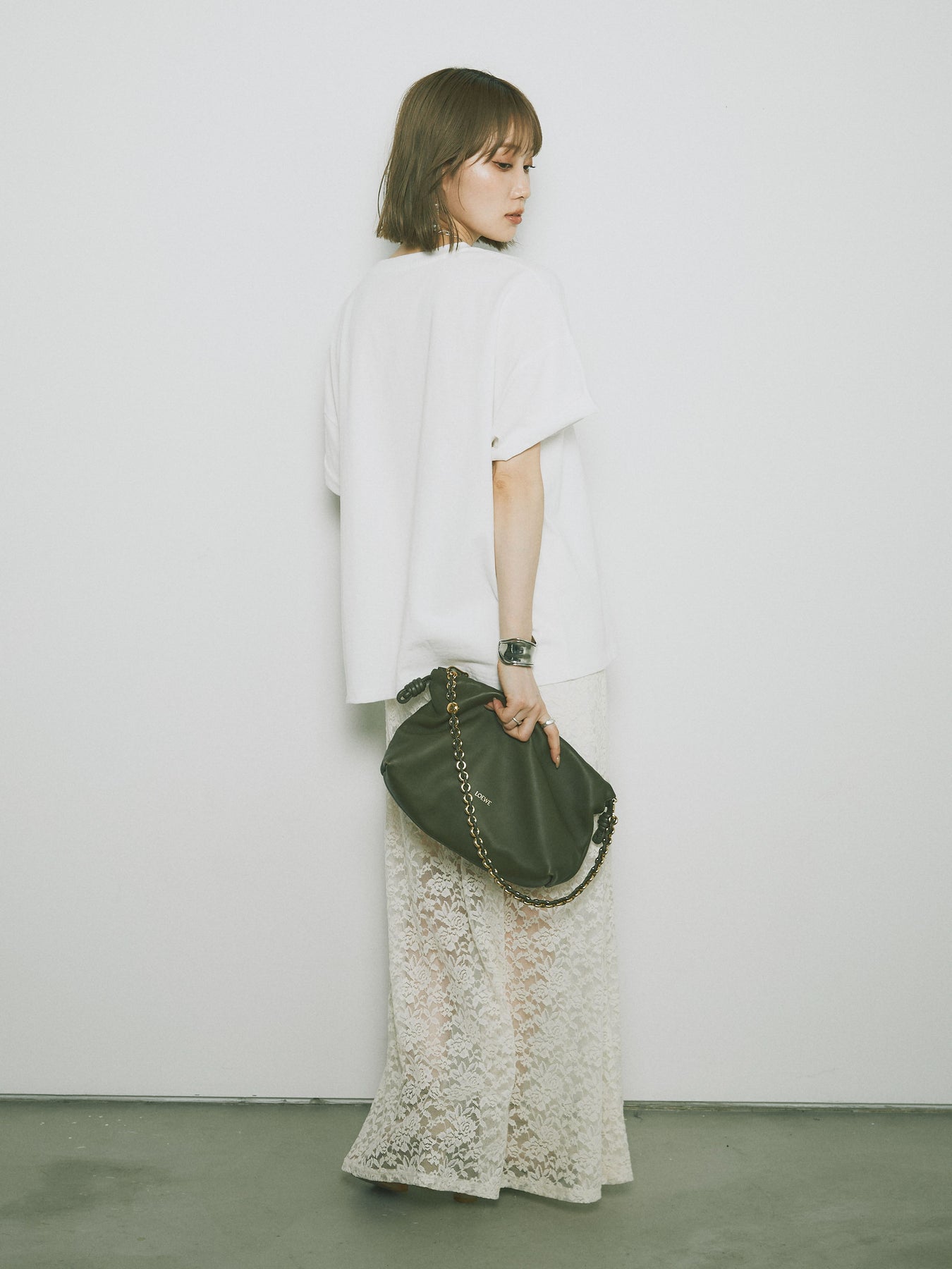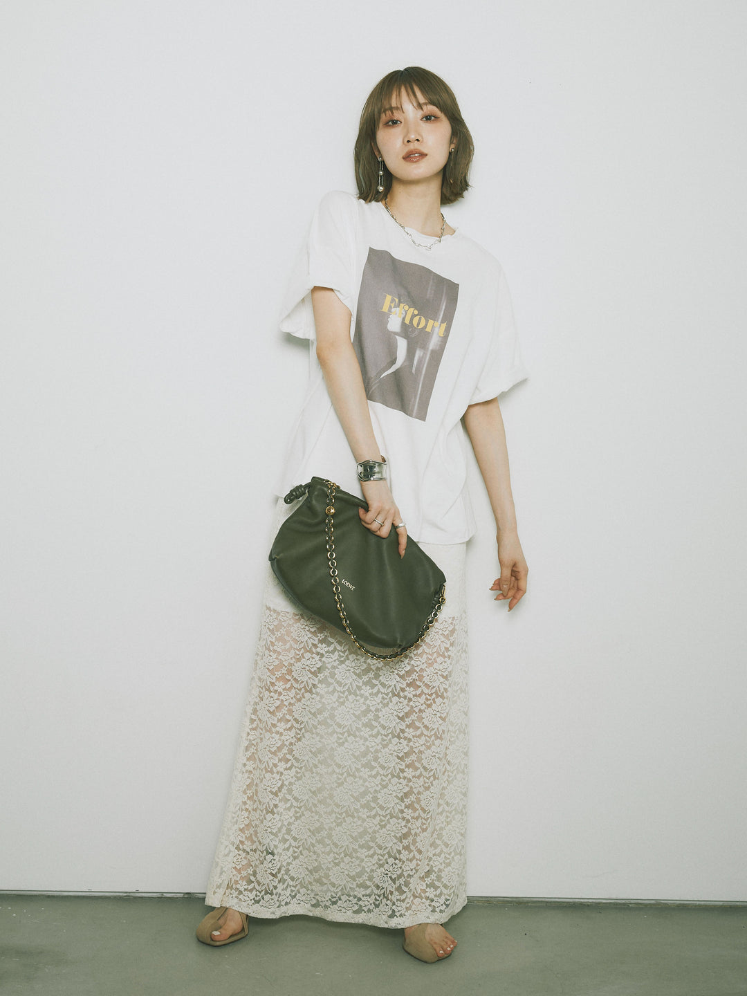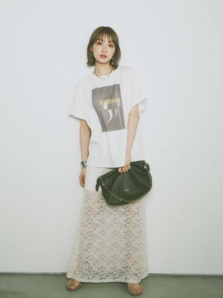 シンプルなホワイトカラーに、異なるロゴプリントが魅力的なアソートロゴプリントオーバーTシャツ。ゆったりとしたオーバーサイズシルエットで、リラックス感のある着心地を提供します。フロントのプリントは、シンプルでありながらアクセントとなり、コーディネートを引き立てます。カジュアルなデザインながらも、どこか洗練された印象を与える一枚です。 ※ボトムス、キャミソール(インナー)以外の商品は一律でインナーは付属していません。