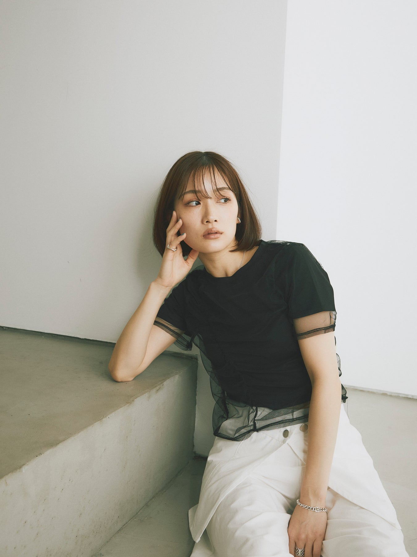 [予約]シャーリングチュールレイヤードTシャツに関連する商品を探す↓