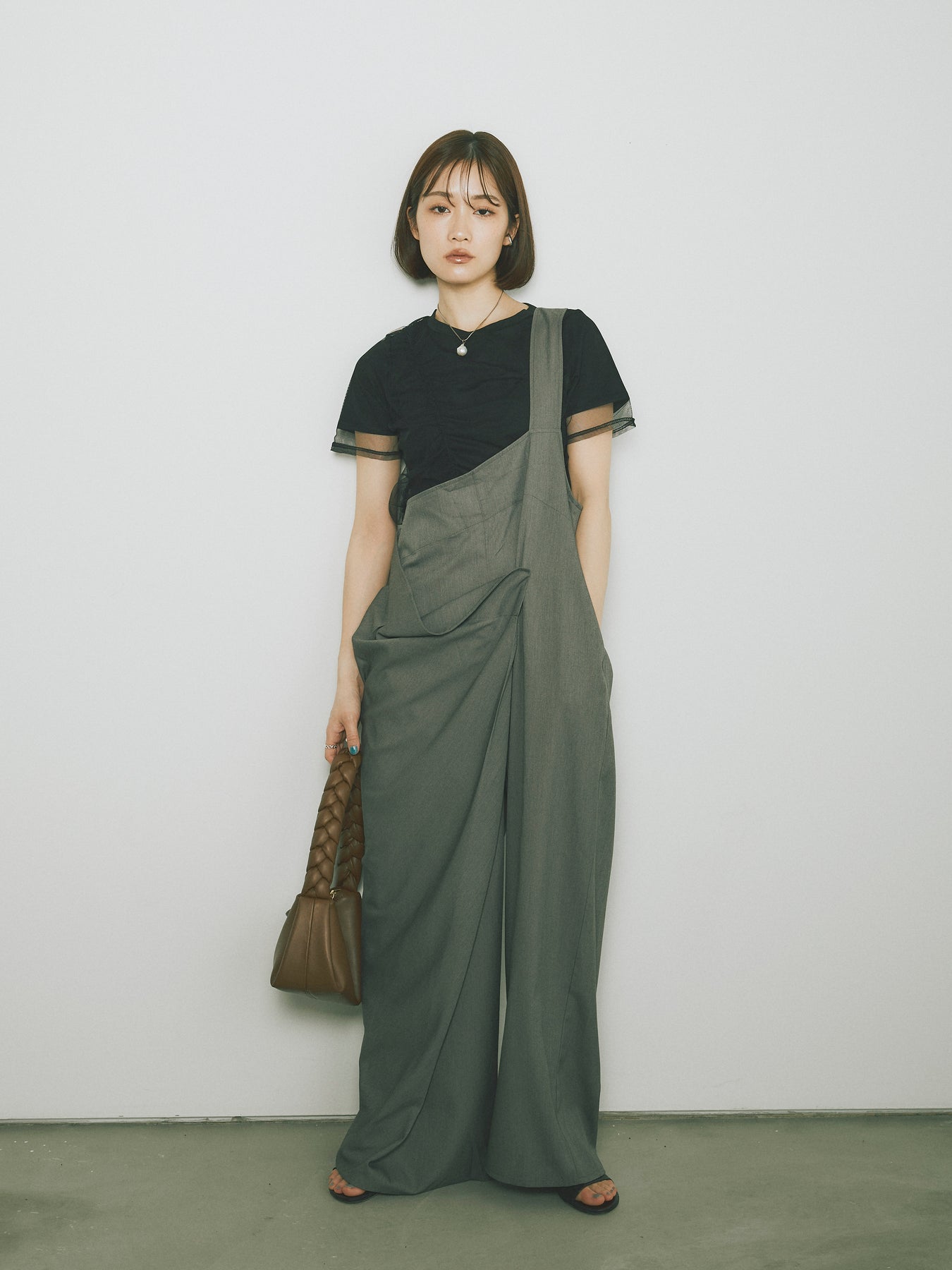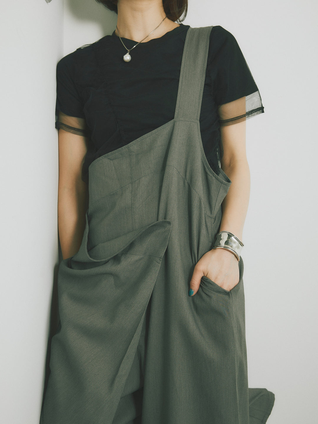 チュール素材を重ねたレイヤードデザインが目を惹くTシャツ。程よい透け感とシャーリングの立体感が、シンプルながらもトレンド感あるスタイルを演出します。ベースのTシャツはさらりとした肌触りで着心地も抜群。デニムやカーゴパンツ、スカートなど幅広いアイテムと好相性で、着こなしに抜け感をプラスしてくれる一枚です。 ※ボトムス、キャミソール(インナー)以外の商品は一律でインナーは付属していません