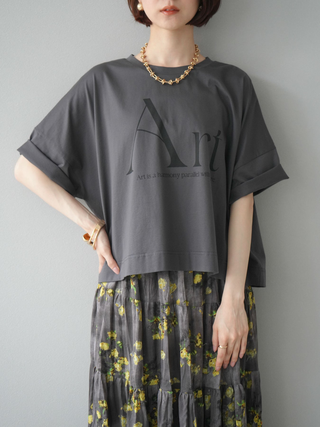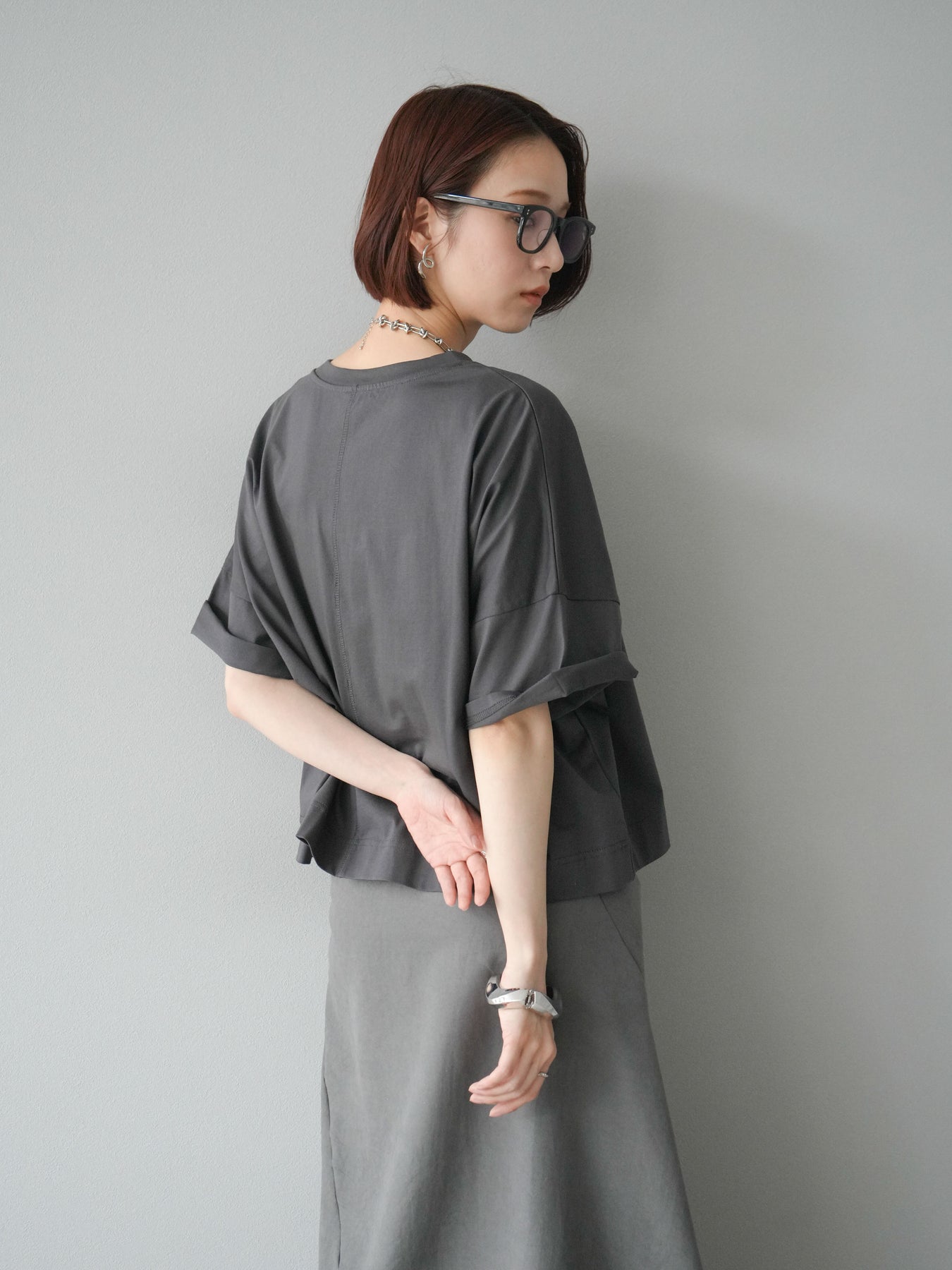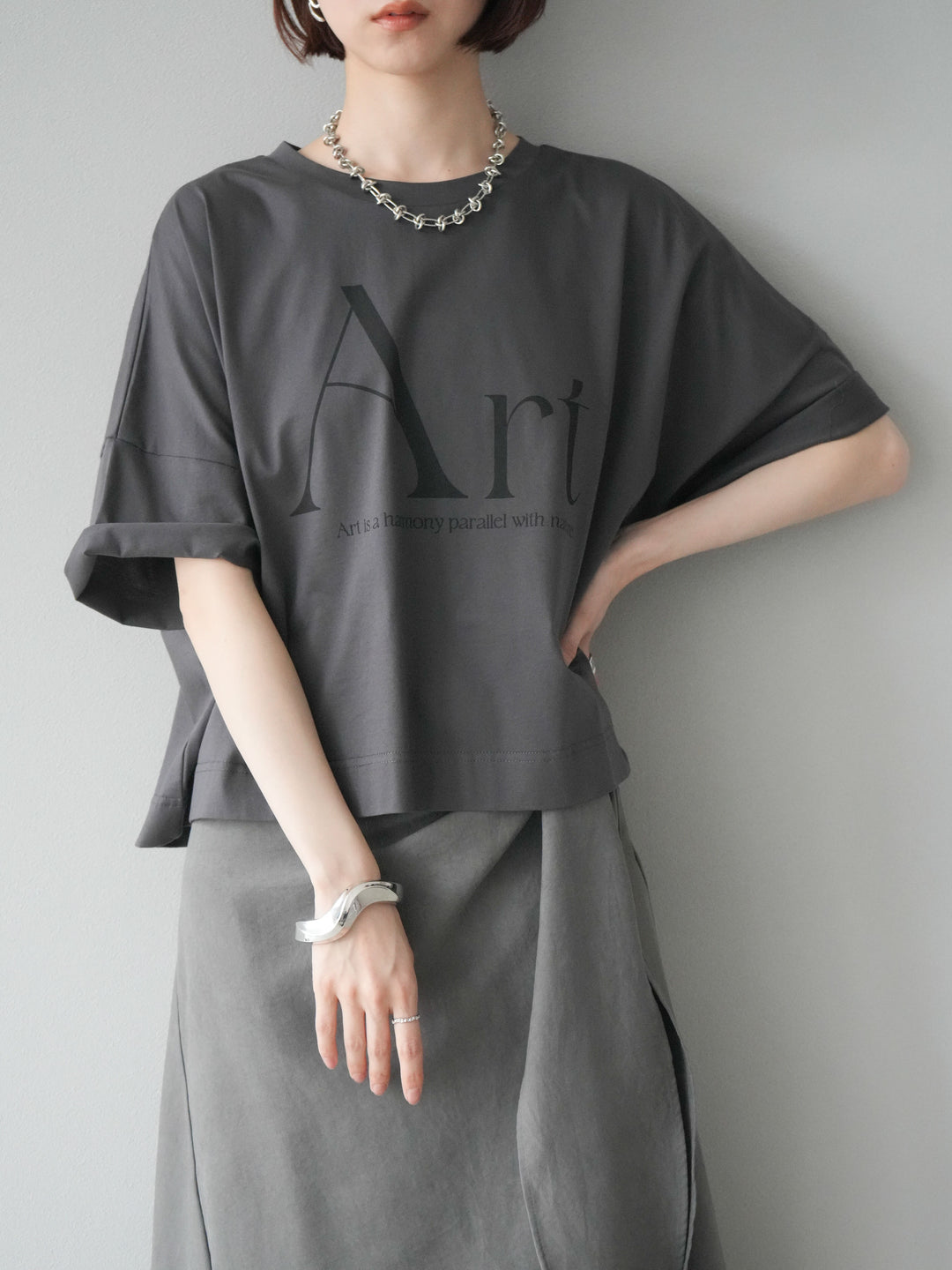 [予約]ドライタッチコットンワイドロゴTシャツ/チャコール