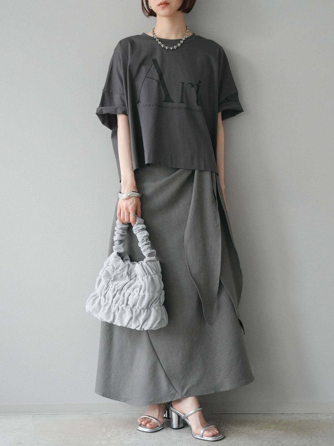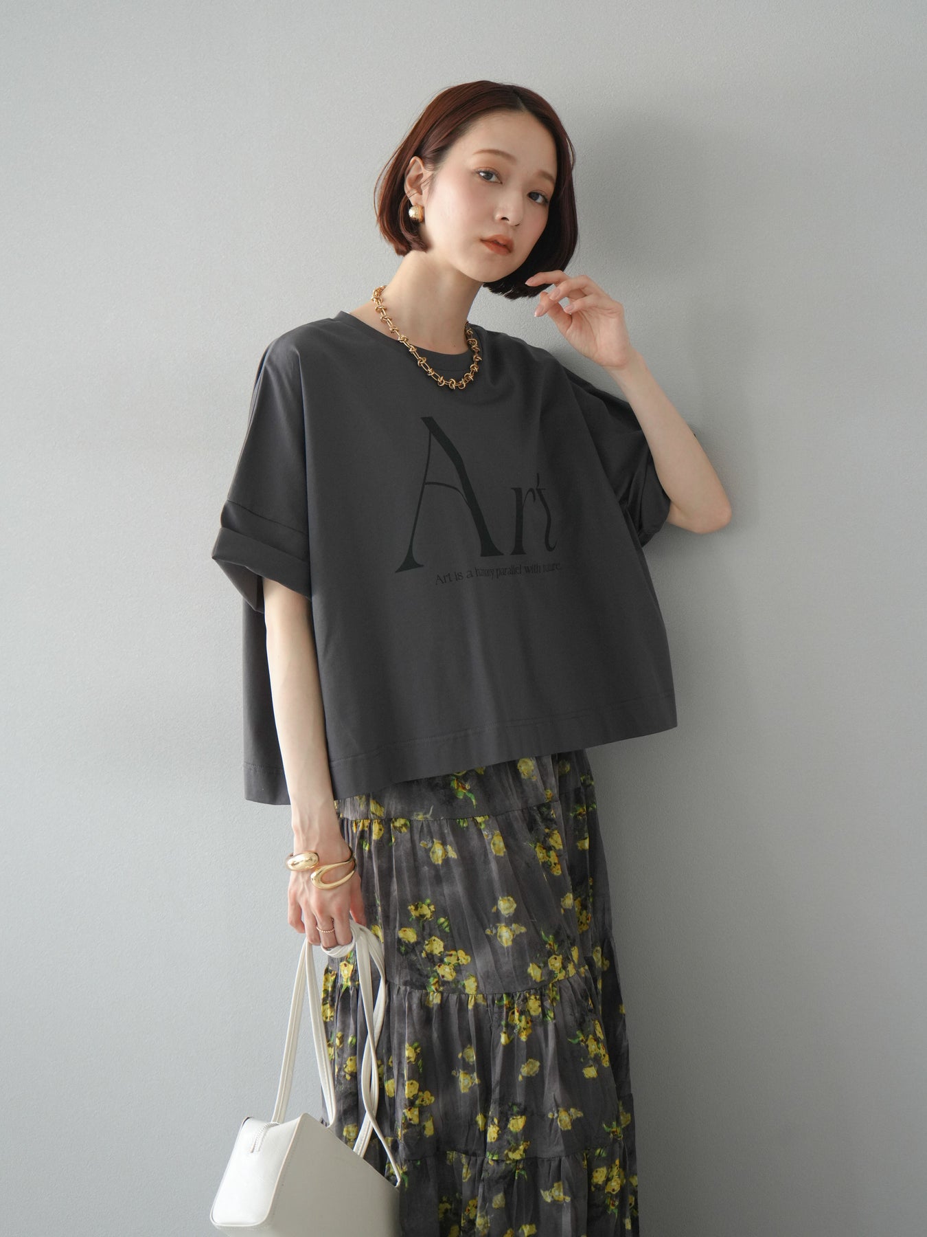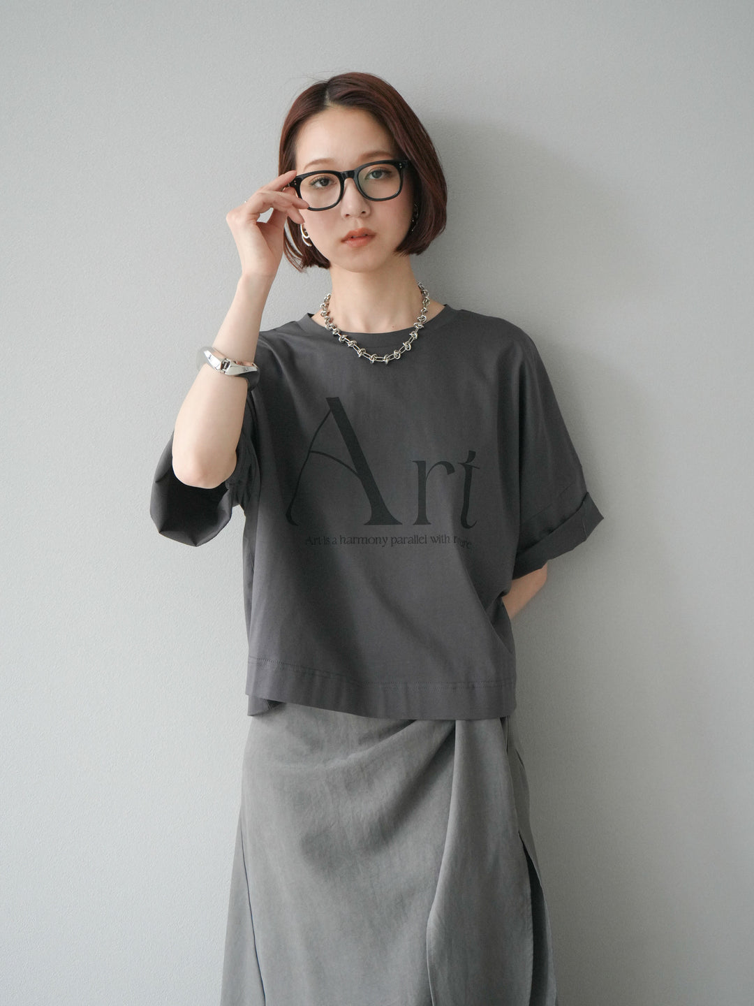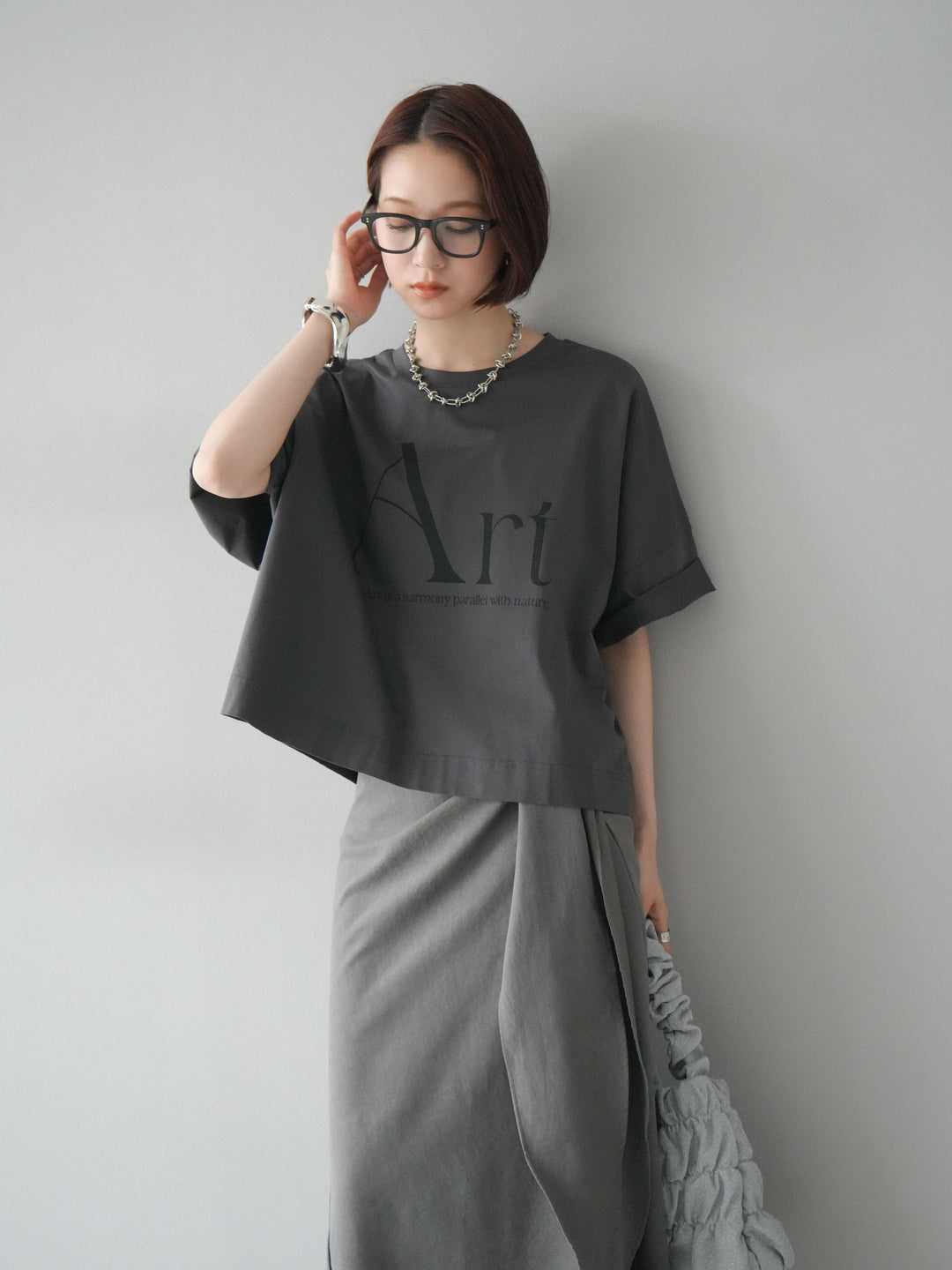 [予約]ドライタッチコットンワイドロゴTシャツ/チャコール