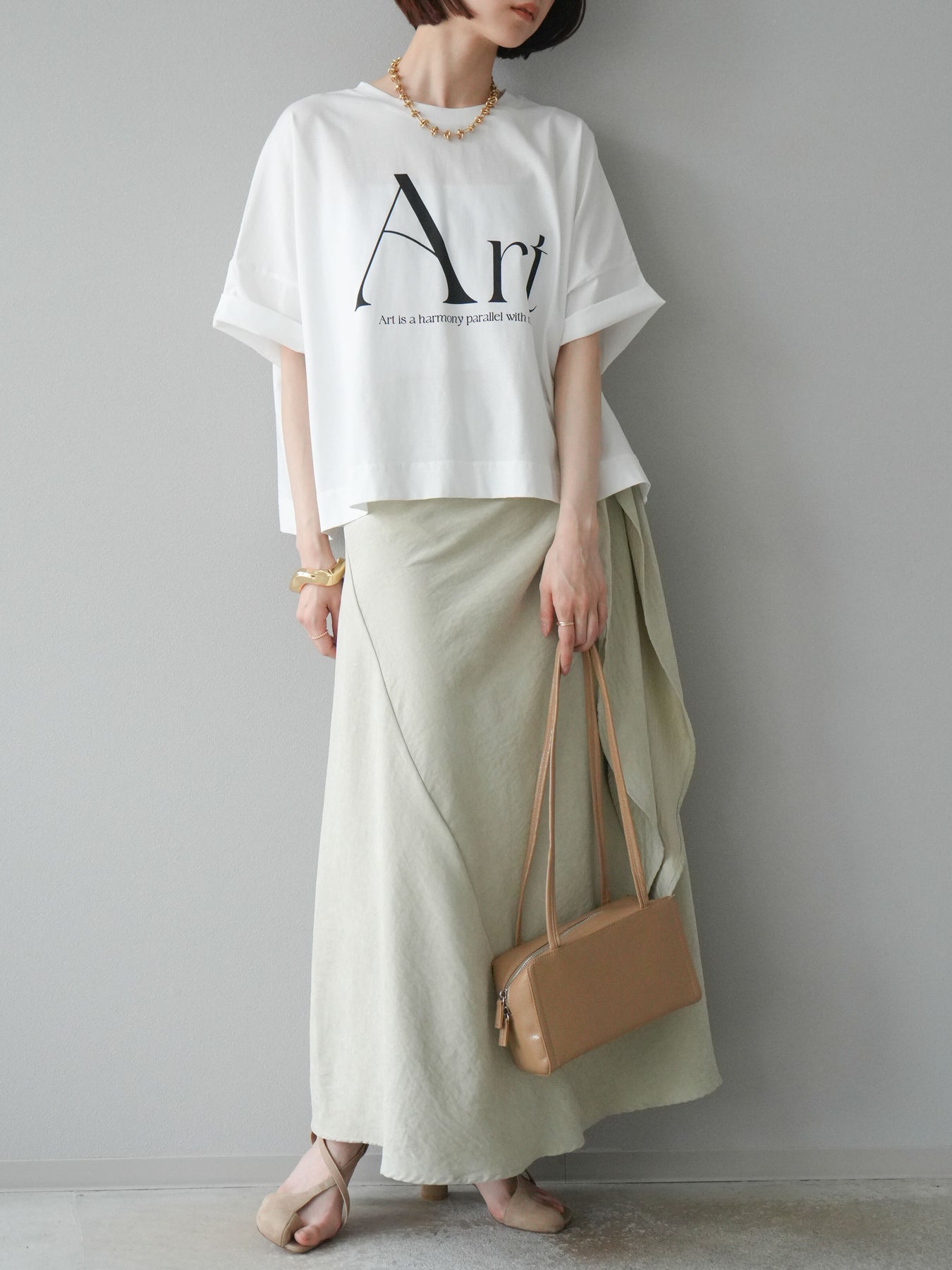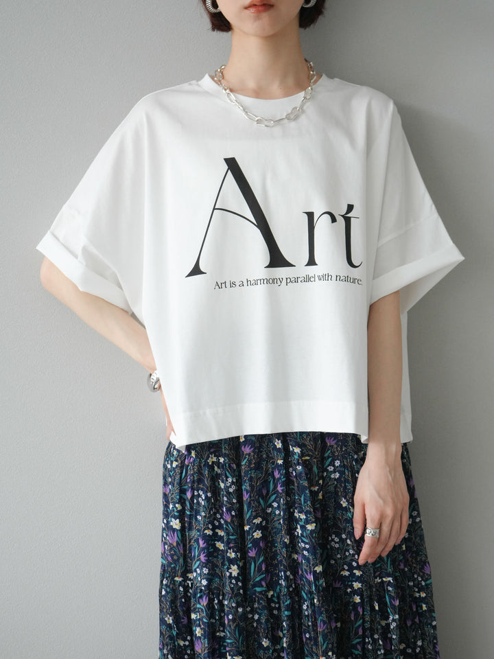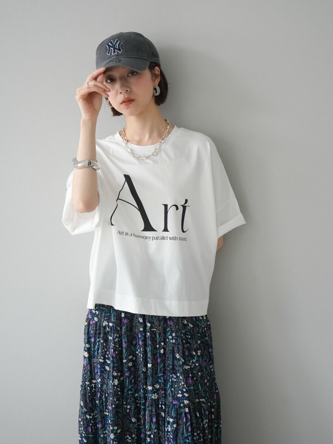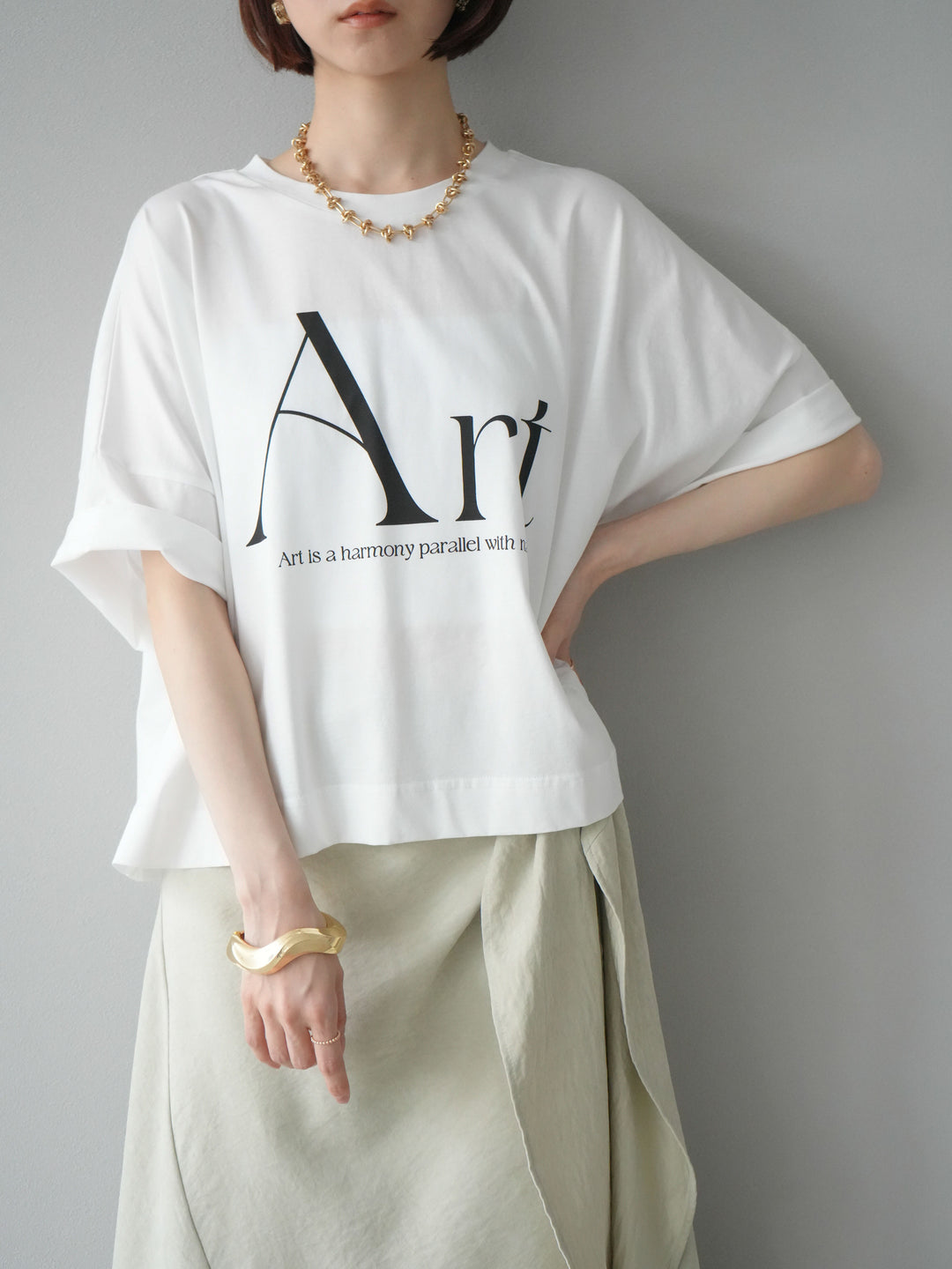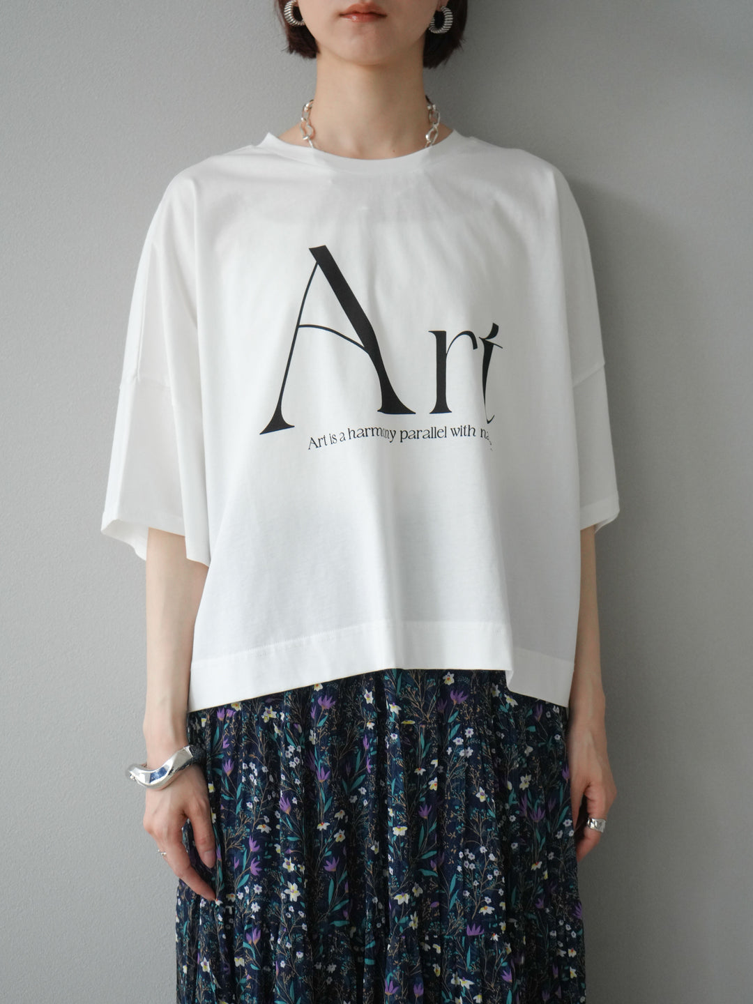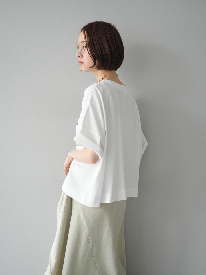 [予約]ドライタッチコットンワイドロゴTシャツ/オフ×ブラック