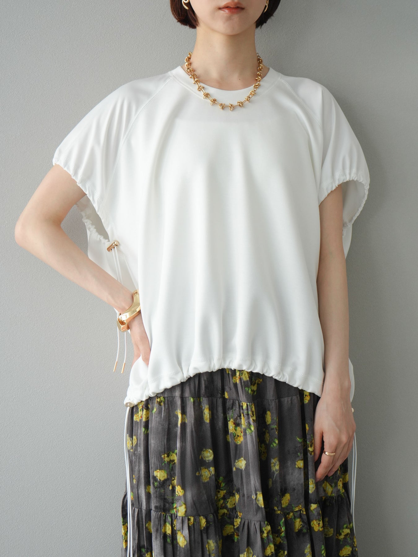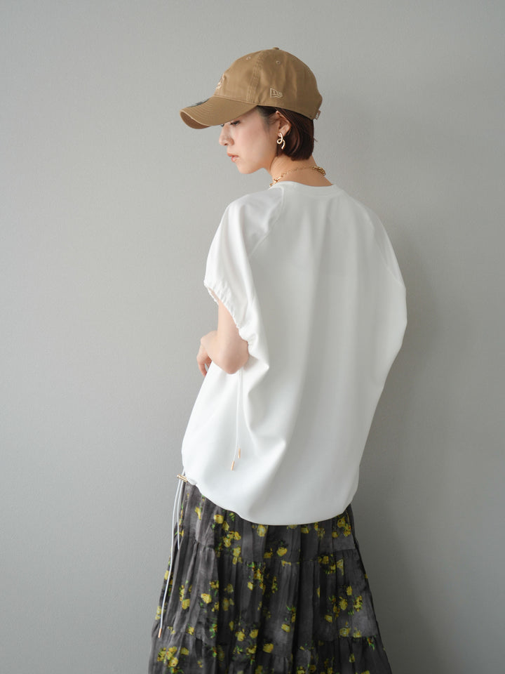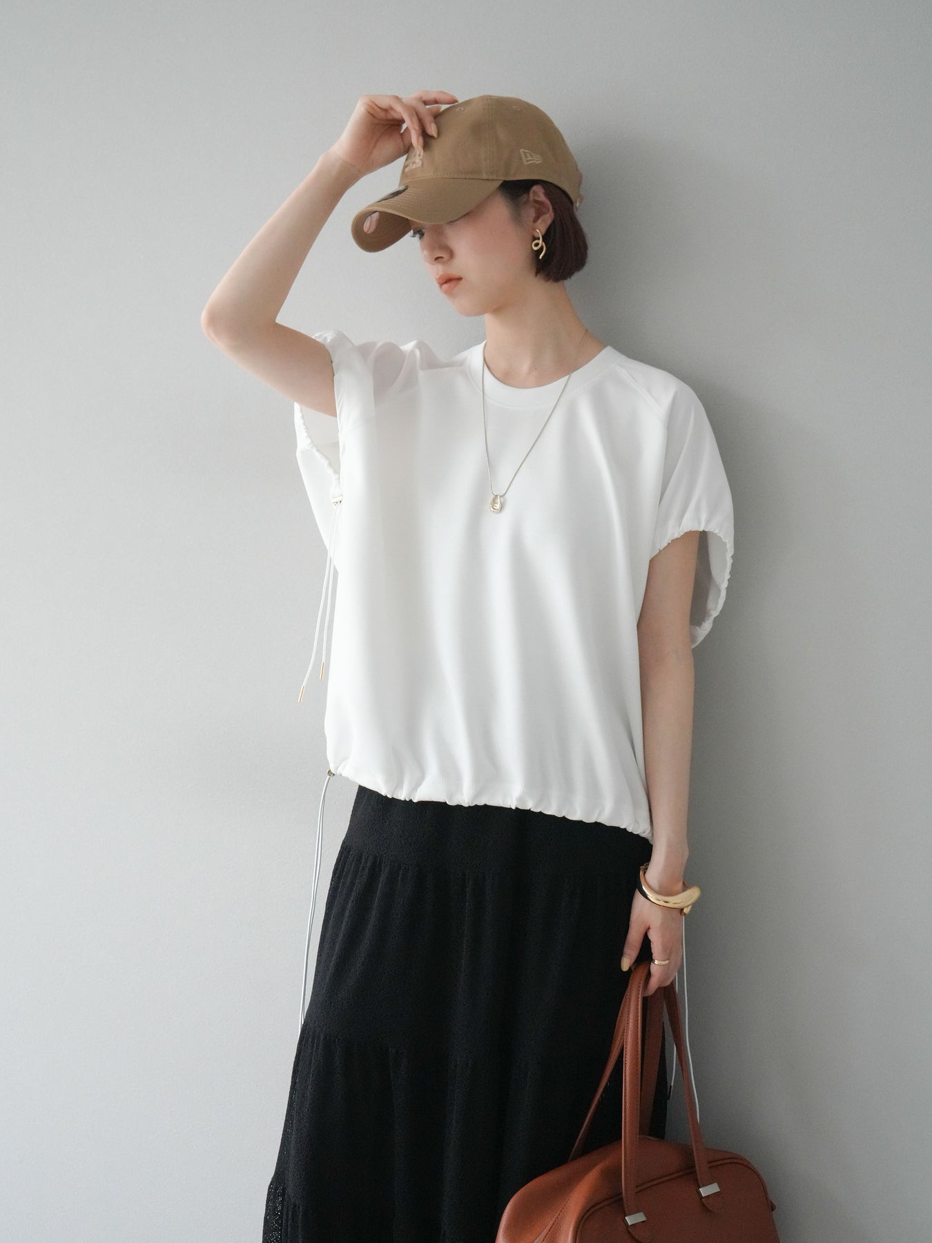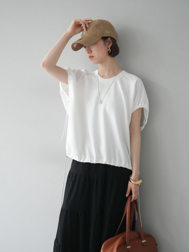 滑らかなポンチ素材とハリ感のある異素材を組み合わせた、表情豊かな1枚。サイドのドロスト仕様がシルエットに変化をつけ、スタイリングの幅を広げます。ヒップまで隠れる安心感のある丈感で、パンツスタイルとも好相性。抜け感のあるカジュアルコーデを楽しめる、今季注目のトレンドトップスです。 ※ボトムス、キャミソール(インナー)以外の商品は一律でインナーは付属していません