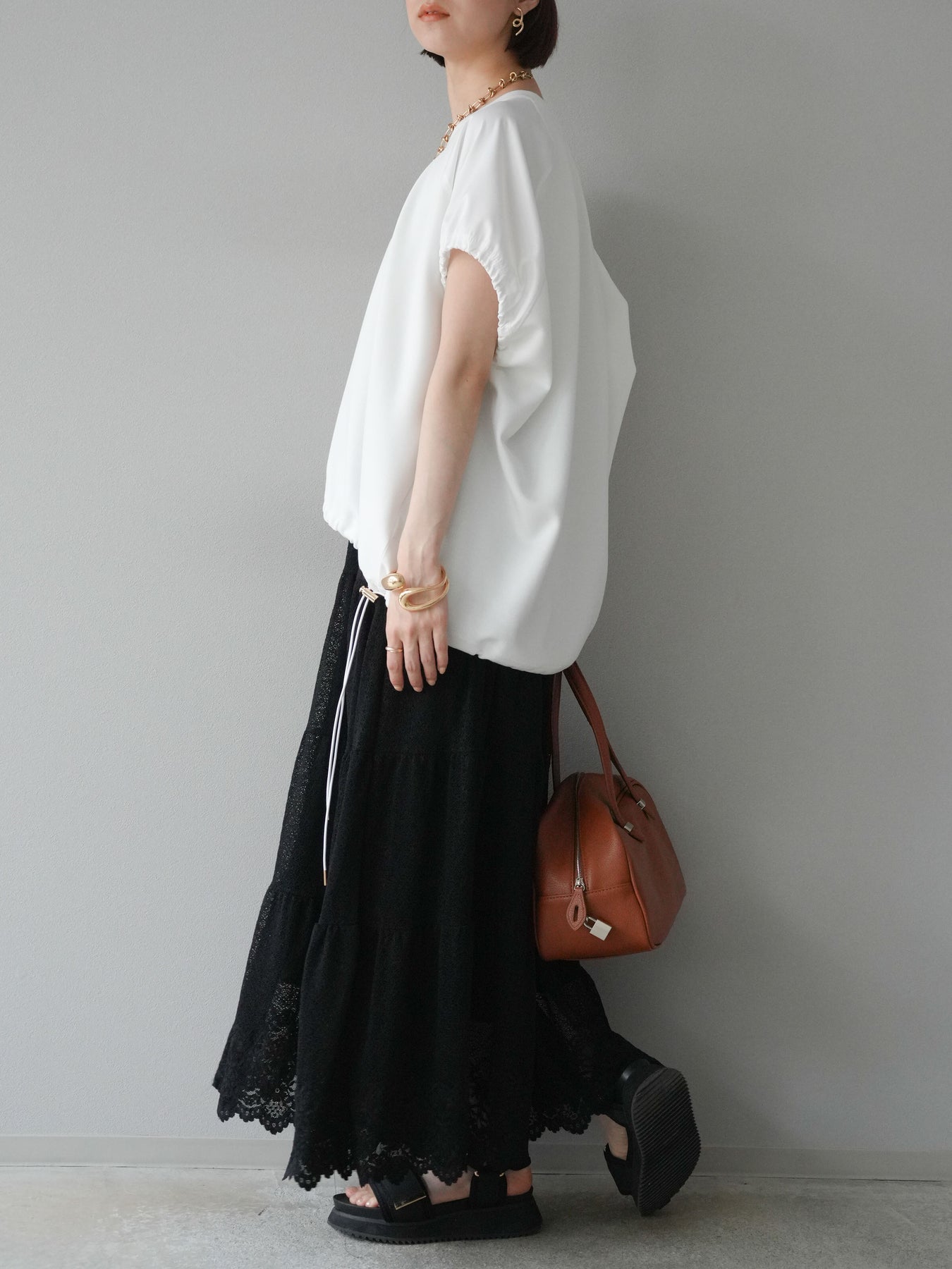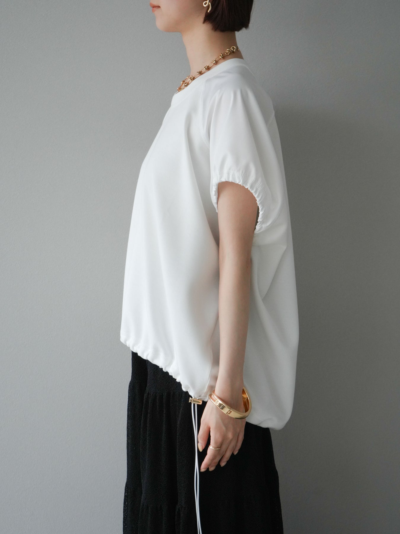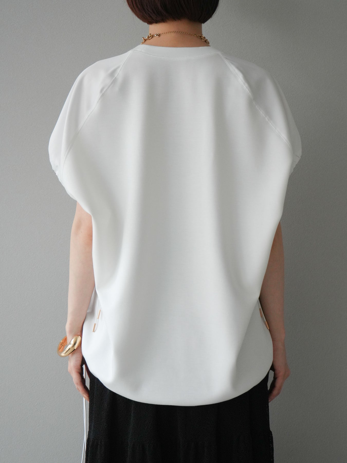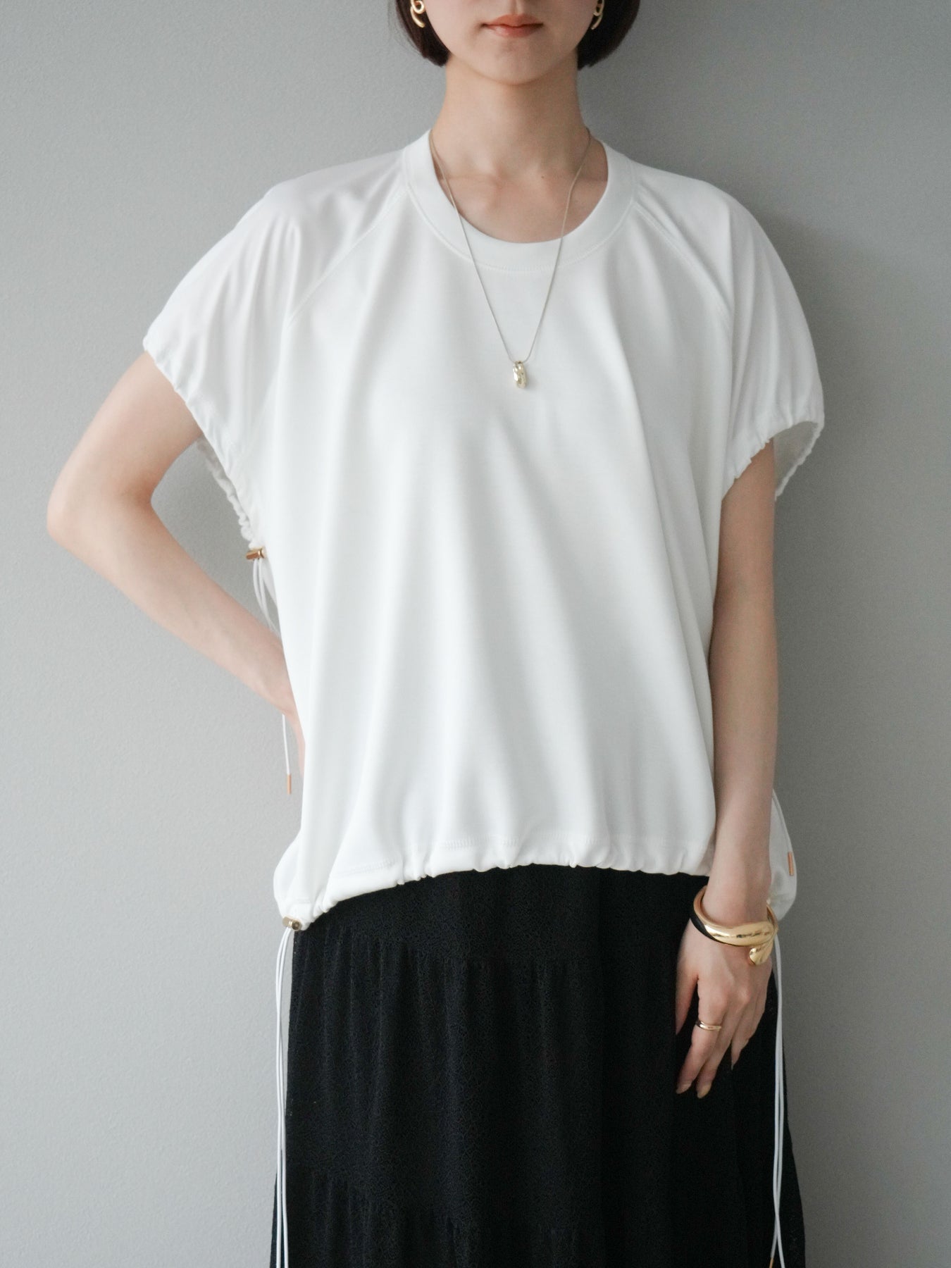 滑らかなポンチ素材とハリ感のある異素材を組み合わせた、表情豊かな1枚。サイドのドロスト仕様がシルエットに変化をつけ、スタイリングの幅を広げます。ヒップまで隠れる安心感のある丈感で、パンツスタイルとも好相性。抜け感のあるカジュアルコーデを楽しめる、今季注目のトレンドトップスです。 ※ボトムス、キャミソール(インナー)以外の商品は一律でインナーは付属していません