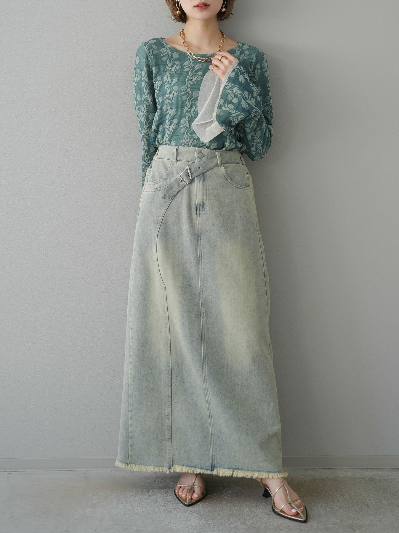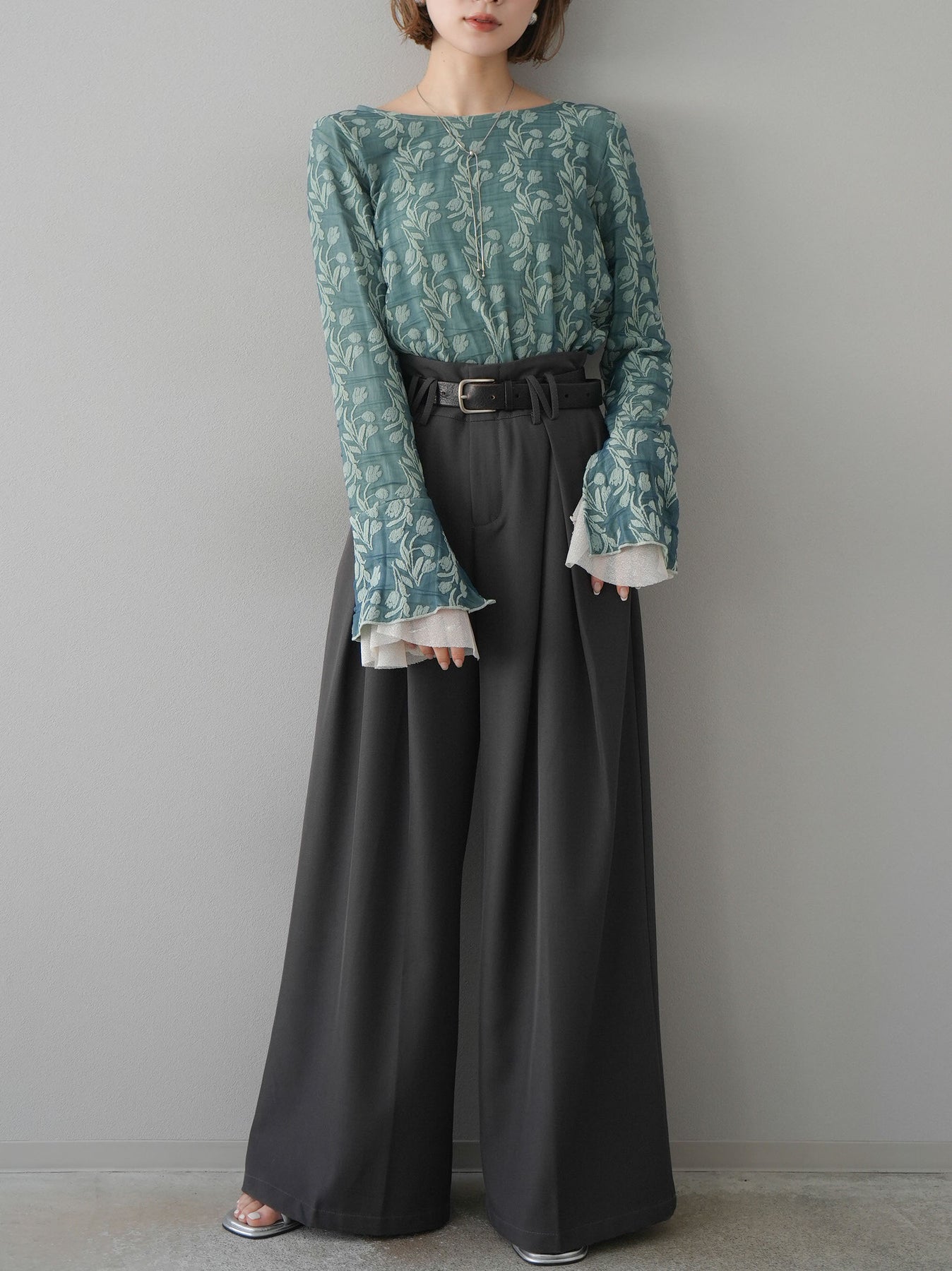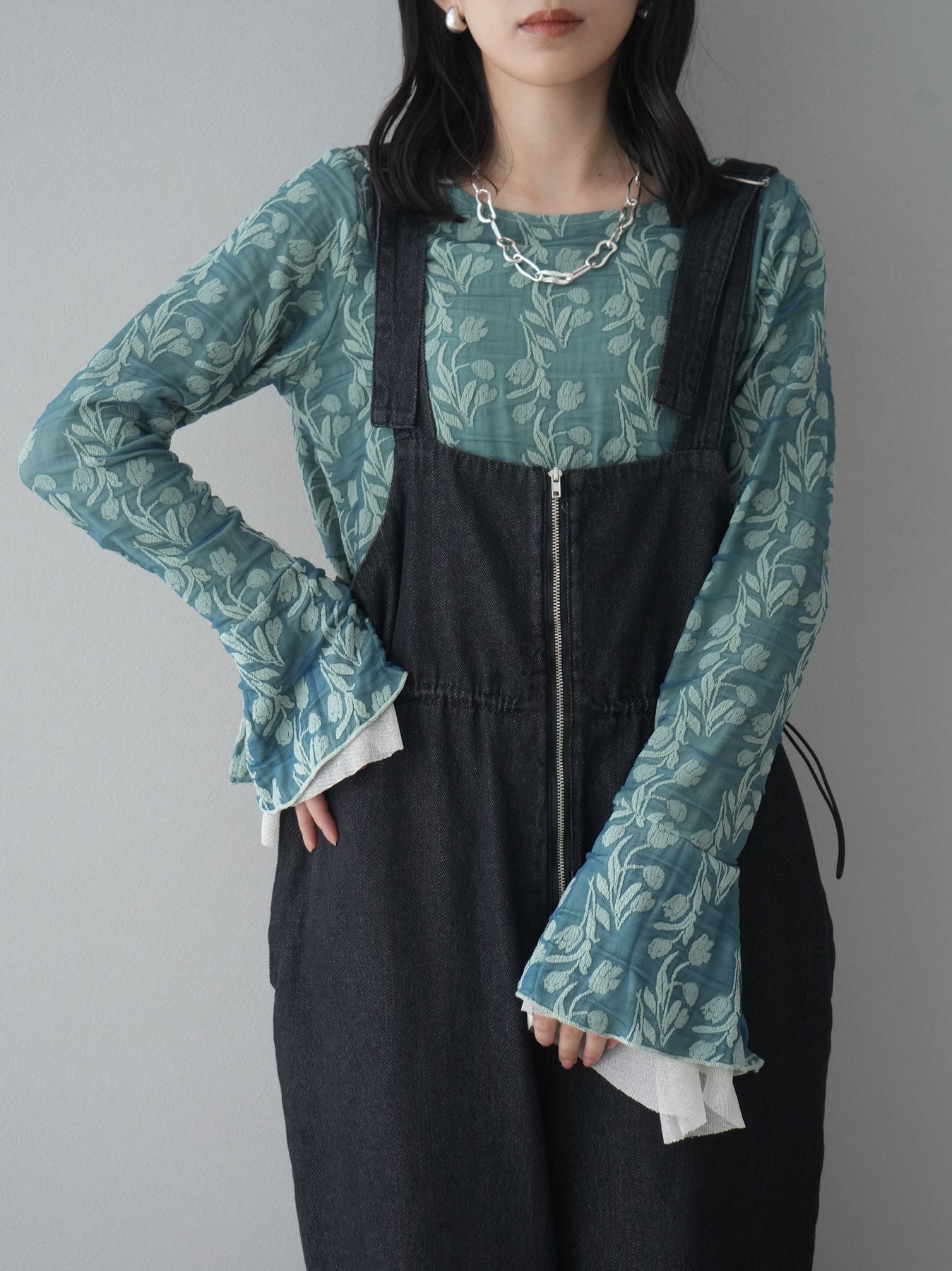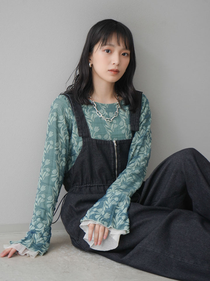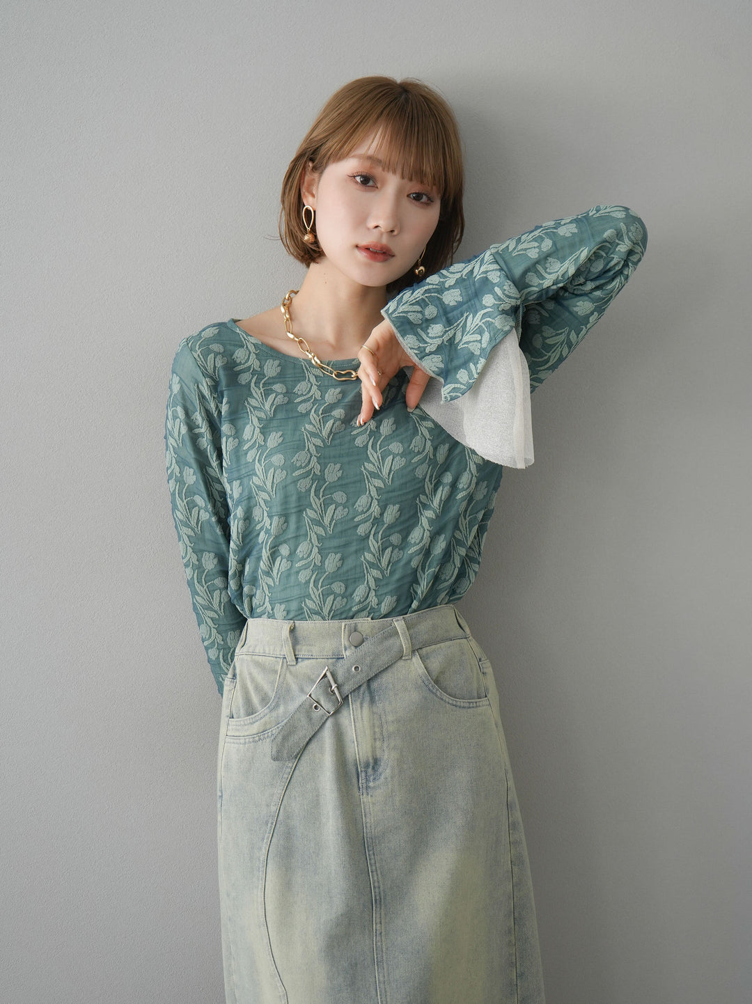 [予約]ダブルガーゼ袖フレアレイヤードジャガードトップス/グリーン