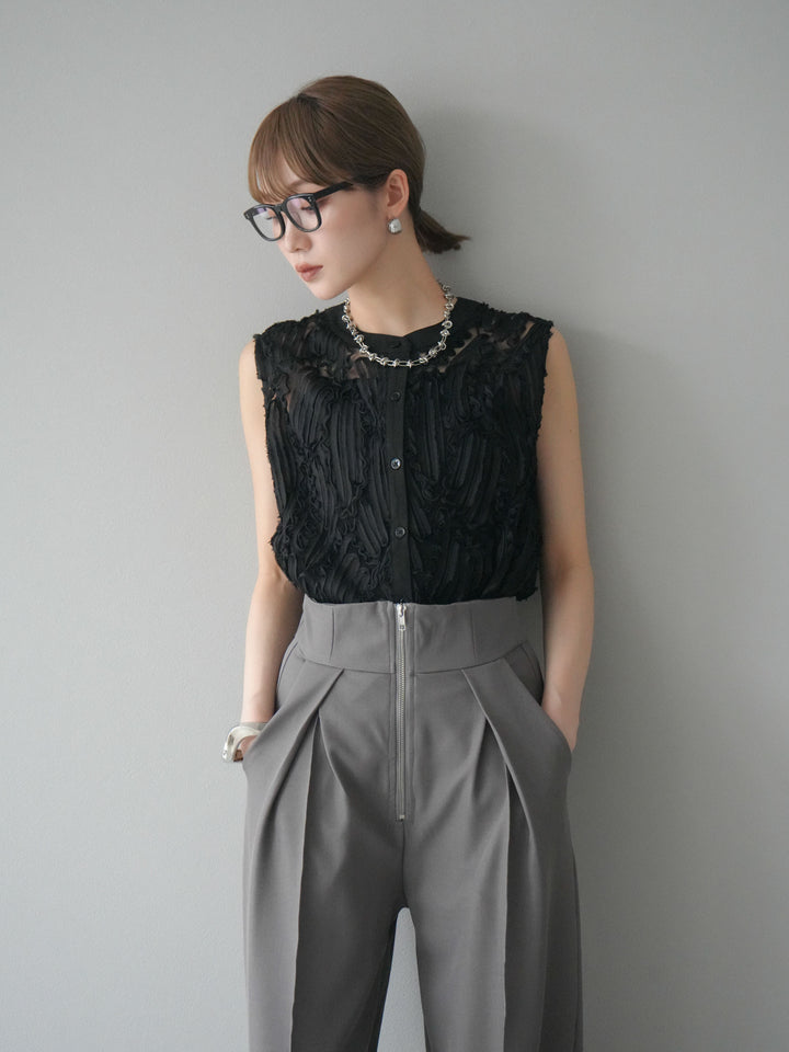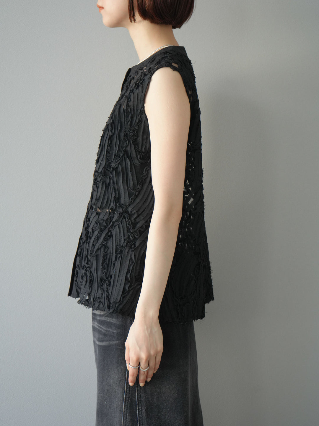 [予約]テープジャガードノースリーブブラウス/ブラック