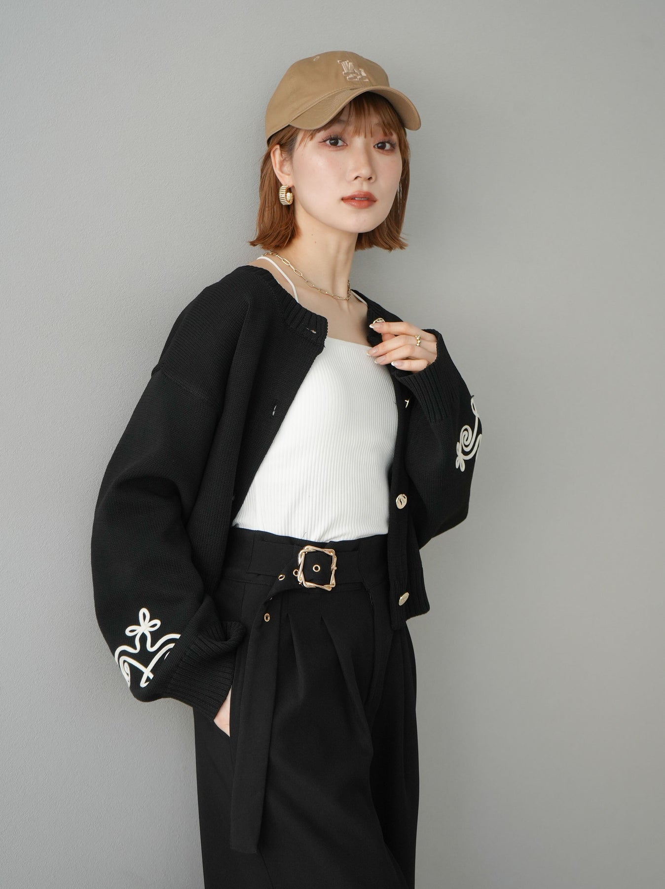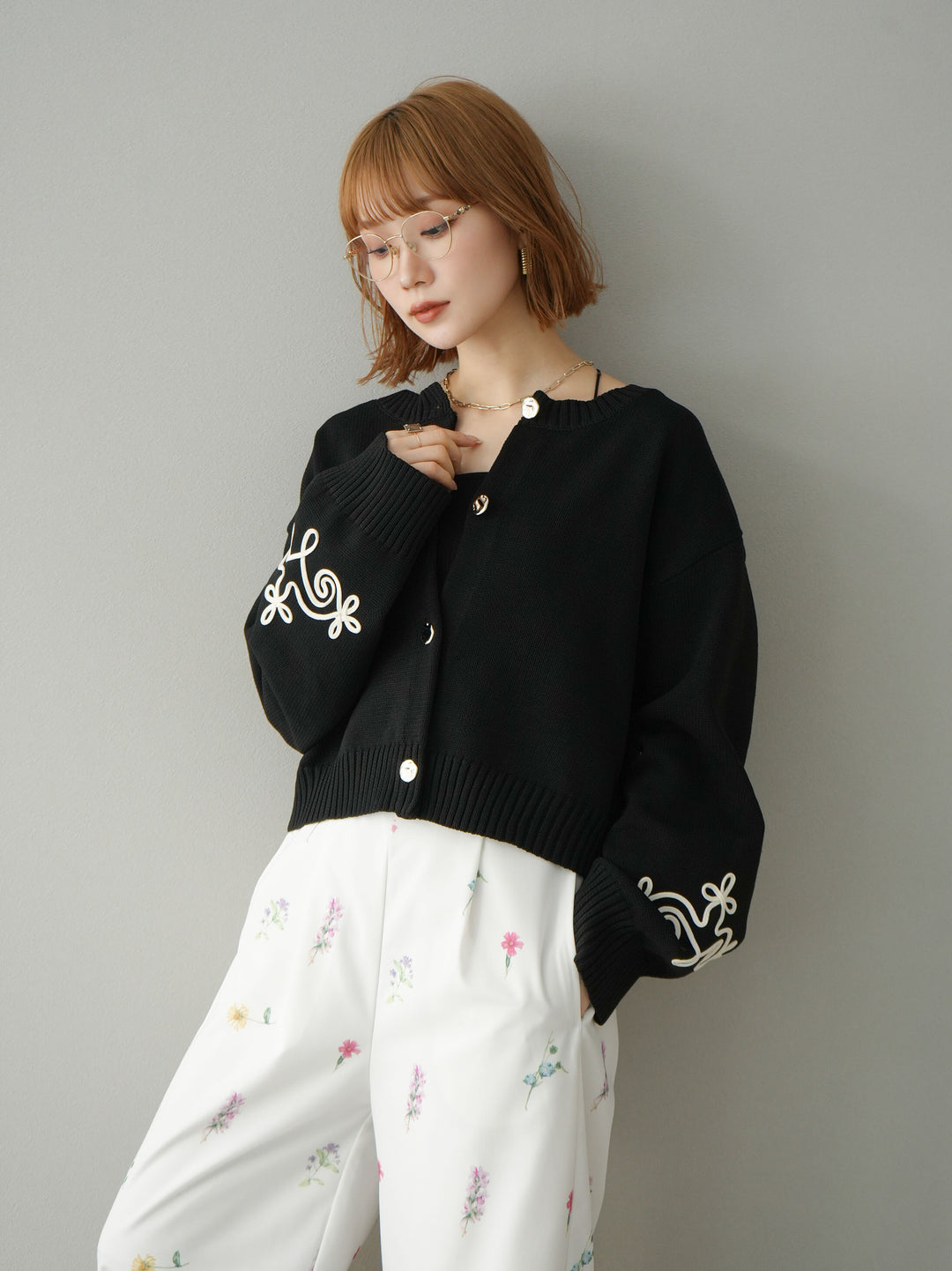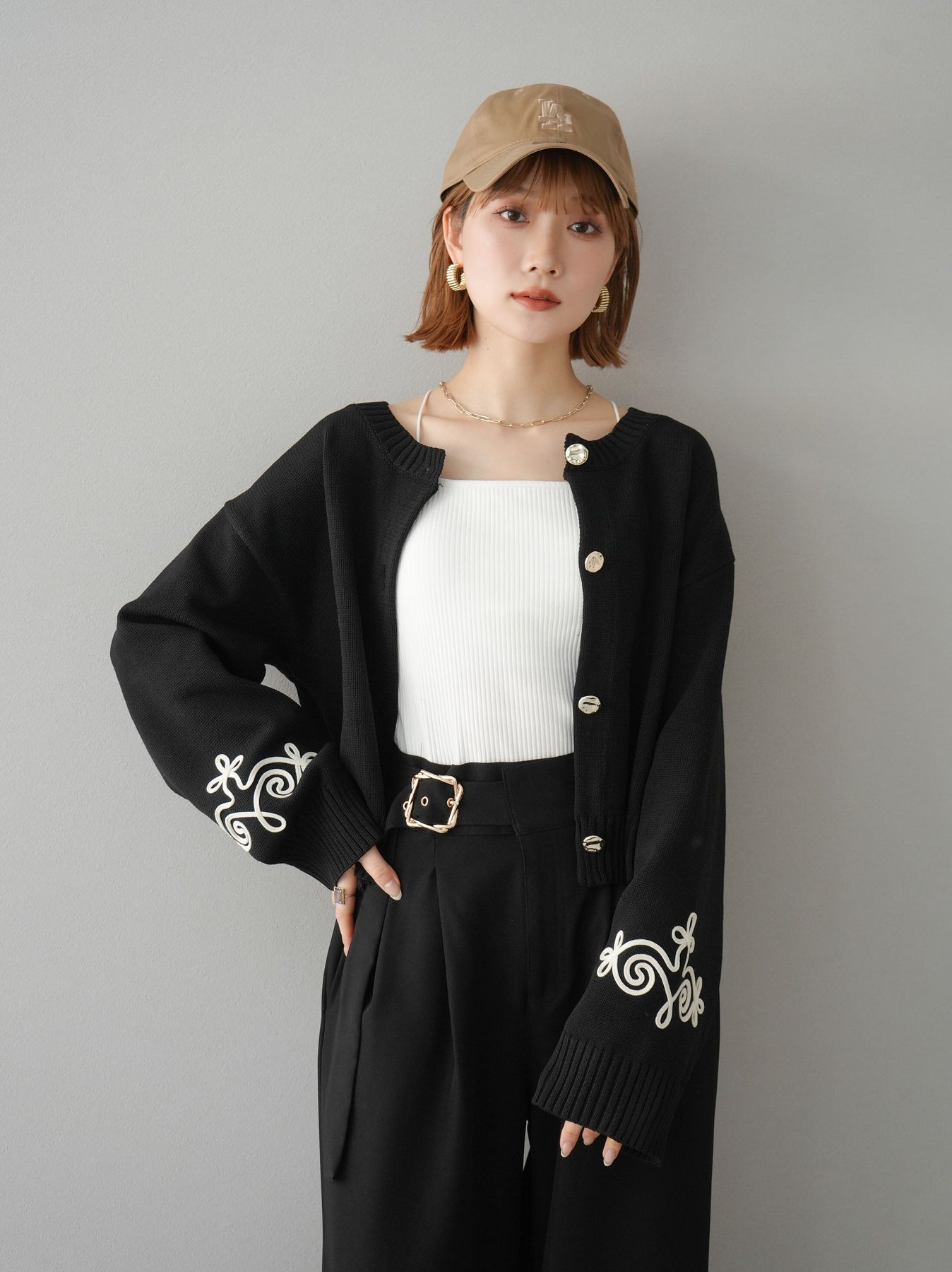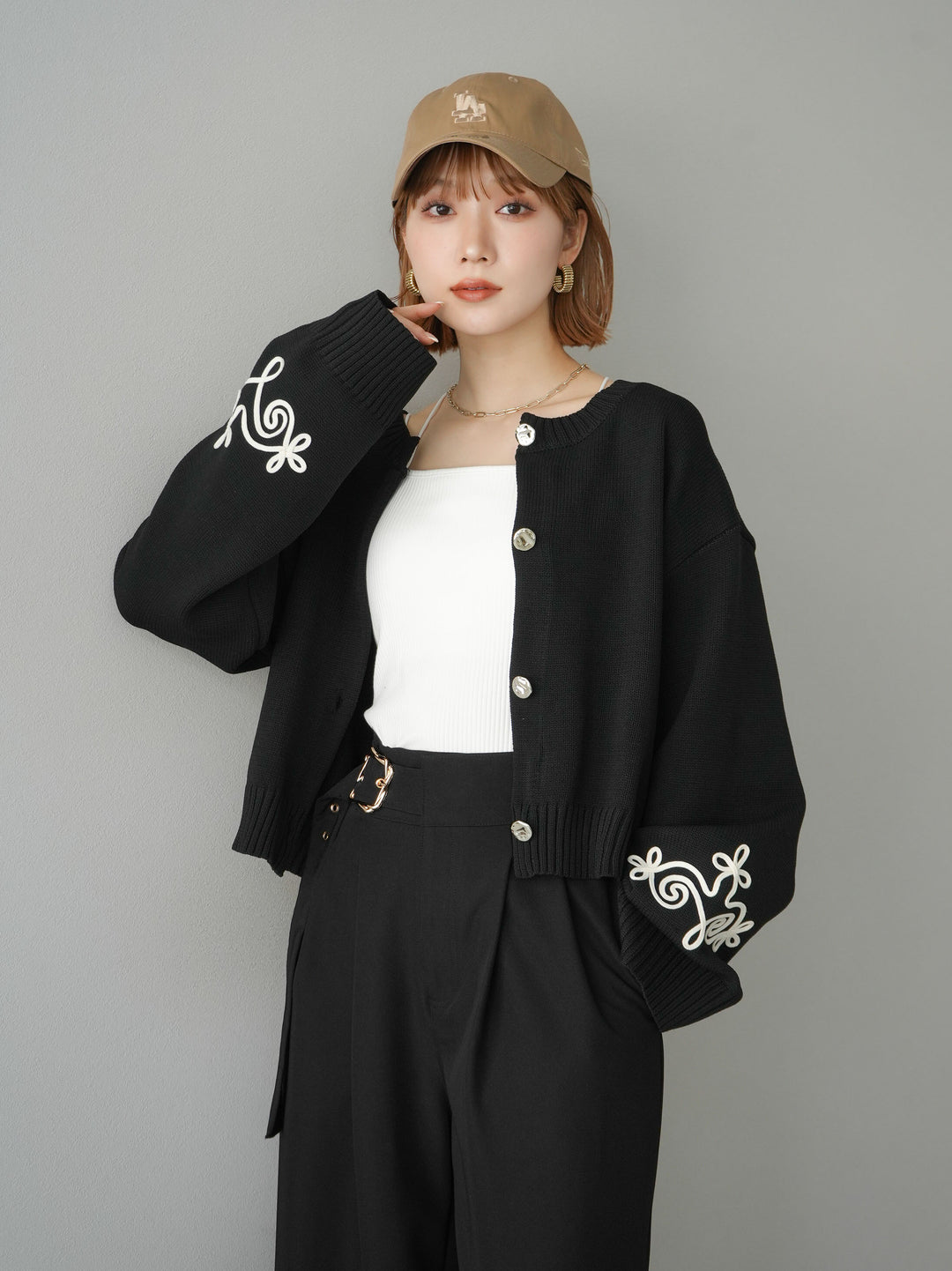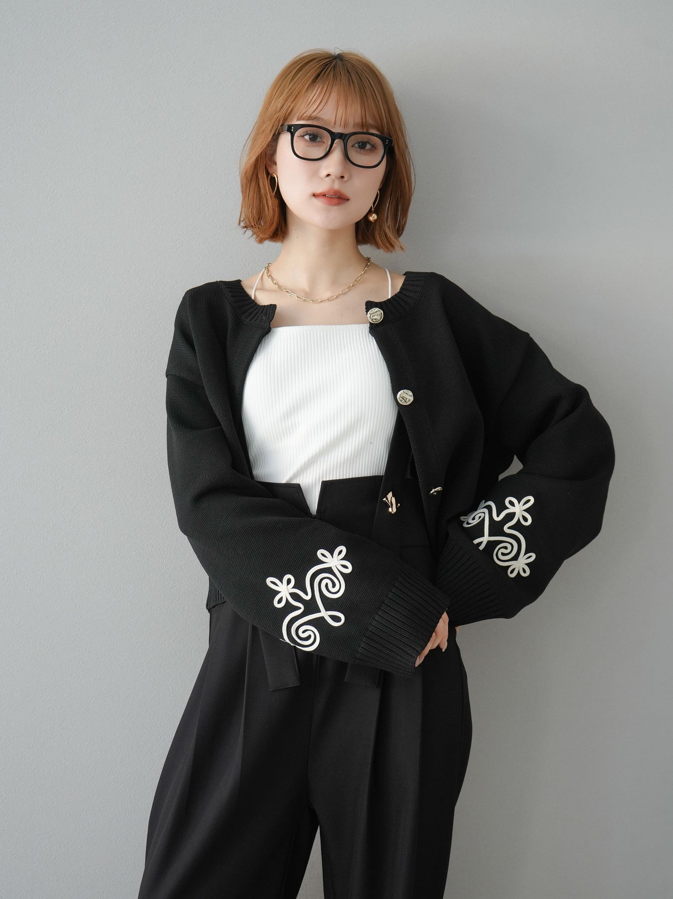 [予約]コード刺繍ゴールドボタンスポンジニットカーディガンに関連する商品を探す↓