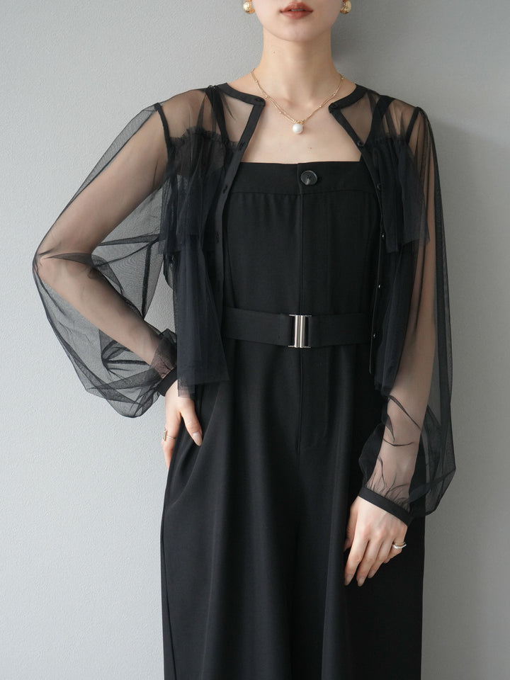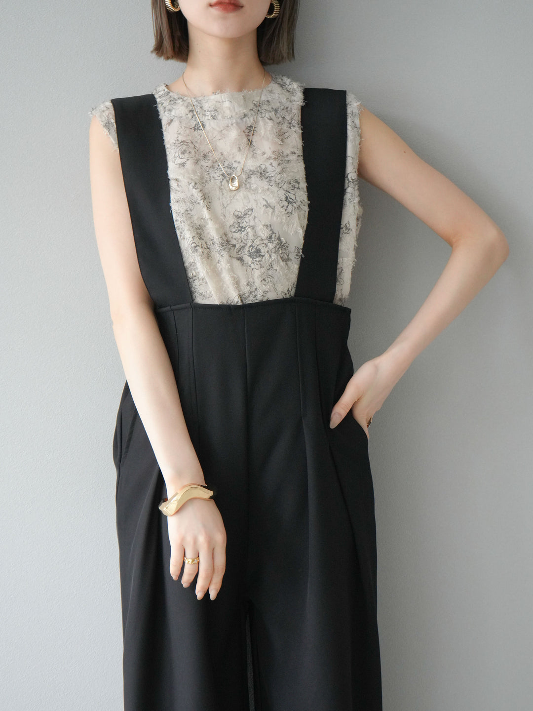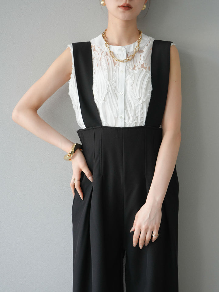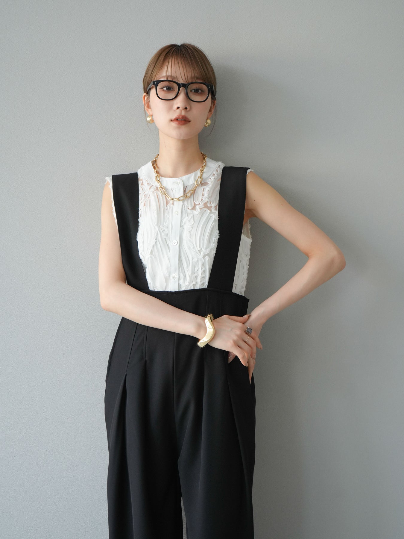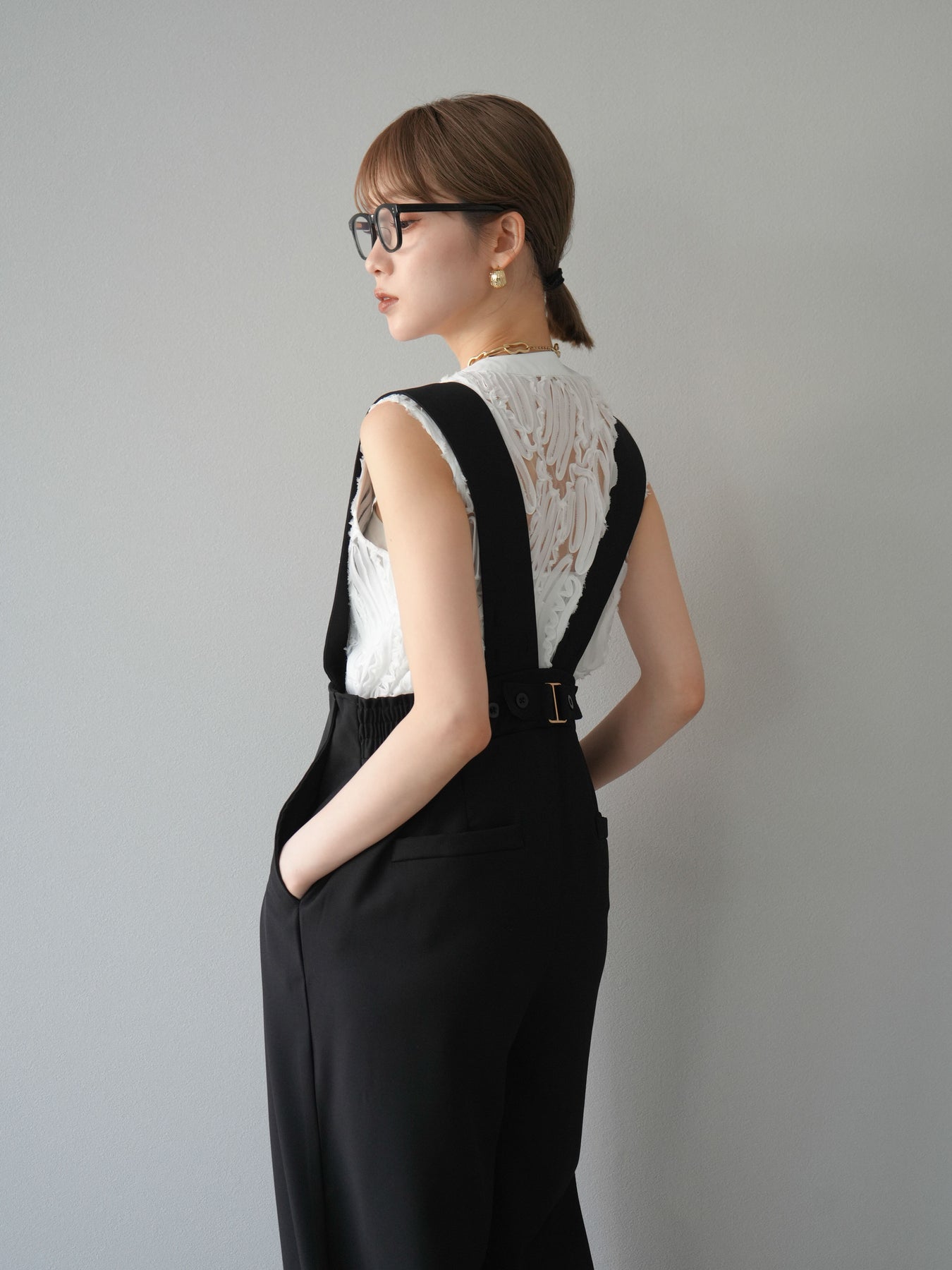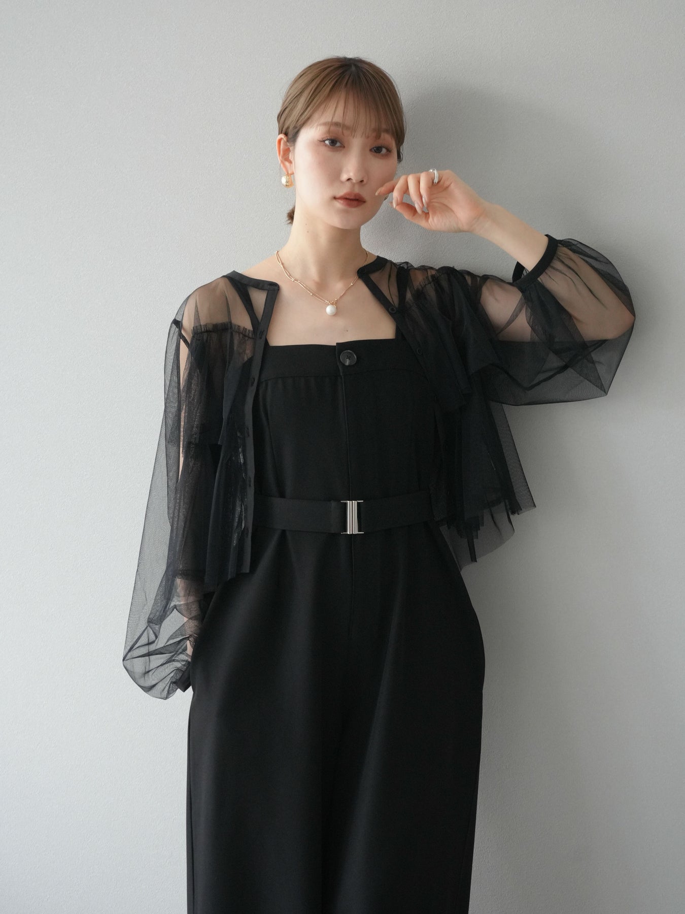 太めのストラップとバックル使いがポイントのサロペット。ほどよいゆとりのあるワイドシルエットで、動きやすさとこなれ感を両立。背中のバックルでストラップの長さ調整も可能。インナー次第でカジュアルにもキレイめにも着回せる万能アイテムです。 ※ボトムス、キャミソール(インナー)以外の商品は一律でインナーは付属していません