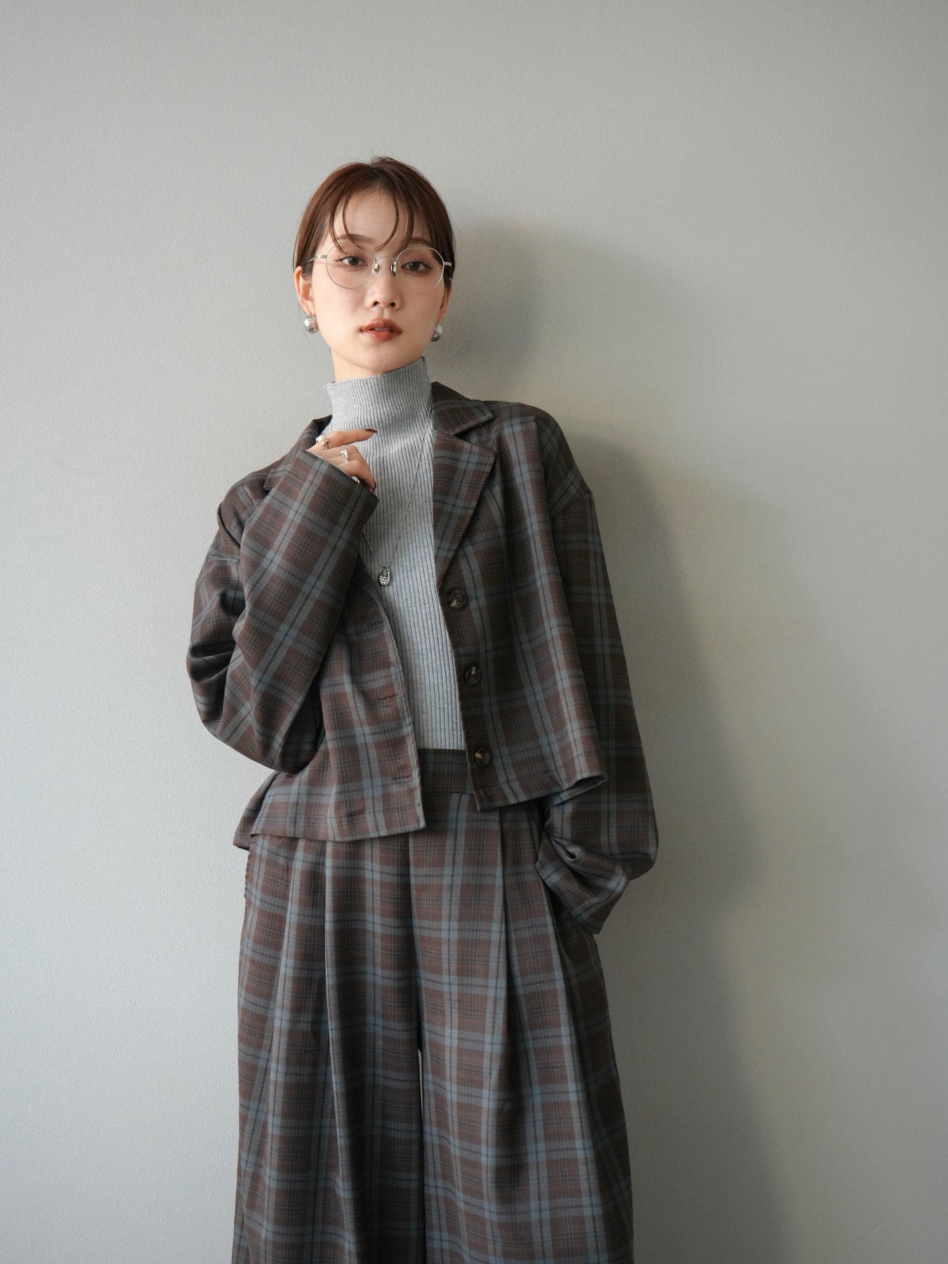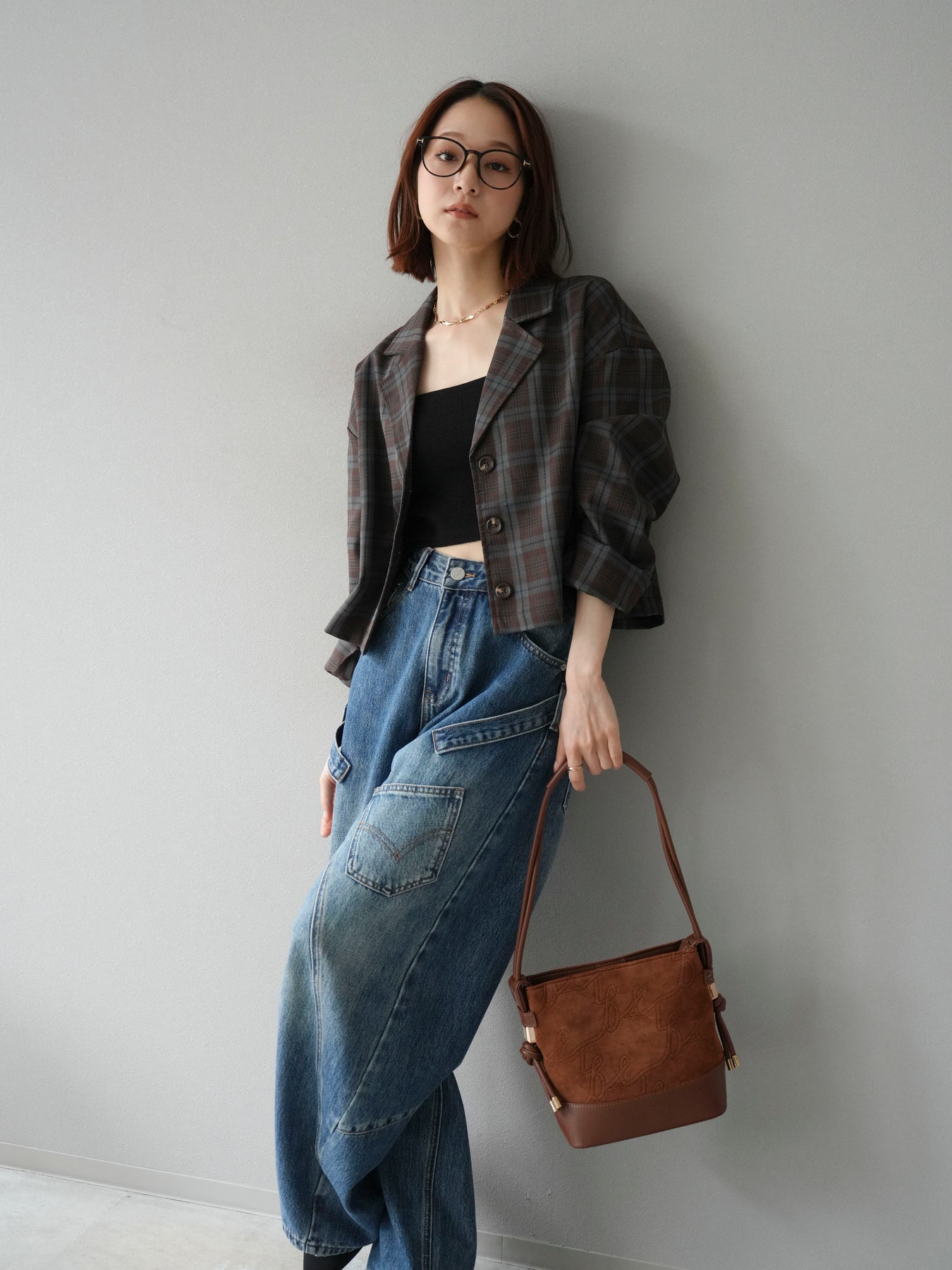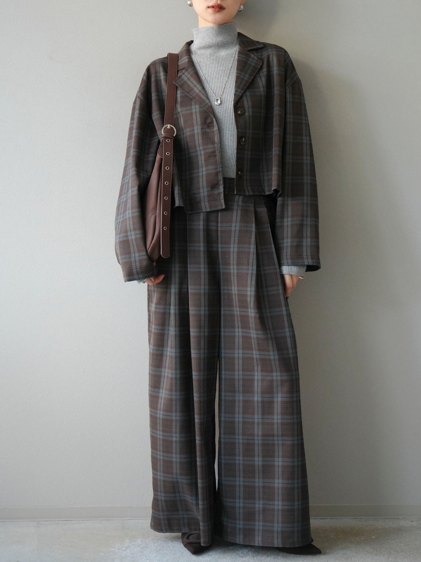 クラシカルなチェック柄が目を引くショートジャケット。コンパクトな丈感がスタイルバランスを整え、ハイウエストのボトムスとも好相性です。テーラードカラーとフロントボタンで上品さを演出しつつ、ショート丈ならではの軽やかさでデイリー使いにも取り入れやすいデザイン。スカートと合わせてフェミニンに、パンツと合わせてマニッシュにと幅広いスタイリングが楽しめます。羽織るだけでコーディネートが締まり、季節の変わり目に活躍する一着です。 ※ボトムス、キャミソール(インナー)以外の商品は一律でインナーは付属していません。
