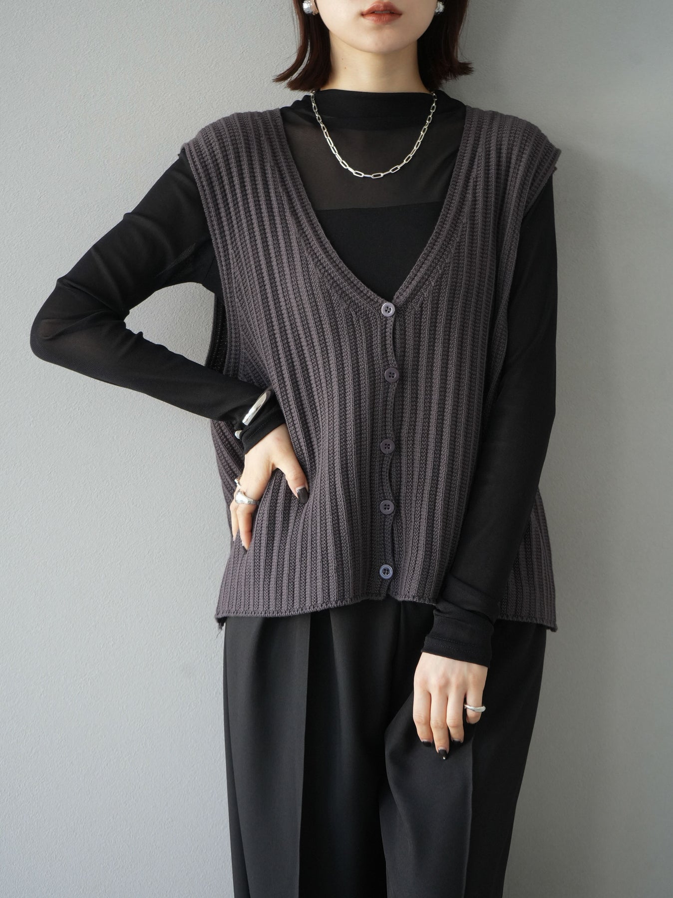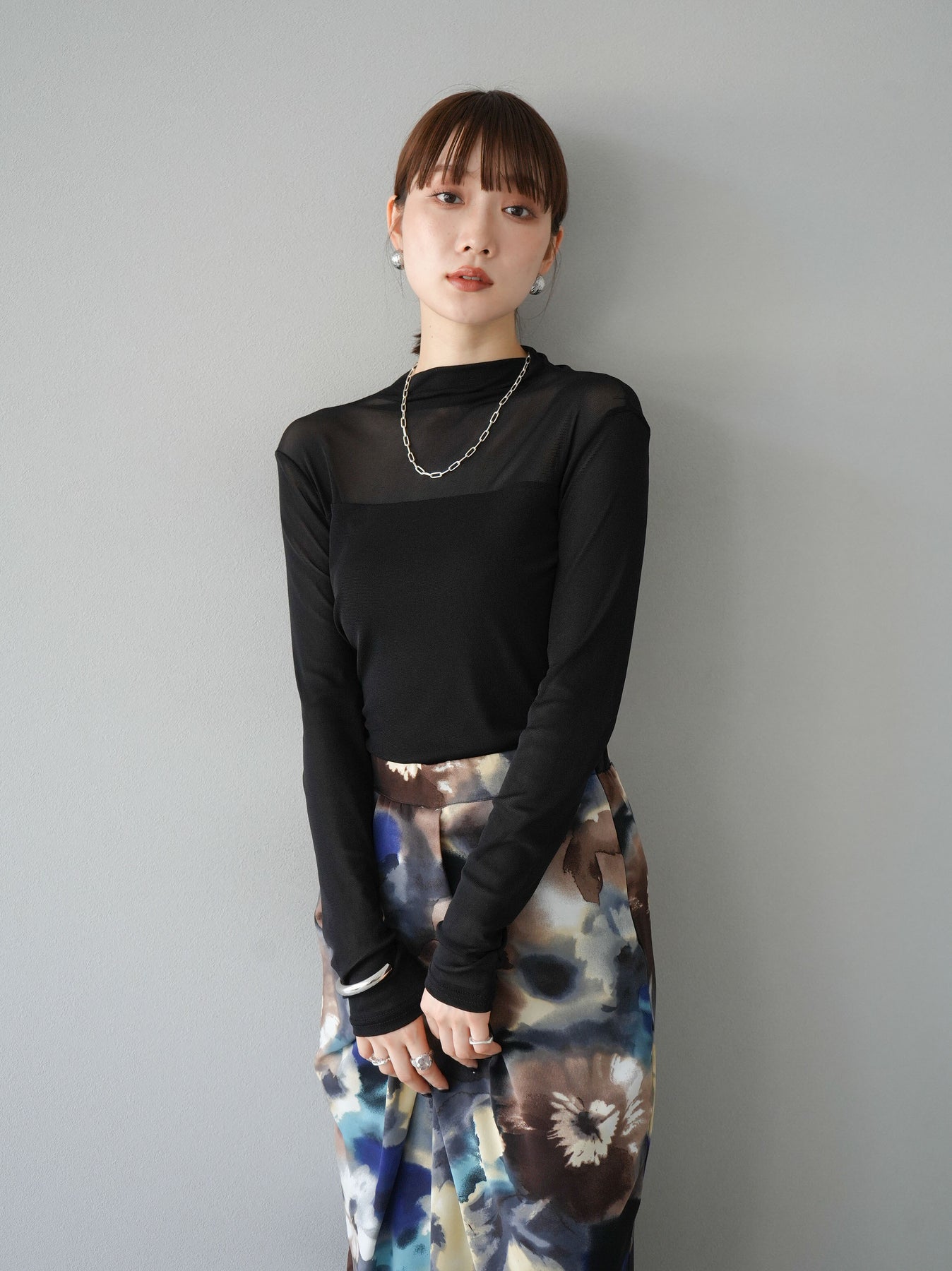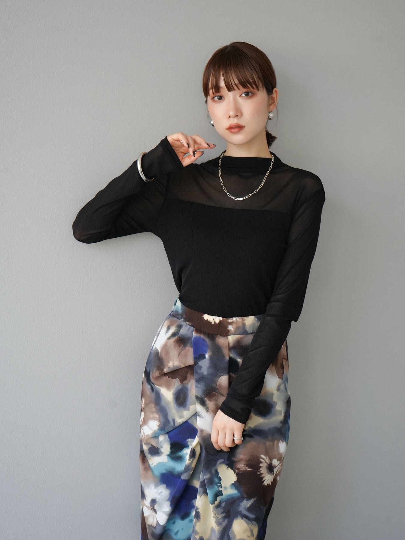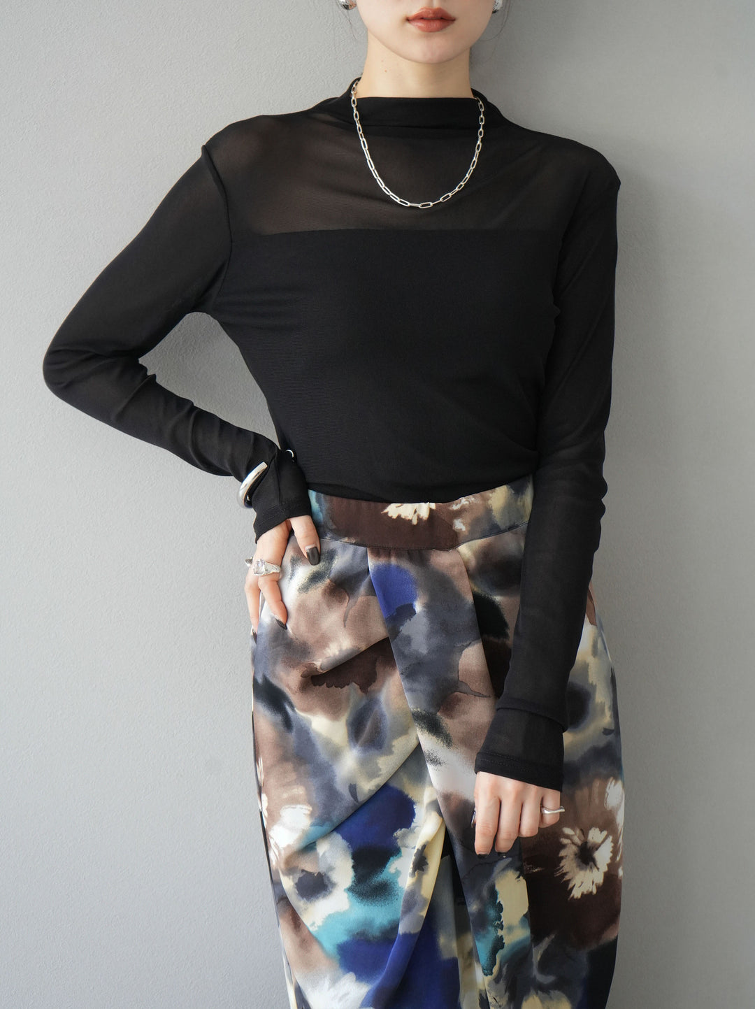 シンプルながらも洗練されたデザインのシアー切替ストレッチ長袖トップスは、今季のトレンドにぴったりの一着。透け感のある素材がエレガントな印象を与え、レイヤードスタイルに最適です。ストレッチ性のある生地で着心地も抜群。デイリーから特別なシーンまで幅広く活躍します。 ※ボトムス、キャミソール(インナー)以外の商品は一律でインナーは付属していません。