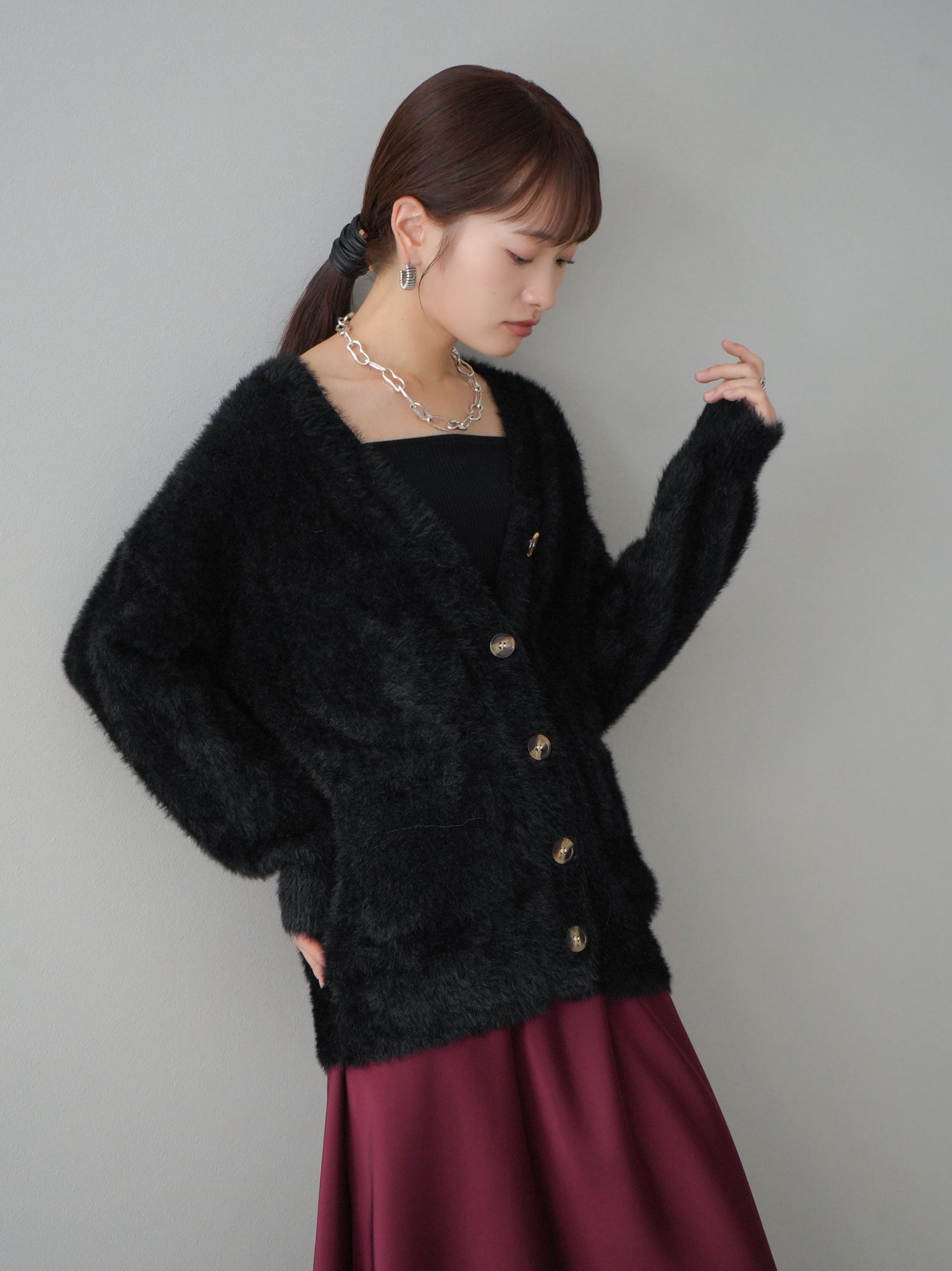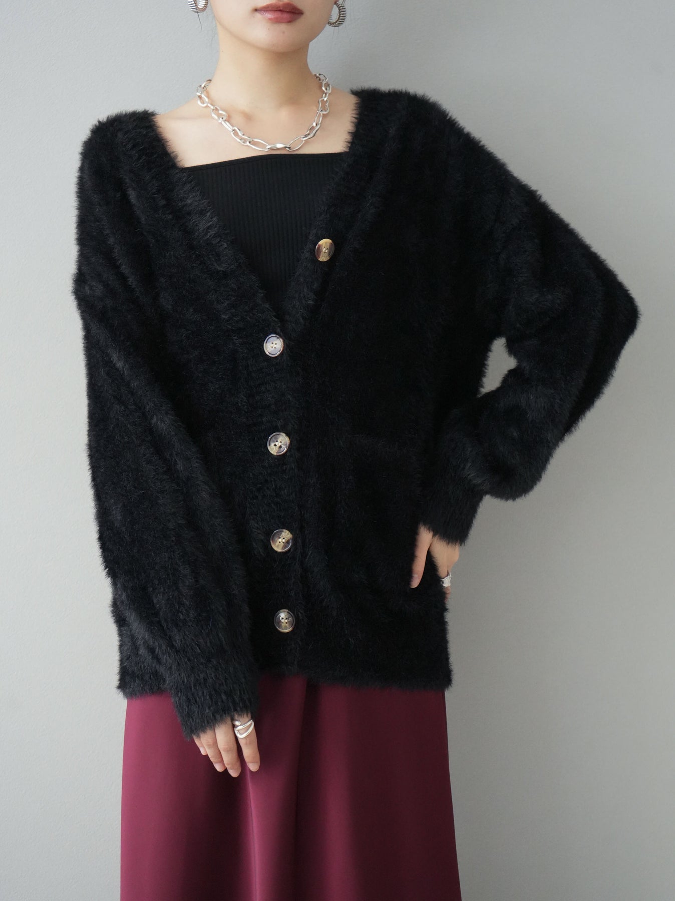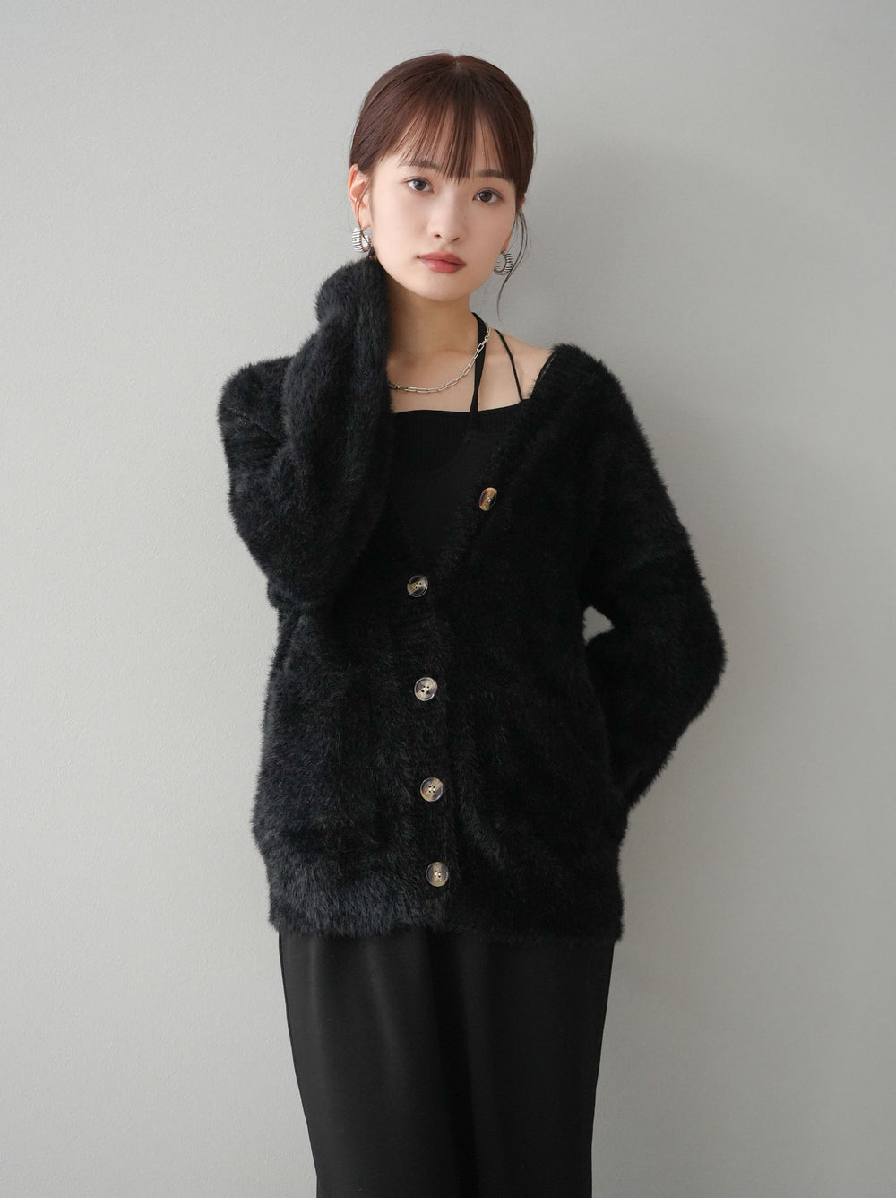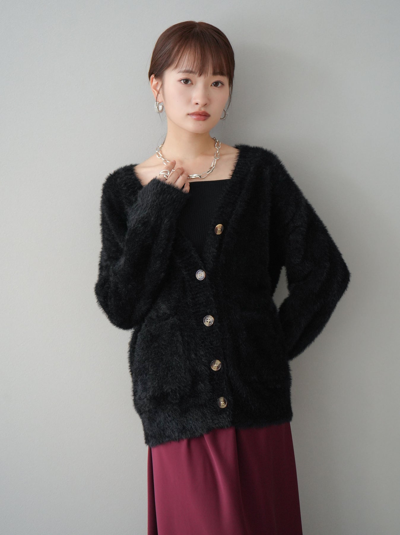 [予約]マーブルボタンシャギーニットカーディガン/ブラック